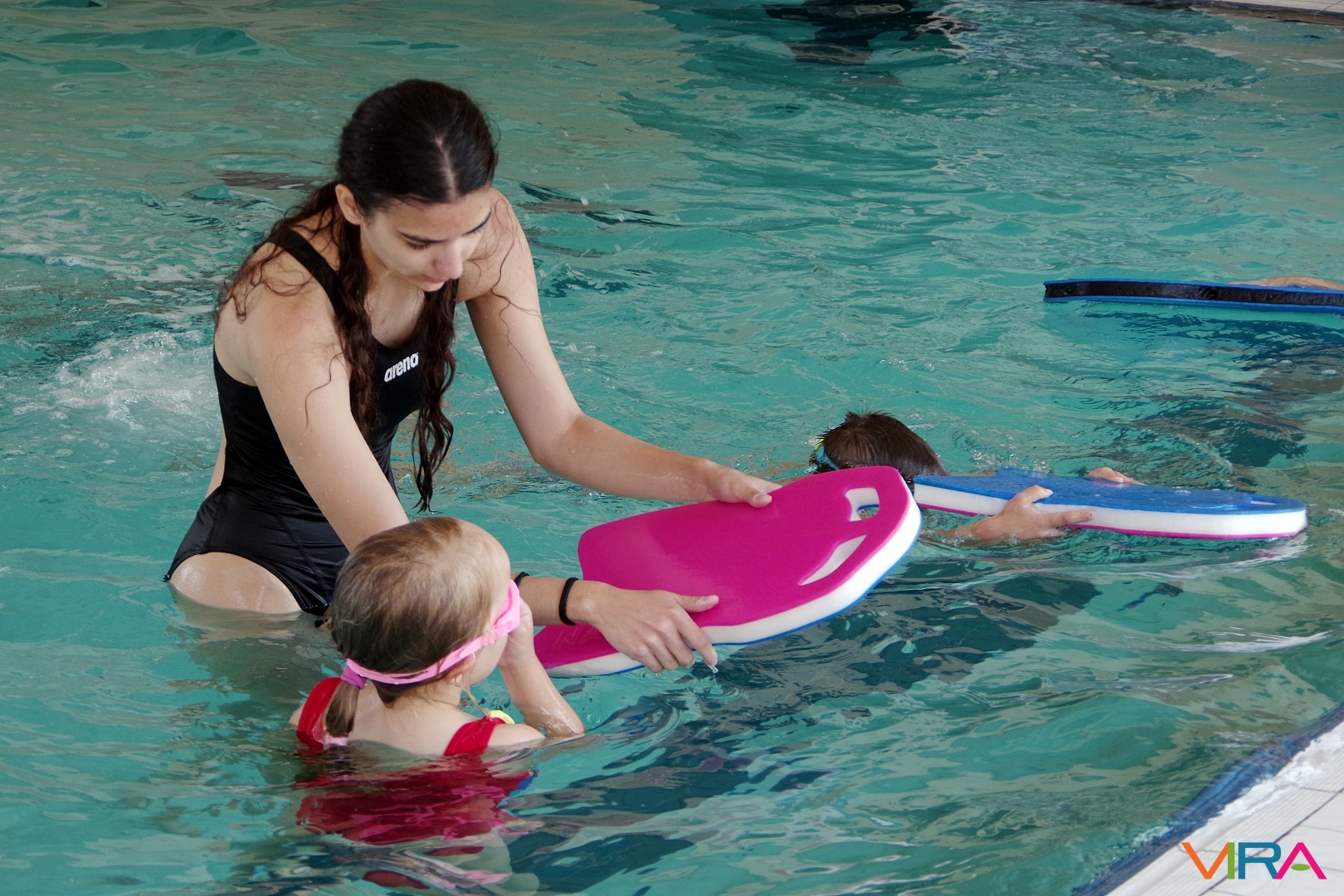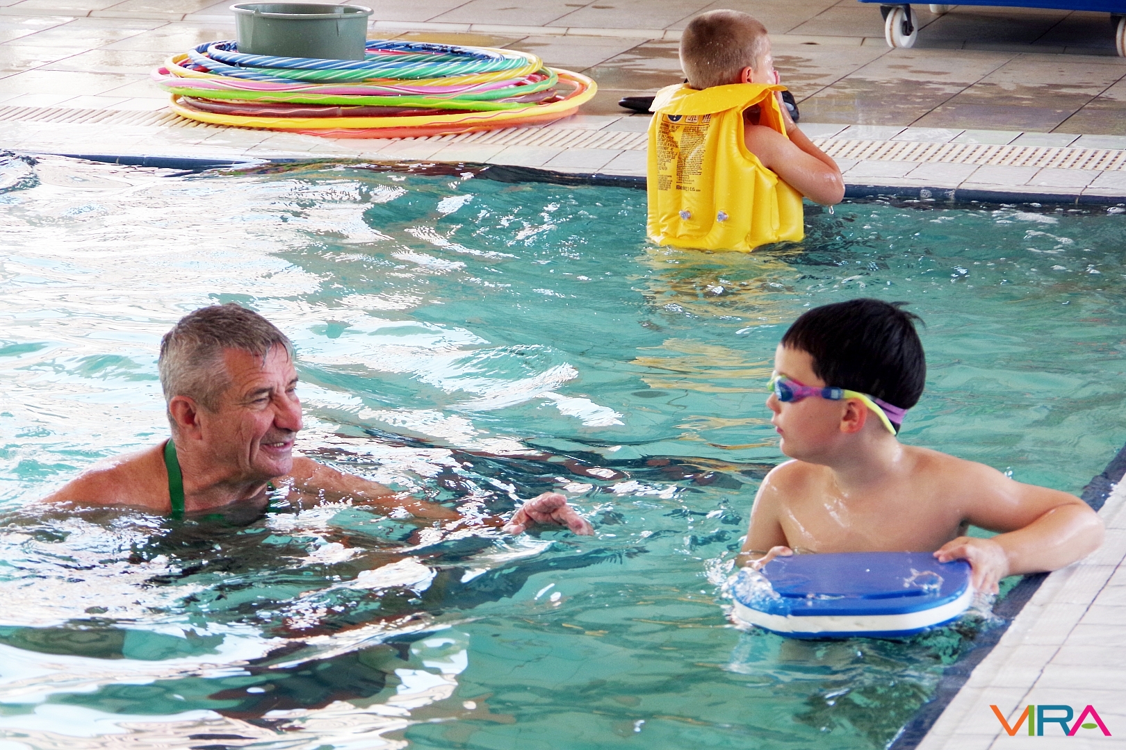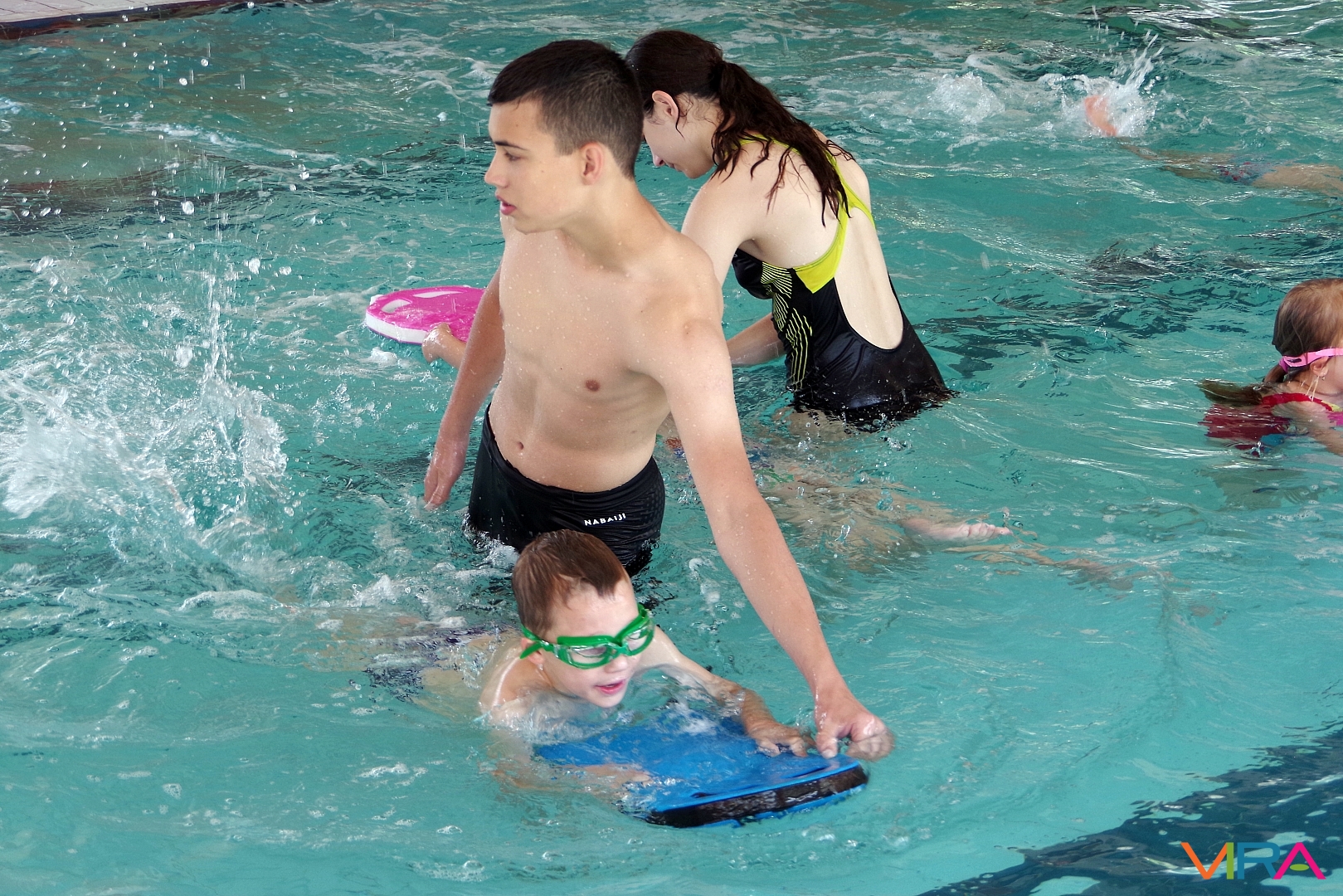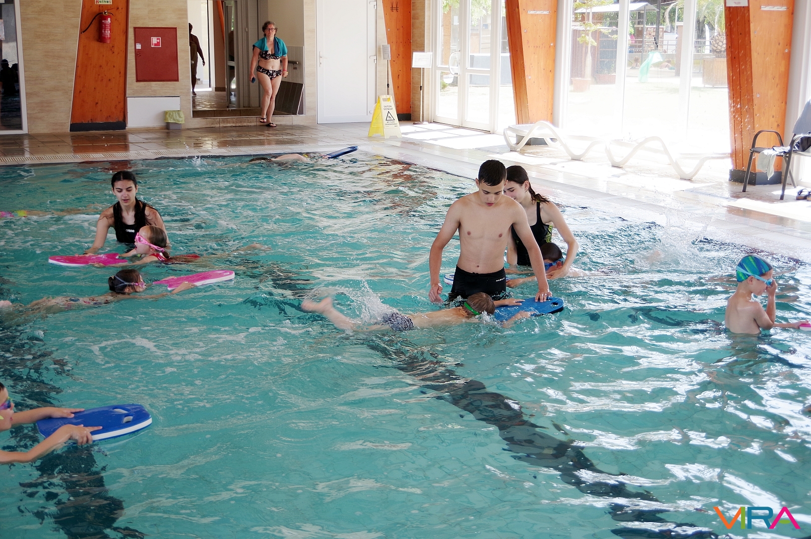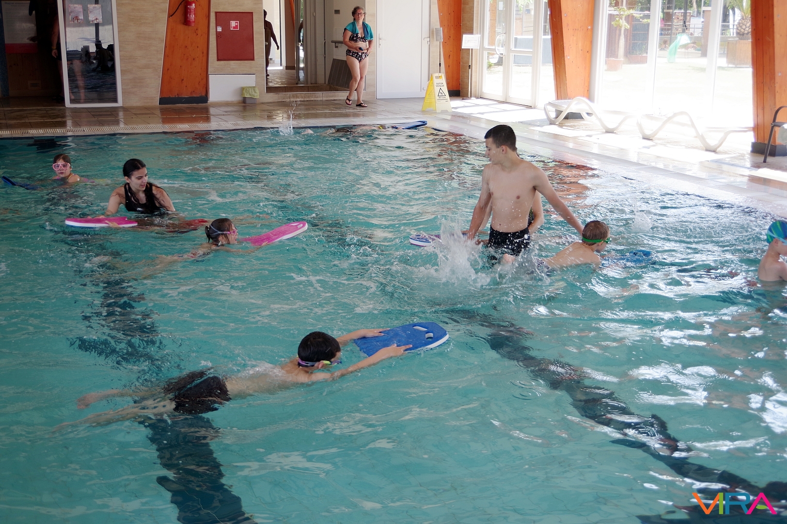 Az úszás oktatást vezető Pásztor Gyula elmondta, hogy minden nap az úszástudásuknak megfelelően három csoport számára tartott edzéseket. Összesen mintegy 70 gyermekkel foglalkozott az egy hét során, akik közül többen már a tanuszoda nagymedencéjében is úsztak.