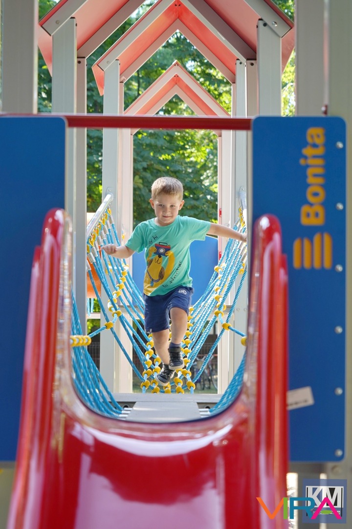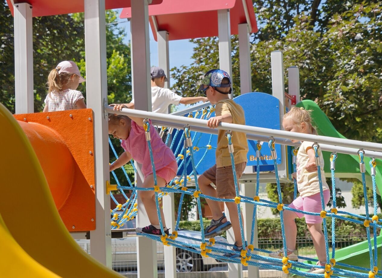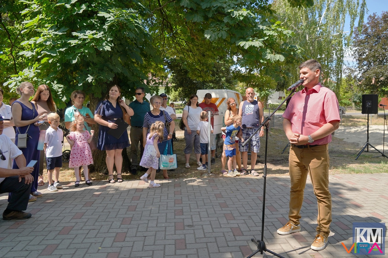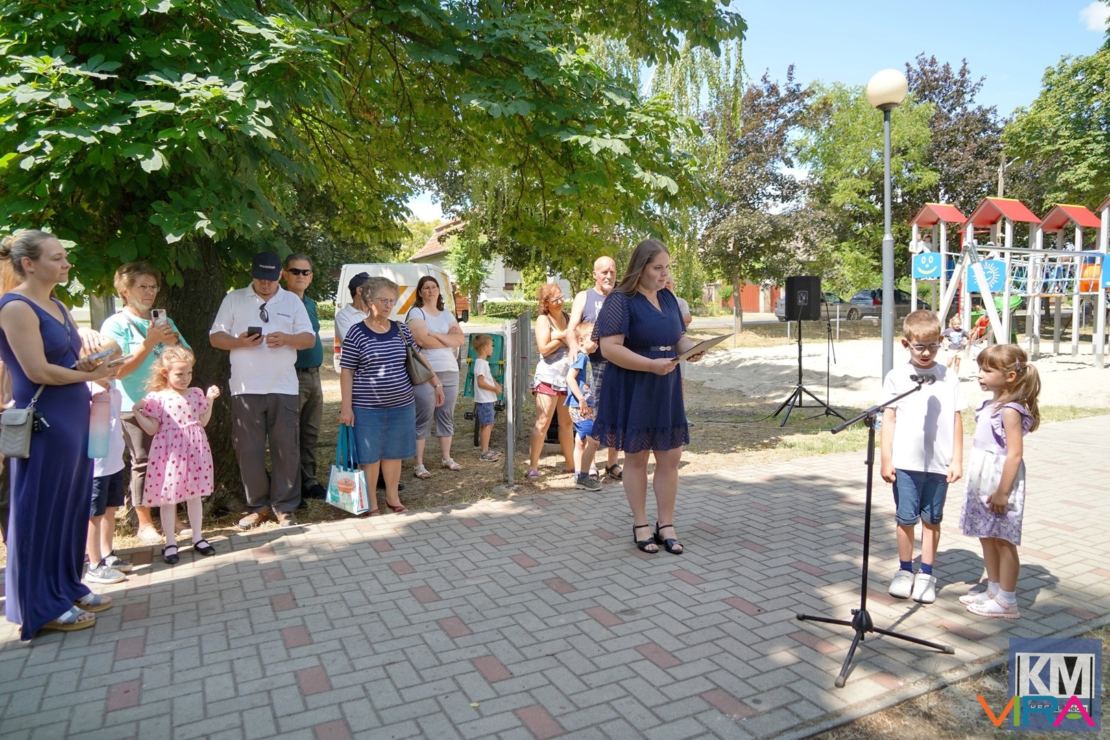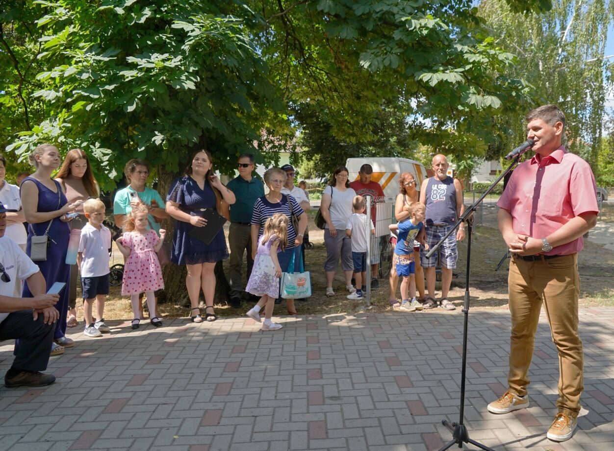 Az ünnepélyes átadáson Benedeczki Tamás, Kecel város polgármestere köszöntötte a résztvevőket, akinek gyermekei is kipróbálták a különleges elemekből álló építményt.