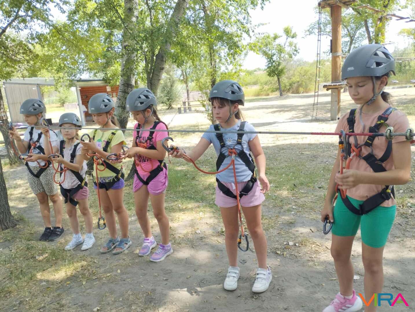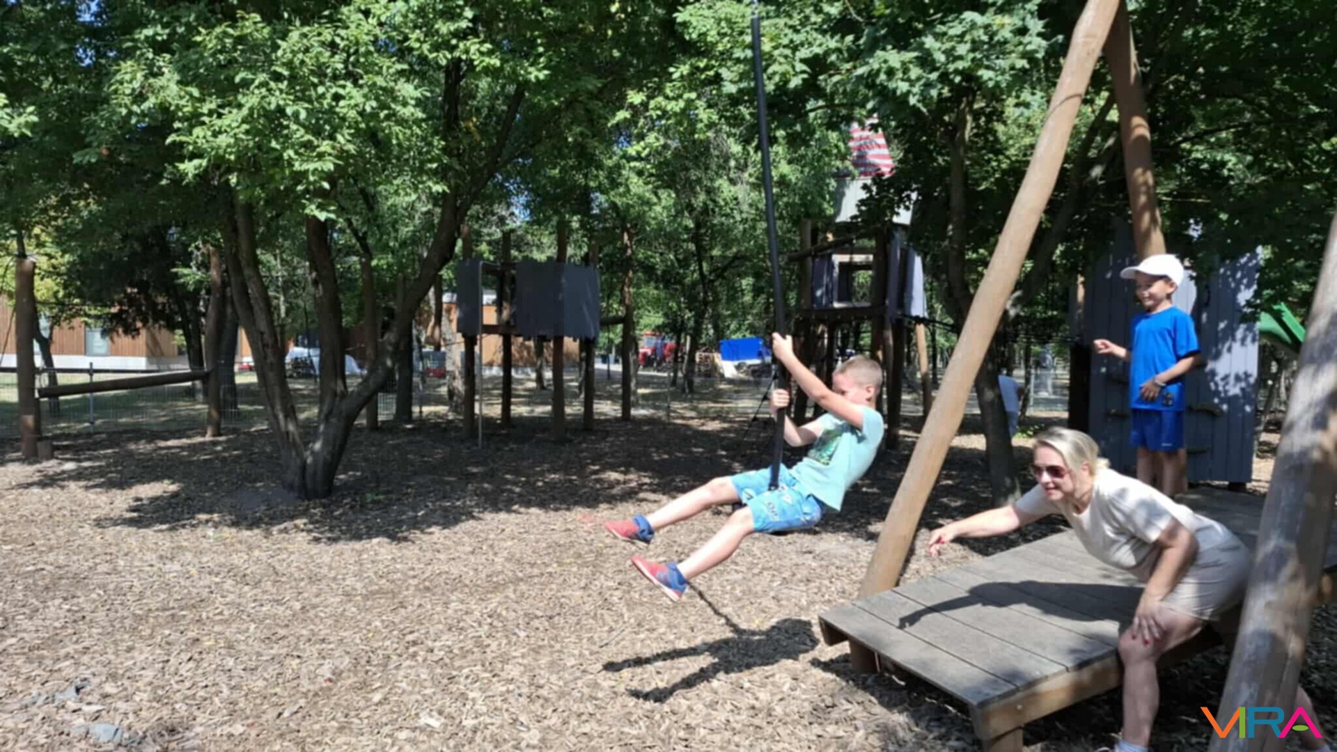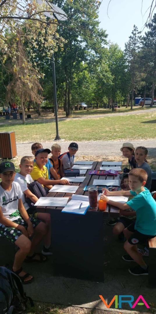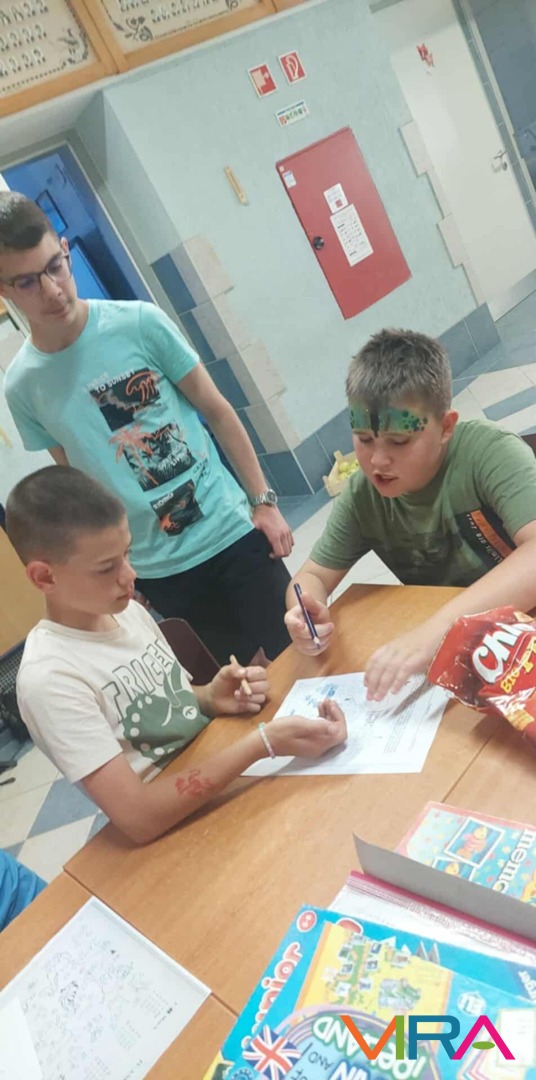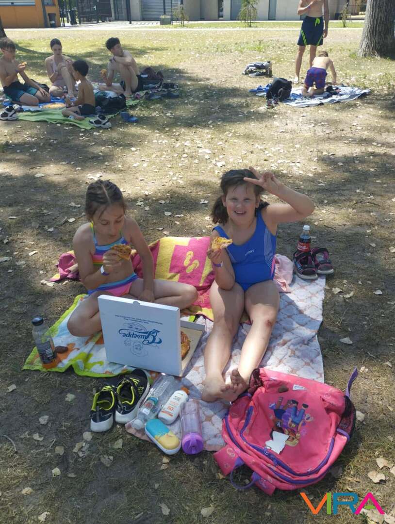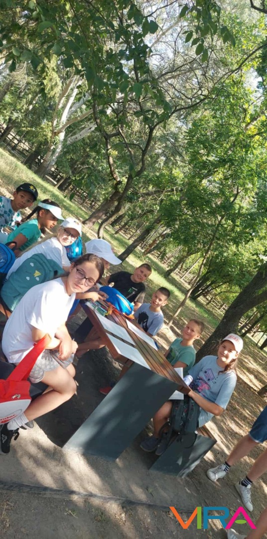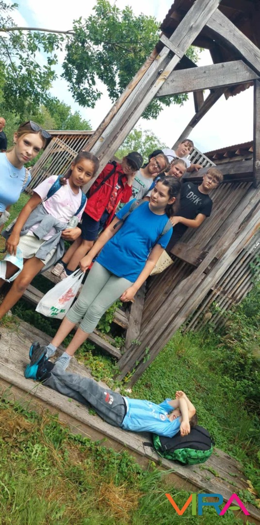 “Első napon menetrend szerinti járattal Kiskunhalasra utaztunk a Csetényi élményparkba, ahol a nyelvi foglalkozások mellett megnéztük a vízibivalyokat, akik elégedetten hűsöltek nyakig a vízben. A rekkenő hőség ellenére teljesítettük a kötélpályát is. A Csipke Hotelben megebédeltünk, de hagytunk helyet a popcornnak, mert a mozi volt a következő állomásunk mielőtt hazaindultunk.