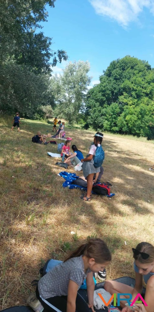 A tábor második napján az időjárás miatt változtattunk az eredeti terven, így a délelőttöt az iskolában töltöttük játékos angolos foglalkozásokkal. Délben a szülők segítségével Császártöltésre utaztunk, mert itt ért volna véget a kirándulás és várt bennünket az ebéd. A túrát a Vörös mocsárban délután bepótoltuk.