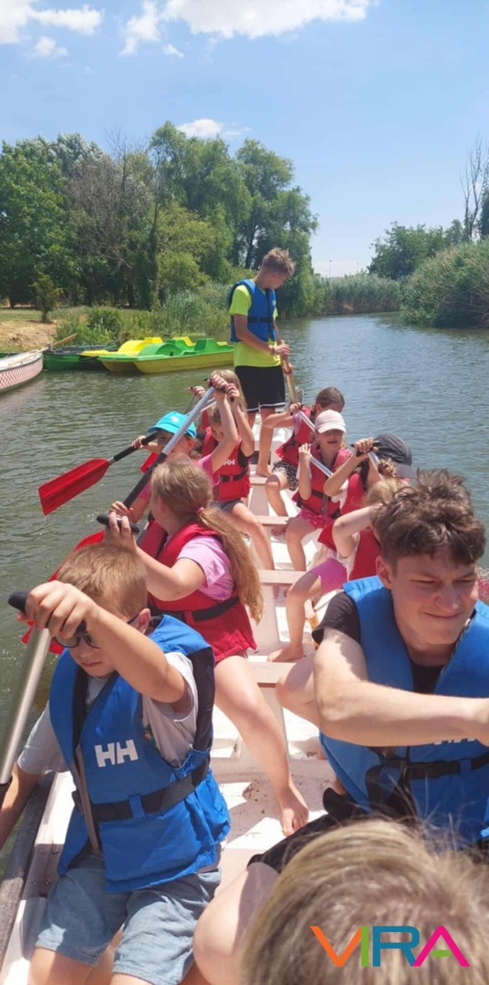 Hétfőn ismét buszra szálltunk Kalocsára, ahol az Érseki Kincstárban tárlatvezetésen és kézműves foglalkozáson vettünk részt. Délután a Vajason sárkányhajóztunk, eveztünk.