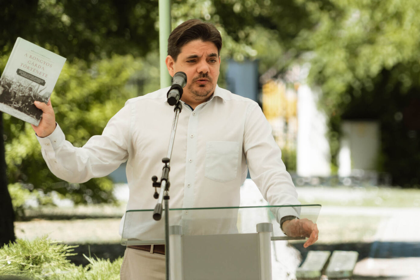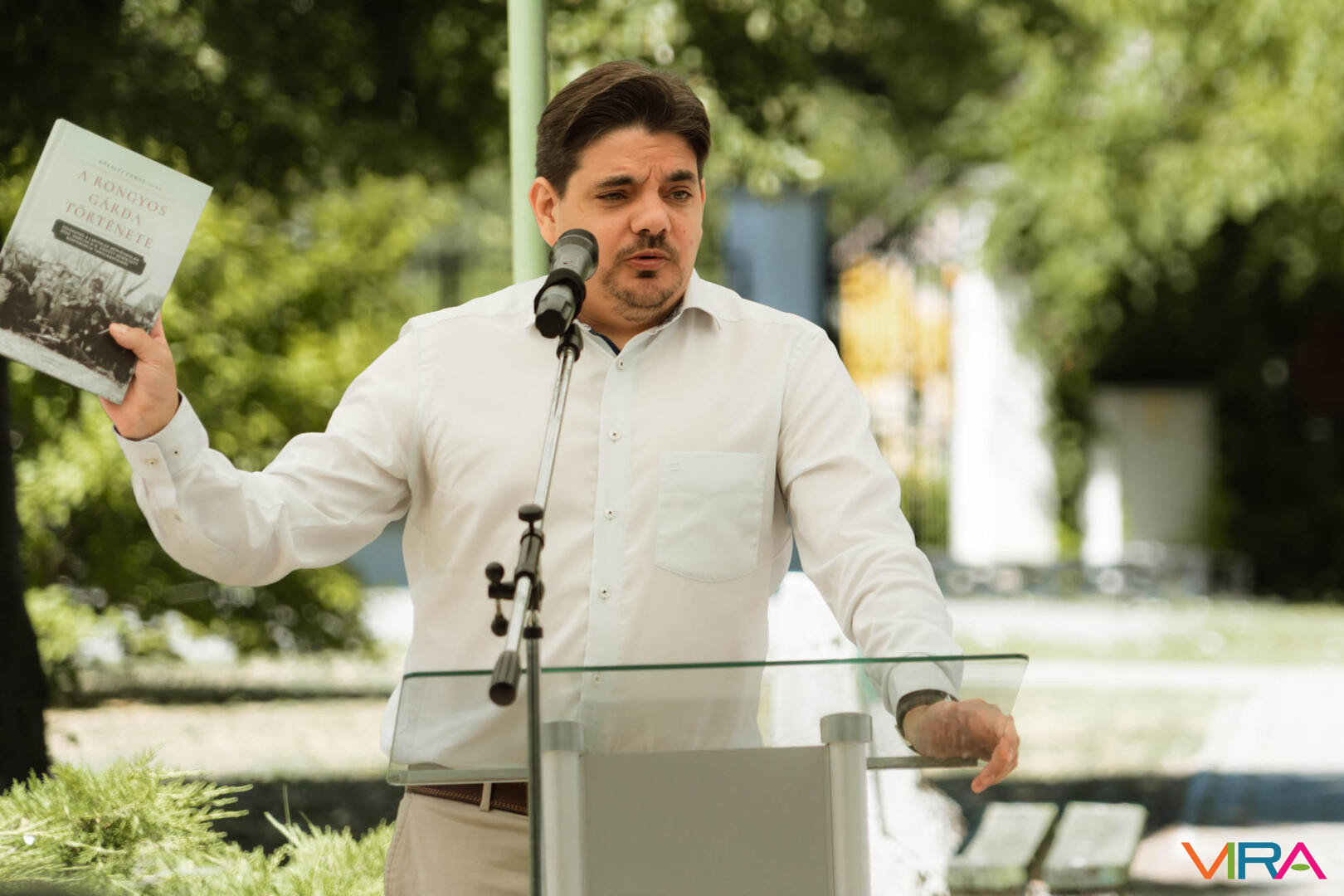 – A múltért meg kell küzdeni – hangsúlyozta –, és személyes emlékét is megosztotta a jelenlévőkkel: először nagyapjától hallott a Rongyos Gárdáról, amikor kezébe került a Szamuely Halálosztó című kiadvány. Innen indult számára a történet kutatása, megismerése.