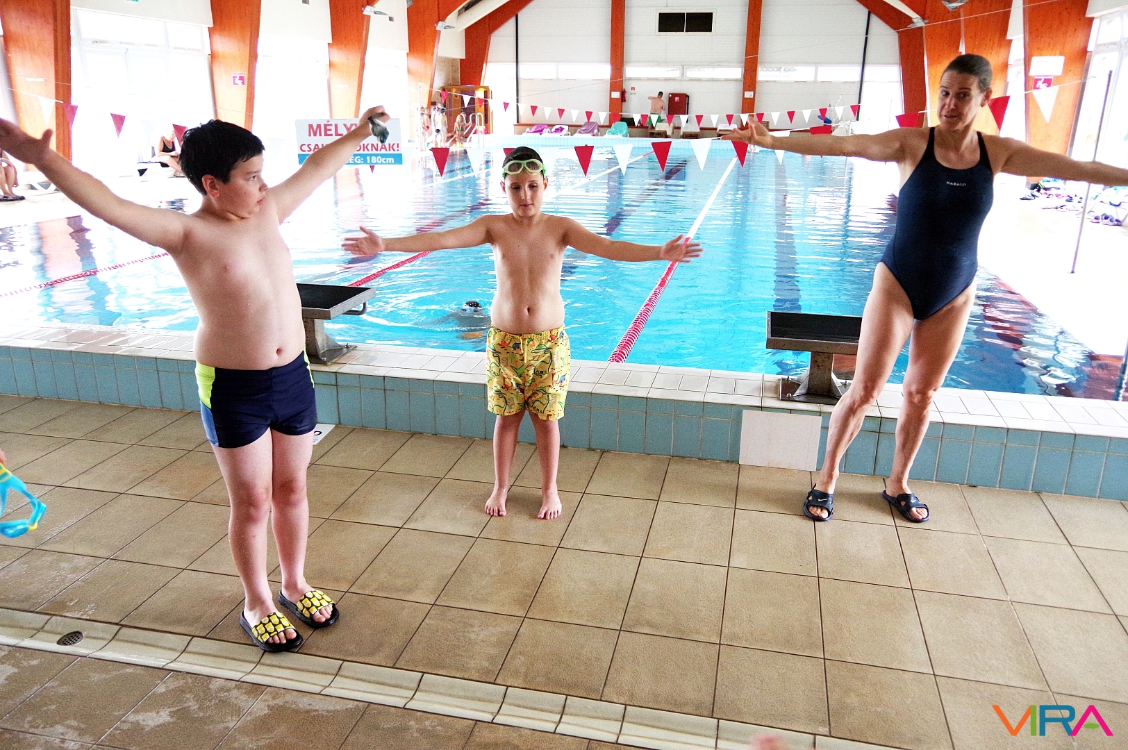 Az említett három úszás oktató külön csoportokban foglalkozott a gyermekekkel, hogy minél jobban oda tudjanak figyelni az egyéni gyakorlásokra.