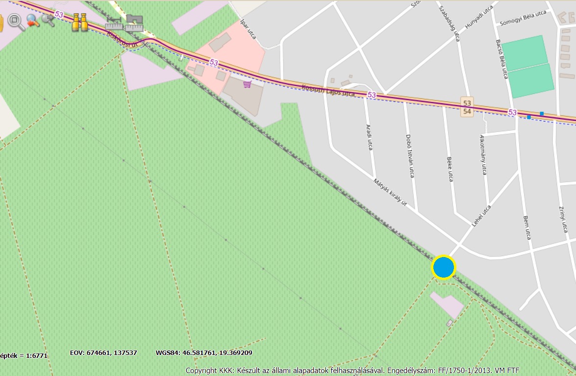 1131+09 hmsz. (53. sz. főúti) szintbeni útátjáró felé