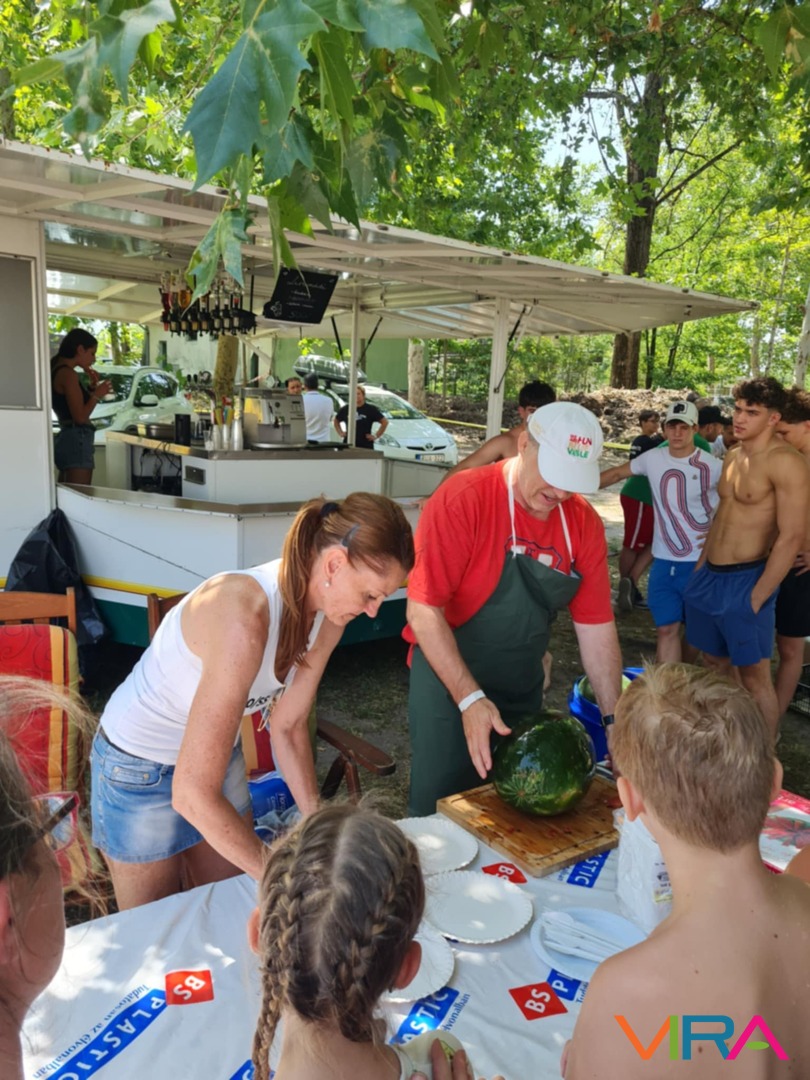 A korábbi éveknek megfelelően Komáromi Tibor – Európa bajnok, világbajnok, olimpiai ezüst érmes birkózó -, az idén is 150 kg dinnyével lepte meg a versenyzőket és a szurkoló családtagokat.