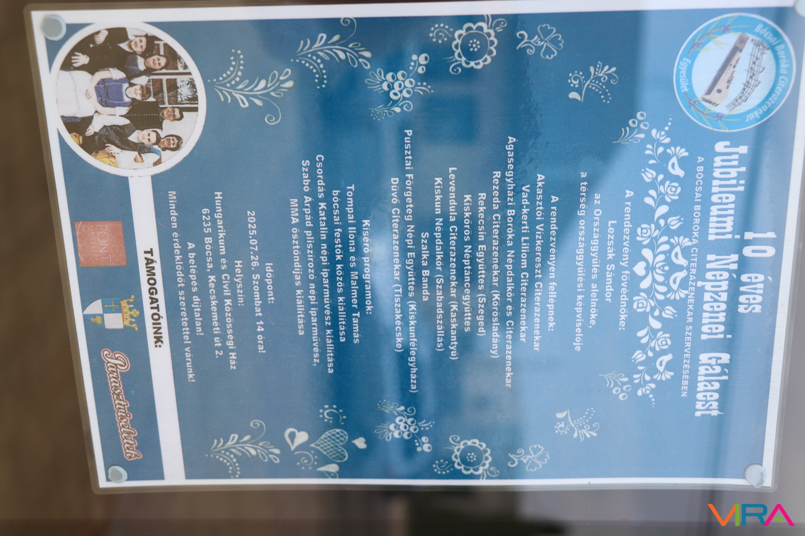 A rendezvény konferátora Kovács Illés volt, aki többek között a házigazda Bócsai Boróka Citerazenekar Egyesületet is bemutatta, mely 2015-ben alakult Bócsán, a Bócsai Boróka Általános Iskola citera szakkörének diákjaiból, környékbeli általános iskolás gyermekekből, valamint felnőtt, népzeneszerető citerásokból. A zenekar nevét az általános iskoláról, illetve a település melletti ősborókásról kapta. Az évek során nemcsak a zenekar összetétele változott meg, hanem a zenekartagok által játszott zenei stílus is, hiszen a kezdeti autentikus hangzást a többszólamú citerazenekari felállás váltotta fel. 2023 áprilisában az a megtiszteltetés érte a citerazenekart, hogy a pápalátogatáson muzsikálhattak a Rózsák terén, mely életre szóló élmény maradt számukra. Az elmúlt években számos kulturális eseményen, kiállításmegnyitón, községi és városi rendezvényen felléptek, több alkalommal muzsikálhattak Szegeden; táncházakban és egyetemi közösségekben. 10 éves egyesületi működésük alatt szakmai felkészítésüket Kárász István zenekar- és művészeti vezető segítette elő. Népzenei csokraikat tájegységek szerint állítják össze: ezek között szerepel dél-alföldi, vajdaszentiványi, kalotaszegi, szilágysági, gömöri, szatmári, bonchidai és galgamenti népzene is. Megalakulásuk óta Gulyás Ferenc és Komróczki Gyula által készített hangszereken játszanak, akik együtt ünnepeltek velük ezen az alkalmon. Az egyesület legfőbb támogatója Bócsa Község Önkormányzata.
