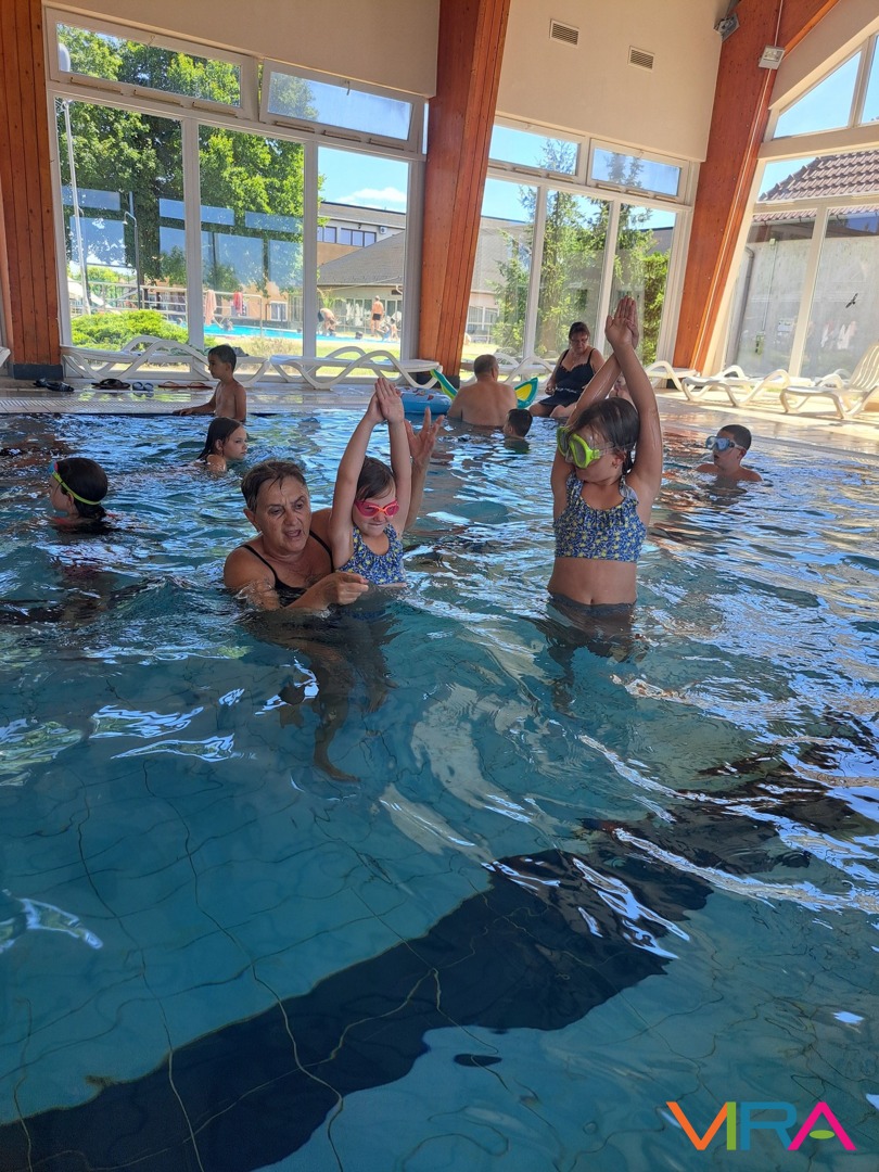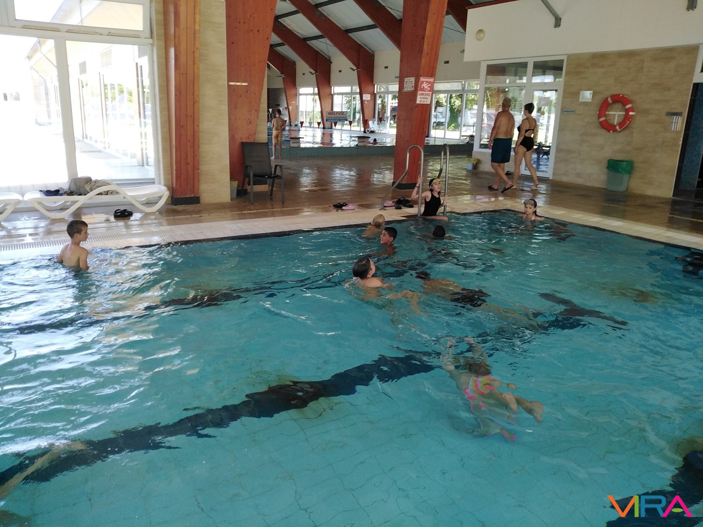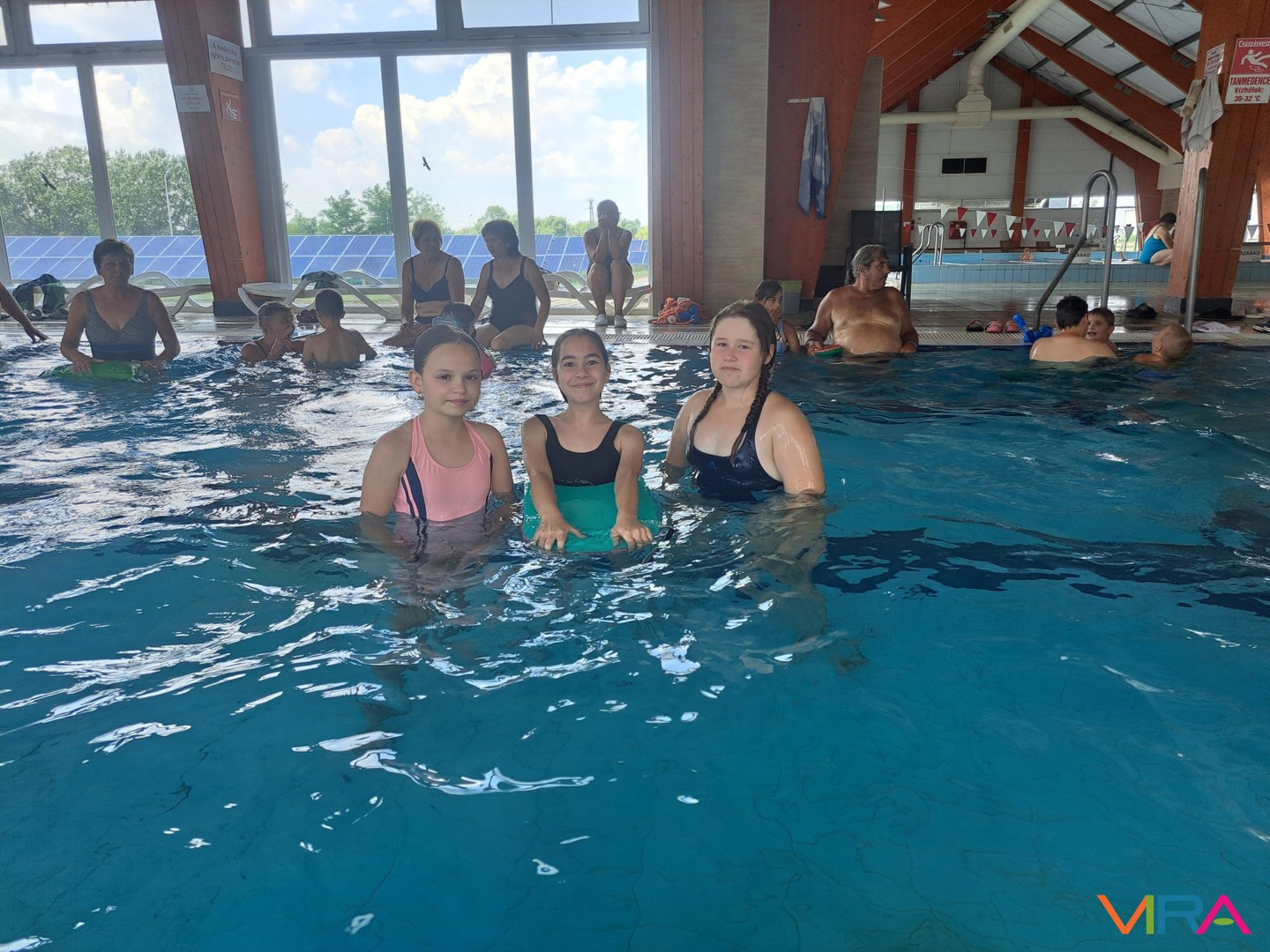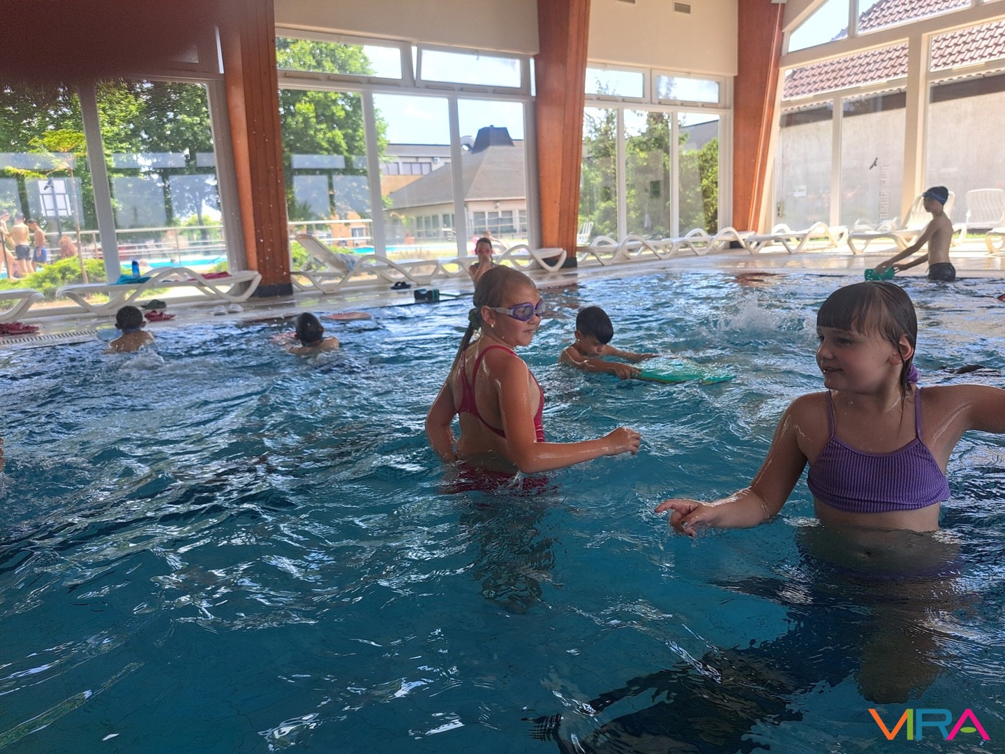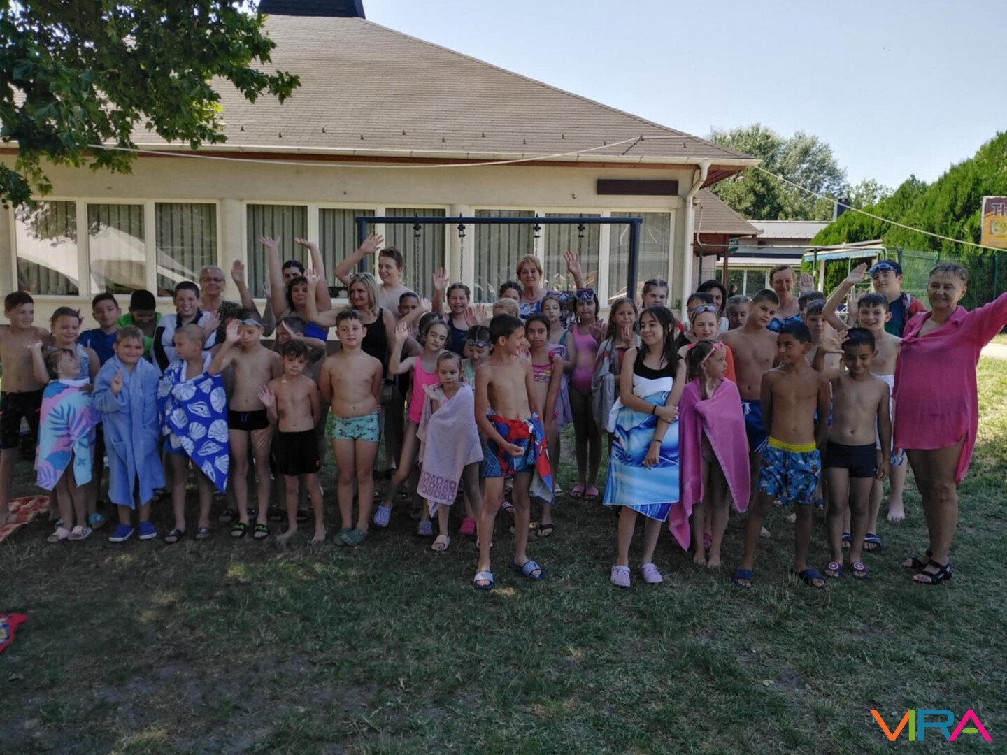Hétfőn, szerdán, pénteken a táborozók legnagyobb örömére, és a nagy melegre való tekintettel, a kiskőrösi Rónaszéki Fürdőbe utazott a csapat, ahol sok frissítő élménnyel gazdagodhattak. Pásztorné Molnár Judit a délutáni órákban még úszásoktatást is tartott a gyerekeknek.
