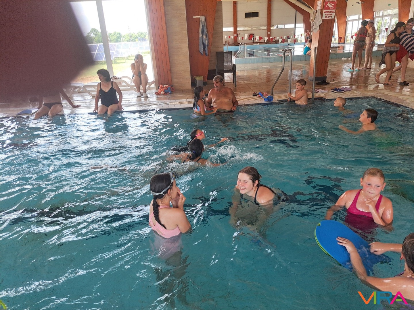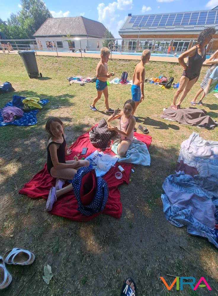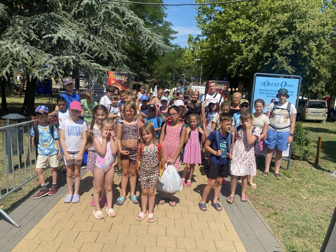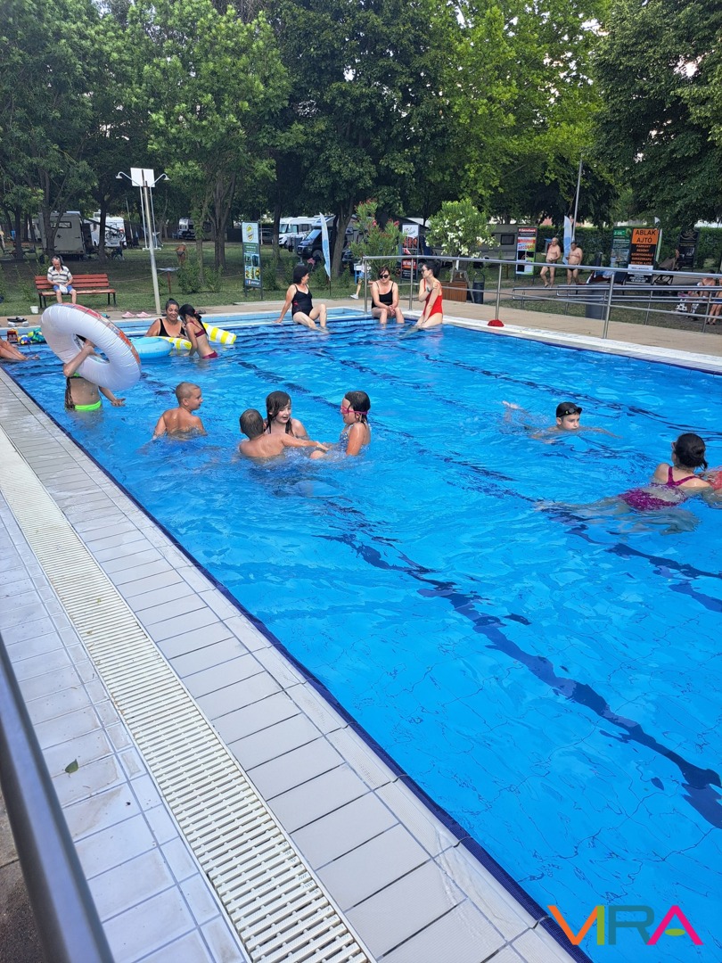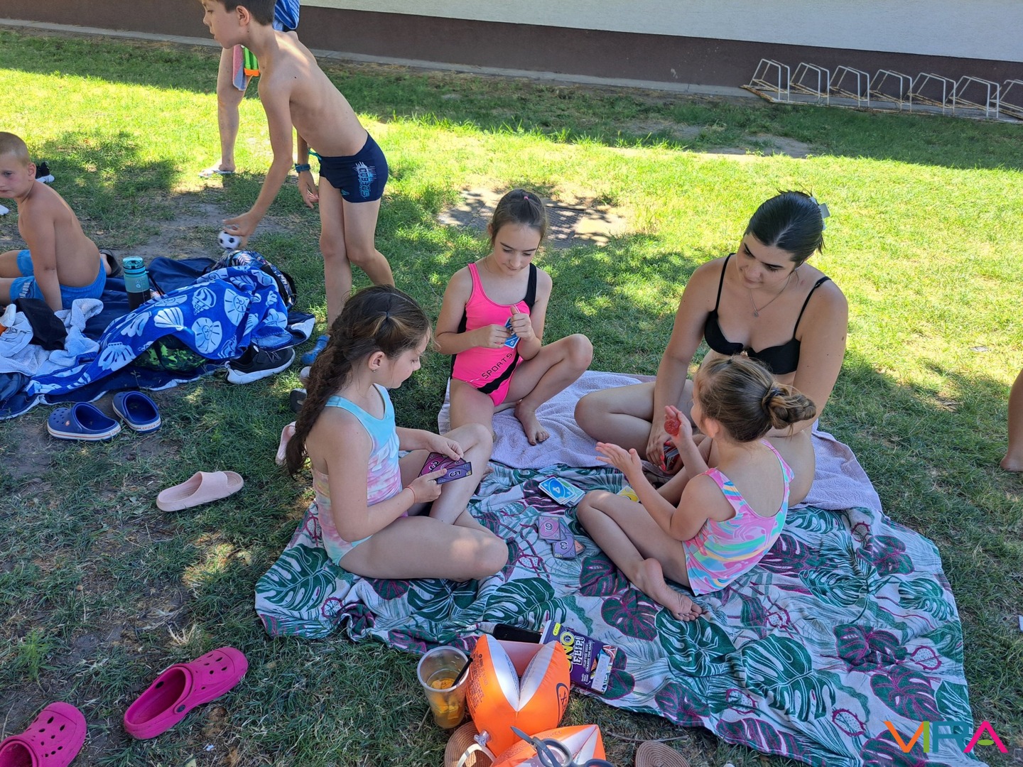 Hétfőn, szerdán, pénteken a táborozók legnagyobb örömére, és a nagy melegre való tekintettel, a kiskőrösi Rónaszéki Fürdőbe utazott a csapat, ahol sok frissítő élménnyel gazdagodhattak. Pásztorné Molnár Judit a délutáni órákban még úszásoktatást is tartott a gyerekeknek.