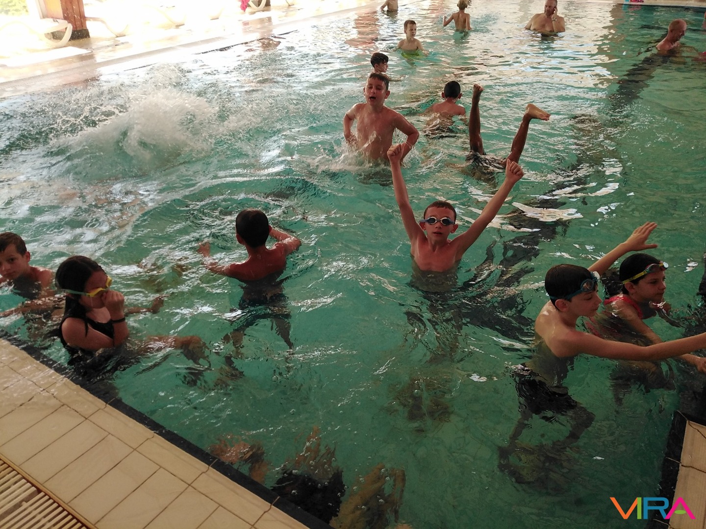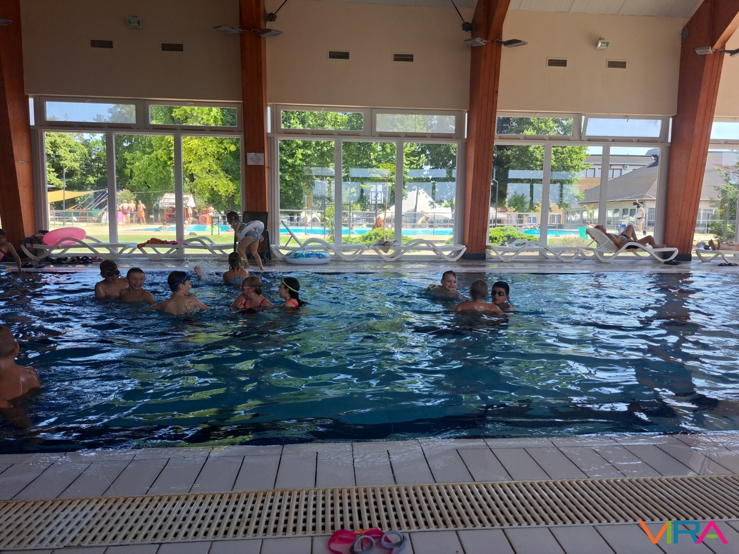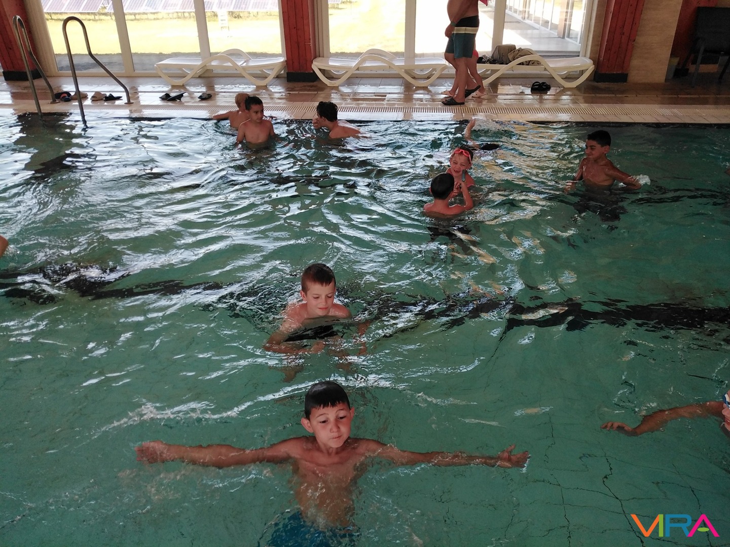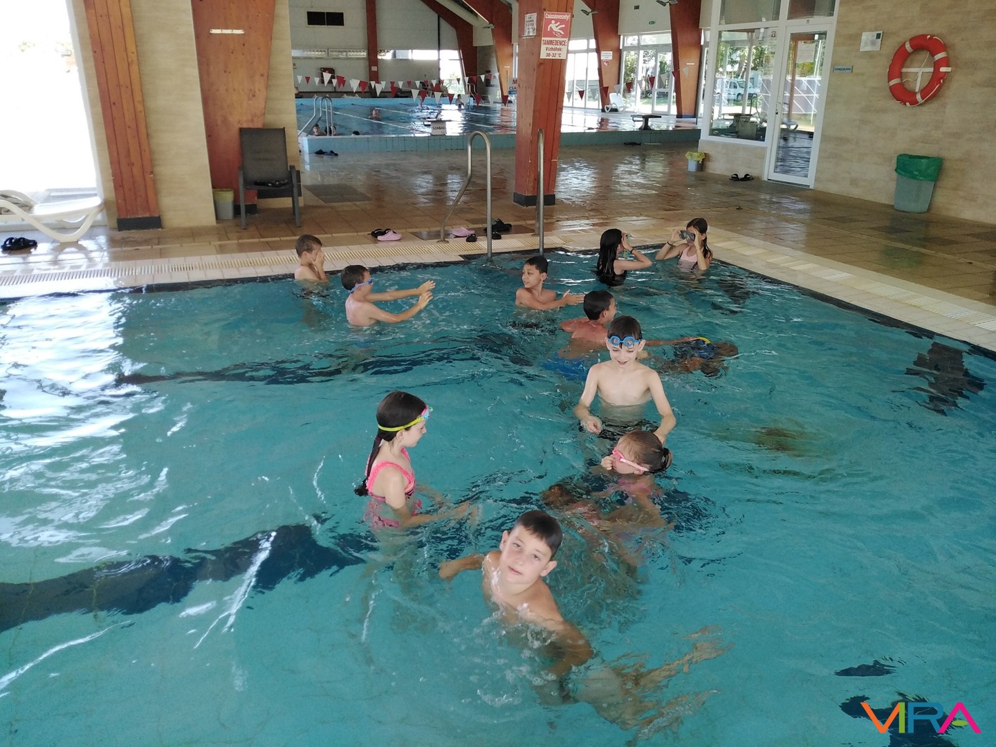 Hétfőn, szerdán, pénteken a táborozók legnagyobb örömére, és a nagy melegre való tekintettel, a kiskőrösi Rónaszéki Fürdőbe utazott a csapat, ahol sok frissítő élménnyel gazdagodhattak. Pásztorné Molnár Judit a délutáni órákban még úszásoktatást is tartott a gyerekeknek.