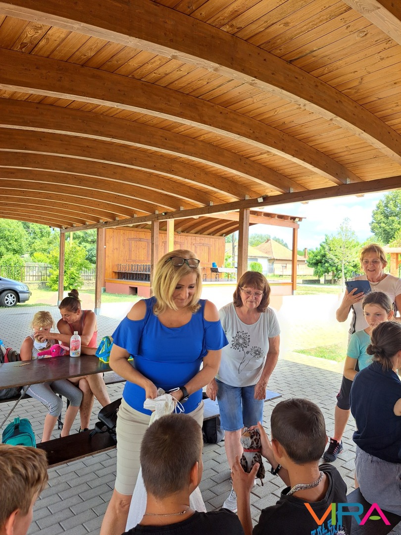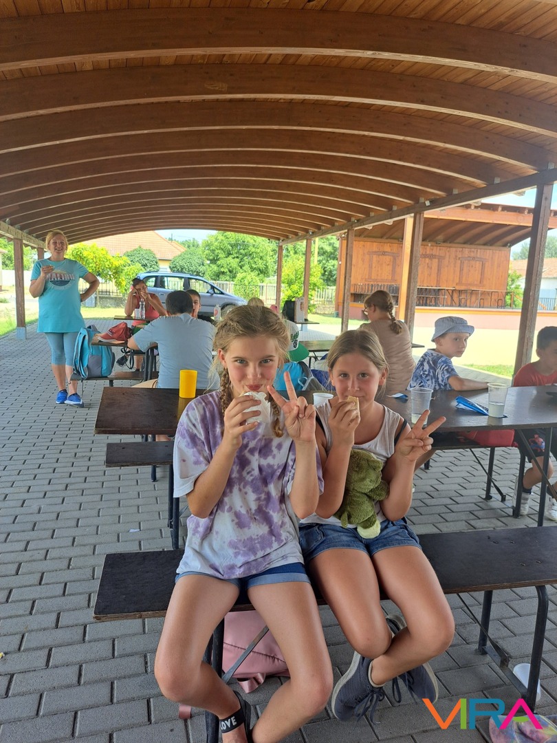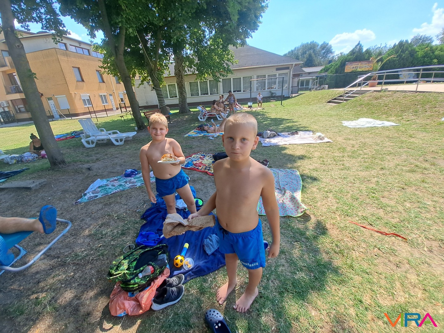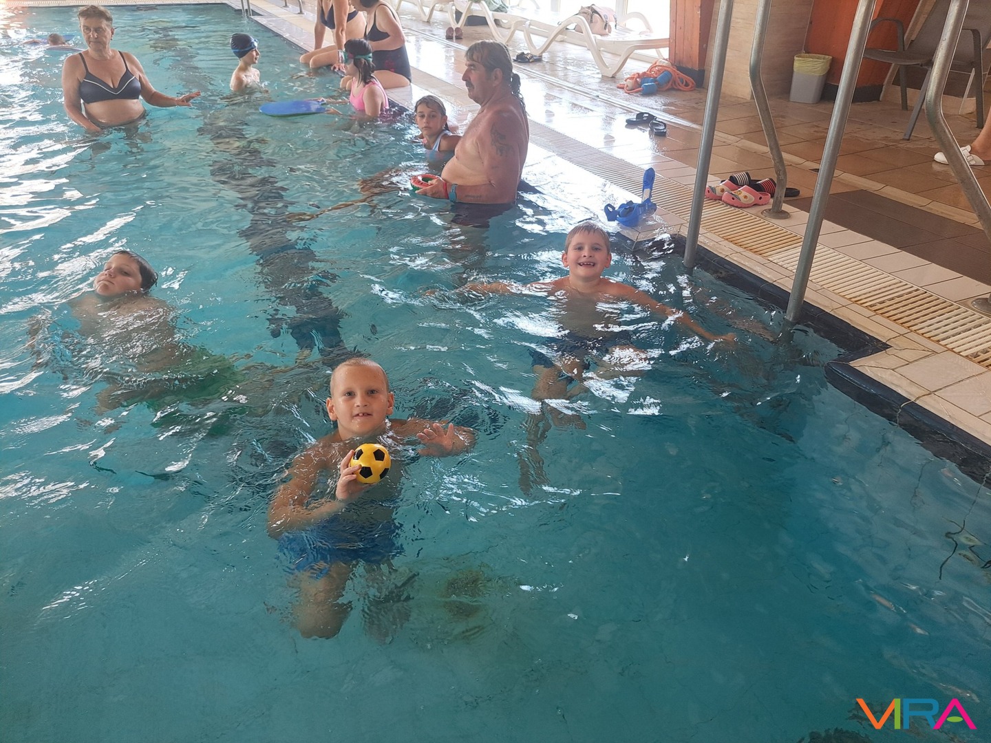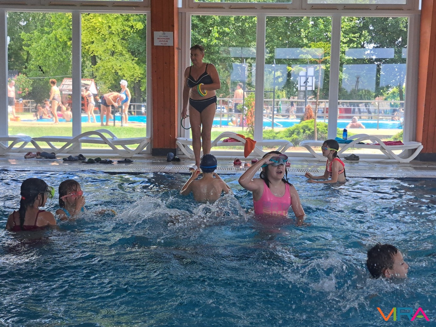 Hétfőn, szerdán, pénteken a táborozók legnagyobb örömére, és a nagy melegre való tekintettel, a kiskőrösi Rónaszéki Fürdőbe utazott a csapat, ahol sok frissítő élménnyel gazdagodhattak. Pásztorné Molnár Judit a délutáni órákban még úszásoktatást is tartott a gyerekeknek.
