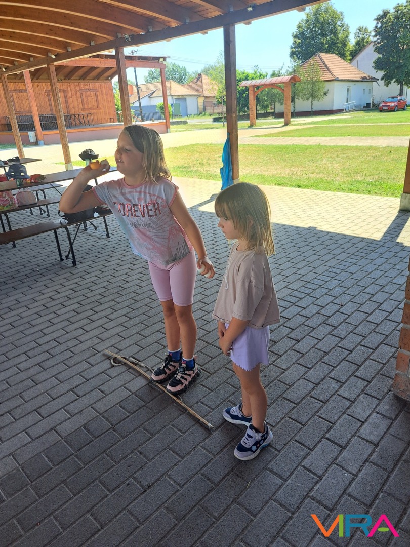 Csütörtökön kerékpárjaikkal érkeztek meg Kaskantyúra a tabdi gyerekek. Az egész nap a játék jegyében telt: ügyességi feladatokkal, társasjátékokkal vártak minden gyermeket, aki a programon részt vett. Délben paprikáskrumplit ebédeltek, desszertként jégkrémet fogyasztottak, sőt még limonádét is készítettek a gyerekeknek az általános iskola, és Lajkó-Németh Andrea felajánlásából, akinek segítségére volt Kiss Márta, Vinczéné Mezei Beáta, Agárdi-Nagy Judit és Győri Viktória ezen a napon. Uzsonnára Tapolcsányiné Kun Anett jóvoltából ízletes palacsintákkal dőzsölhettek. A Tabdiról érkező gyerekek egy kis emléket, zsákbamacskát is hazavihettek Kaskantyúról.