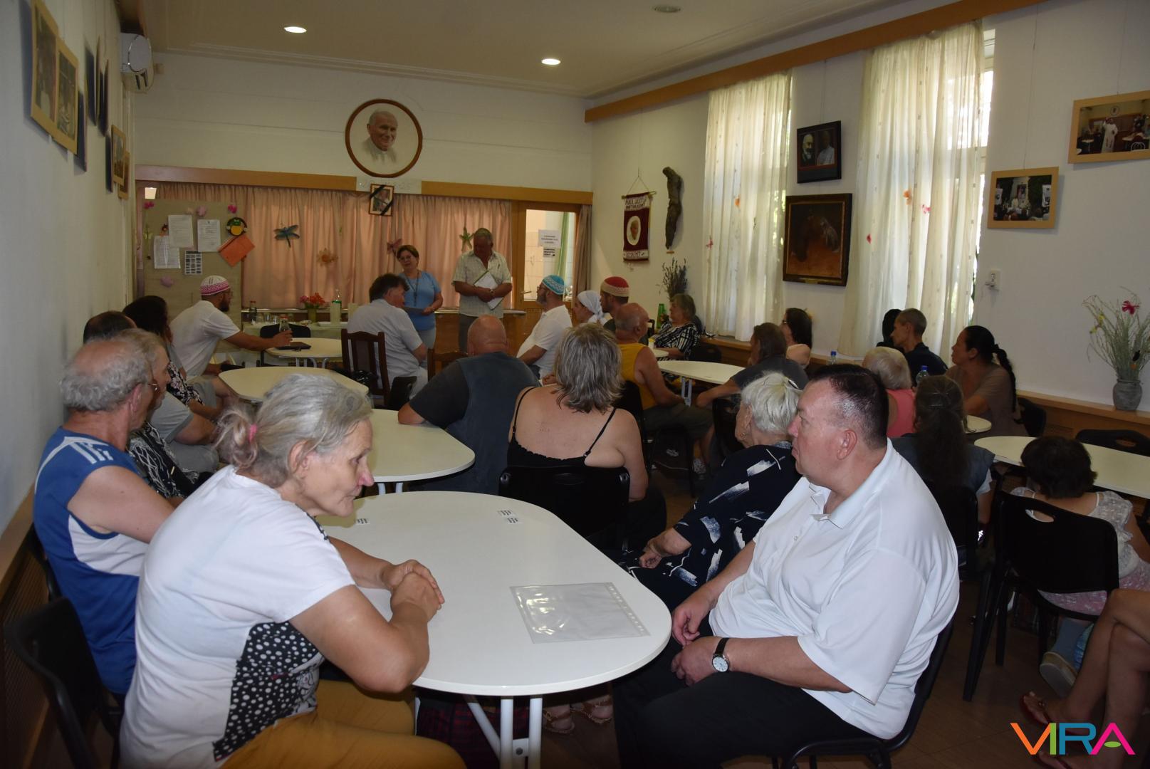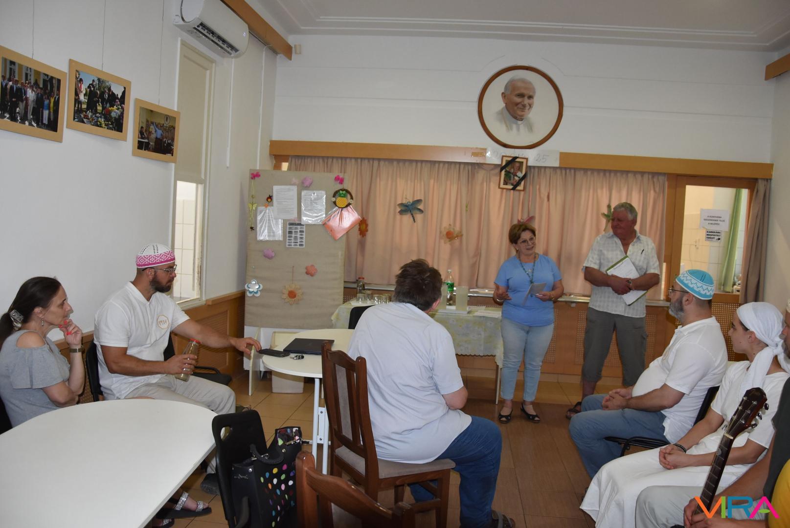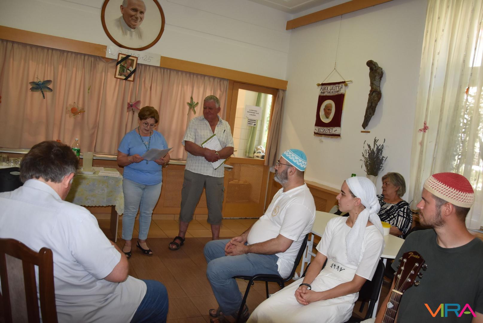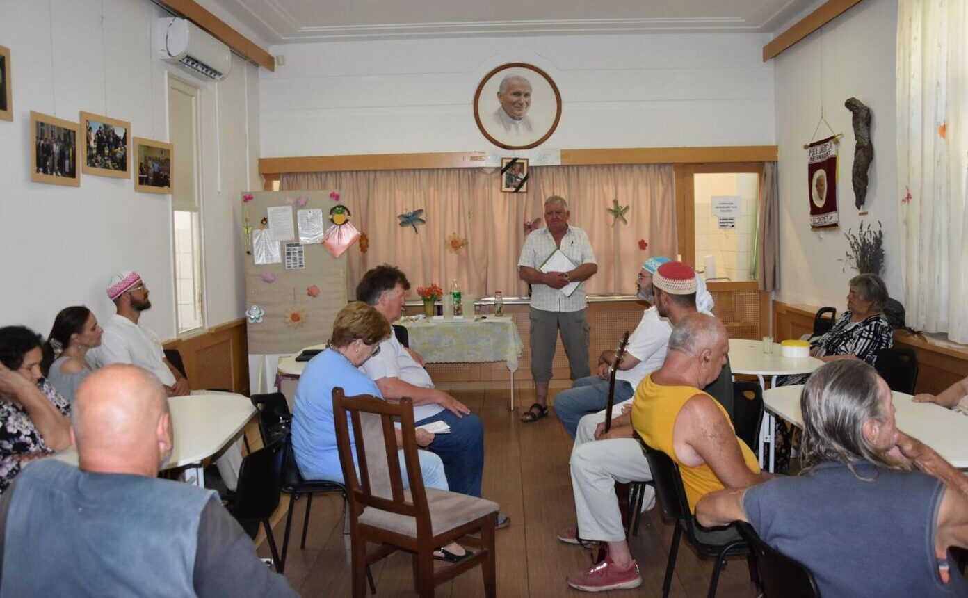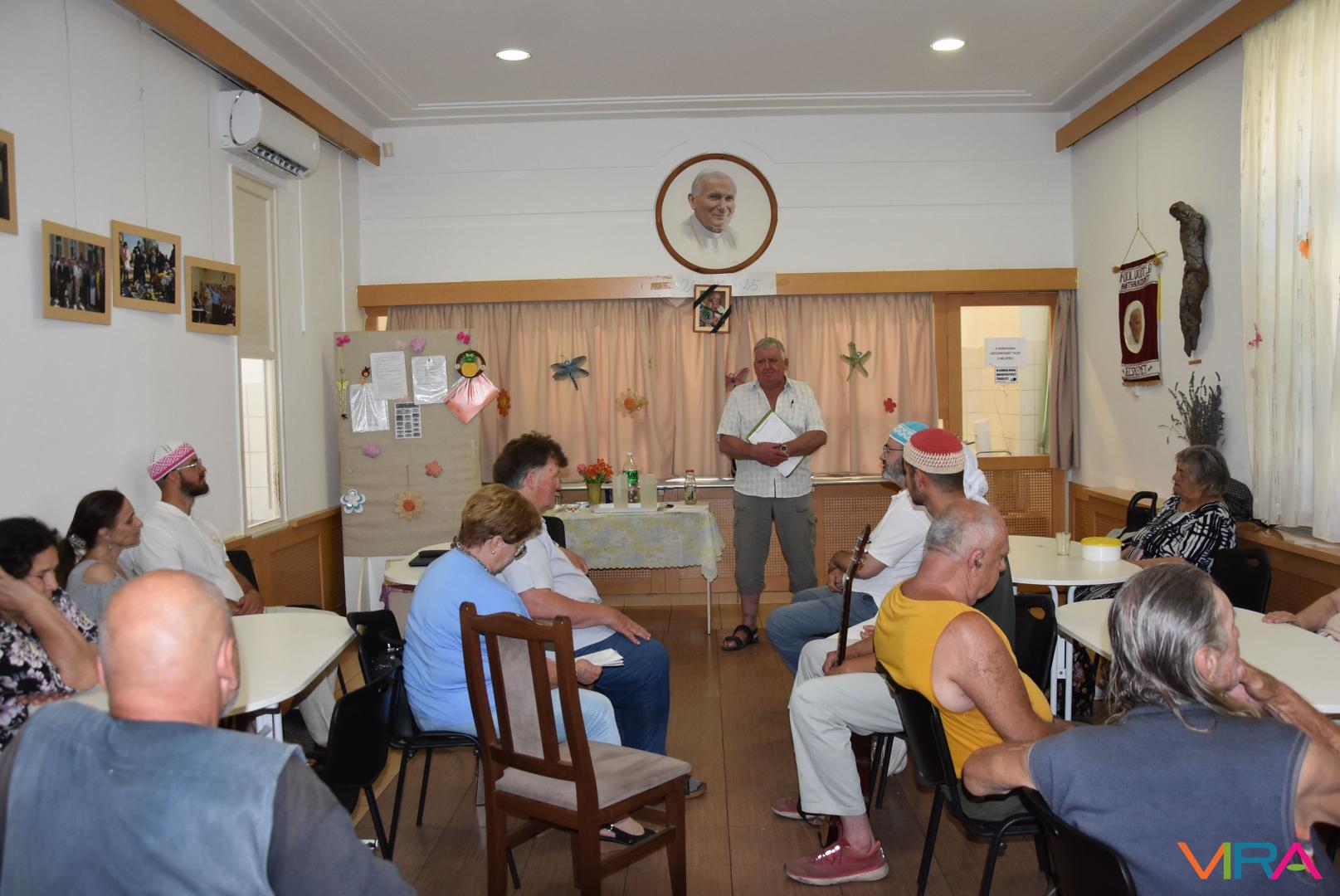 A pénteki ebédosztást megelőzően Szénási Pál és Anna leánya közreműködésével felcsendült a Himnusz, melynek hangjai után Farkas Pál, a Wojtyla Barátság Központ programszervező munkatársának gondolatai nyitották a két napig tartó rendezvénysorozatot a szociális-közművelődési intézmény étkezdéjében.