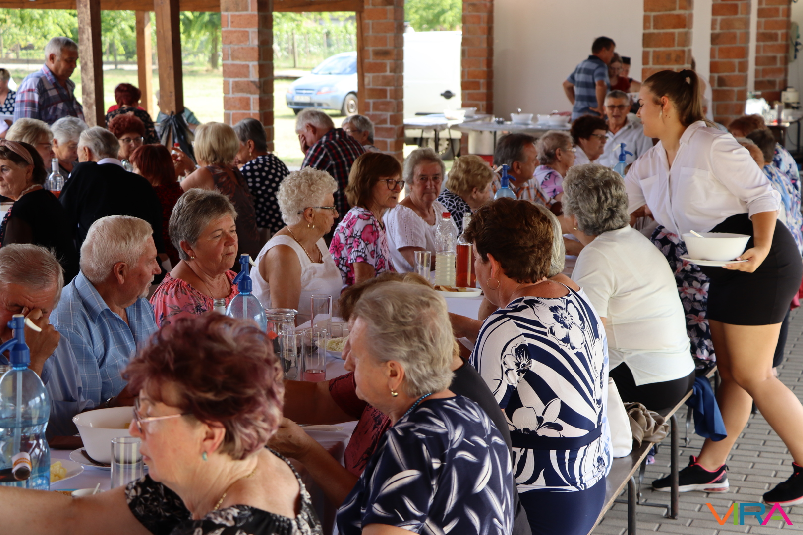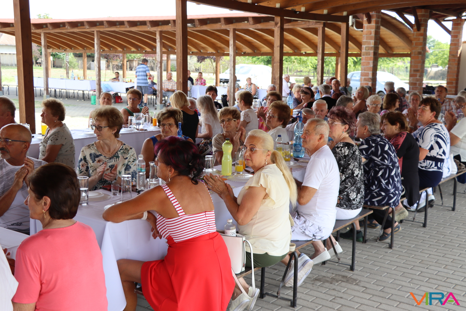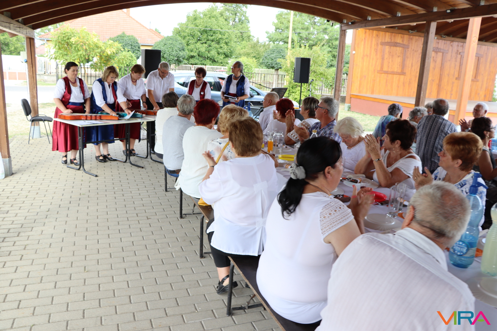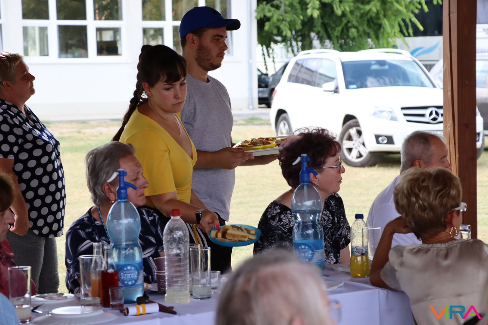 A program a vacsorával folytatódott, ami marhapörkölt volt főtt burgonyával és savanyúkáposztával, melyet a császártöltési Gösser Vendéglő munkatársai készítettek el és szolgáltak fel. Az asztalokra szörp, szóda, bor, sós és édes sütemény is került. Továbbá a rendezvény ideje alatt röviditalokkal kínálták az időseket, de büféis üzemelt.