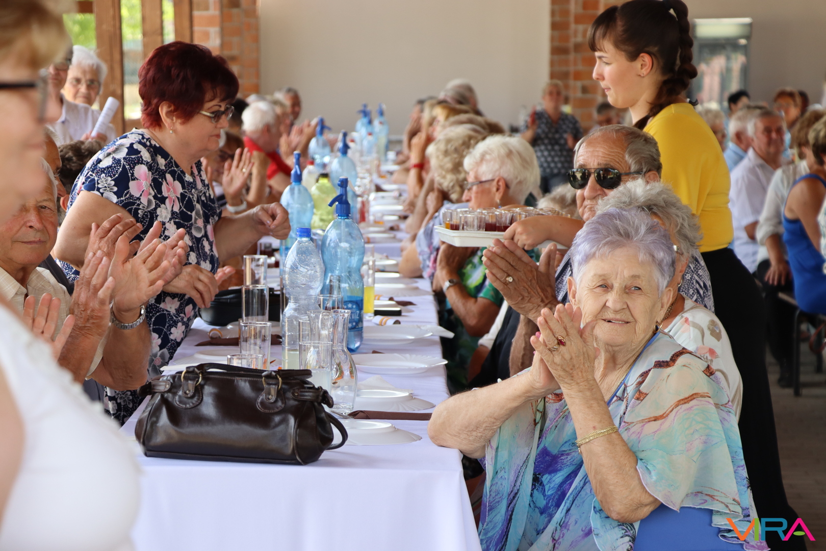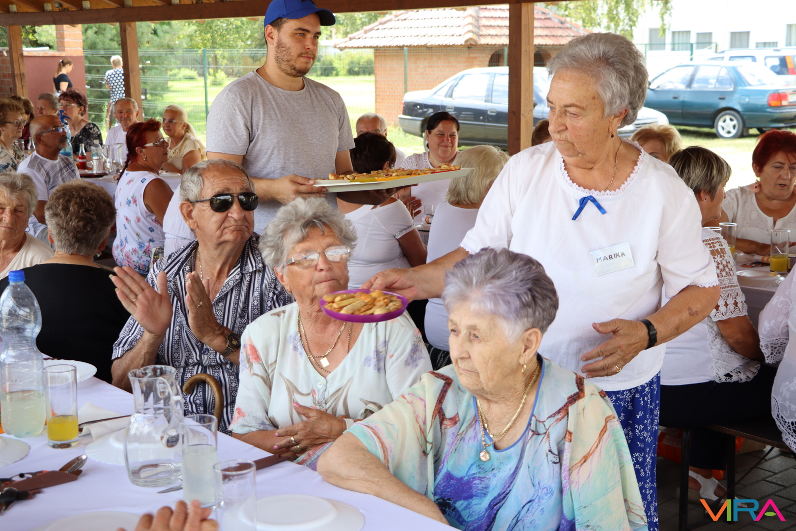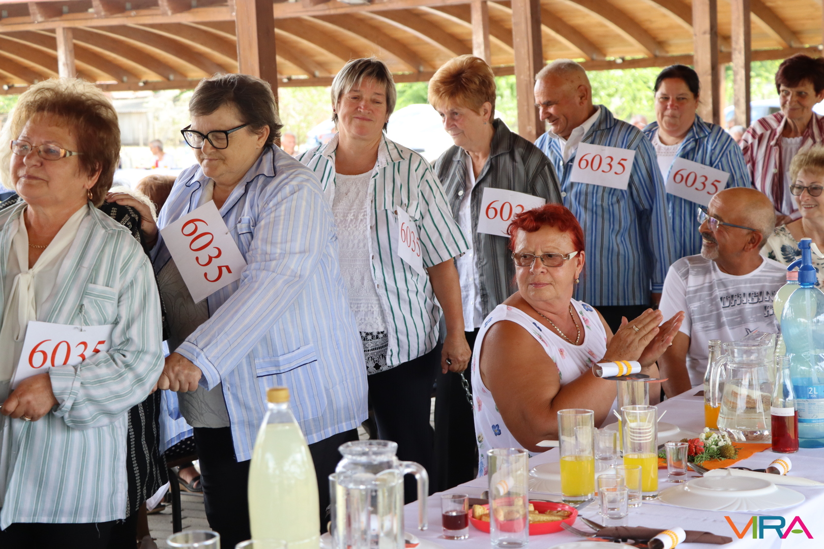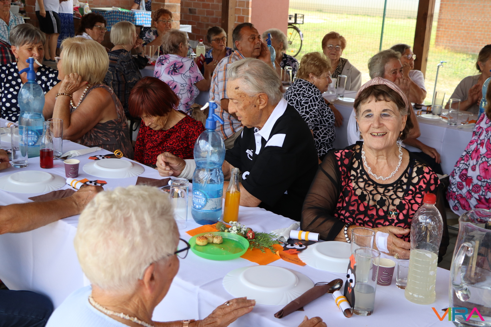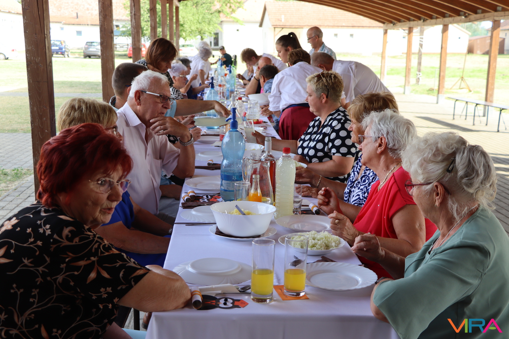 A program a vacsorával folytatódott, ami marhapörkölt volt főtt burgonyával és savanyúkáposztával, melyet a császártöltési Gösser Vendéglő munkatársai készítettek el és szolgáltak fel. Az asztalokra szörp, szóda, bor, sós és édes sütemény is került. Továbbá a rendezvény ideje alatt röviditalokkal kínálták az időseket, de büféis üzemelt.