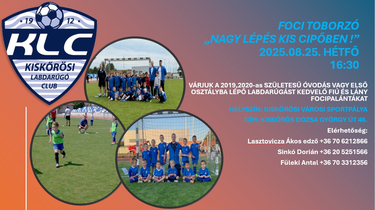 A legfiatalabb korosztály számára augusztus 25-re toborzót szerveznek, amelyre várják 16.30 órai kezdettel a 2019, valamint 2020-as születésű fiatalokat a sportpályára, de mindezek mellett év közben is várják a labdarúgás iránt érdeklődő fiatalokat minden utánpótlás csapatukba.