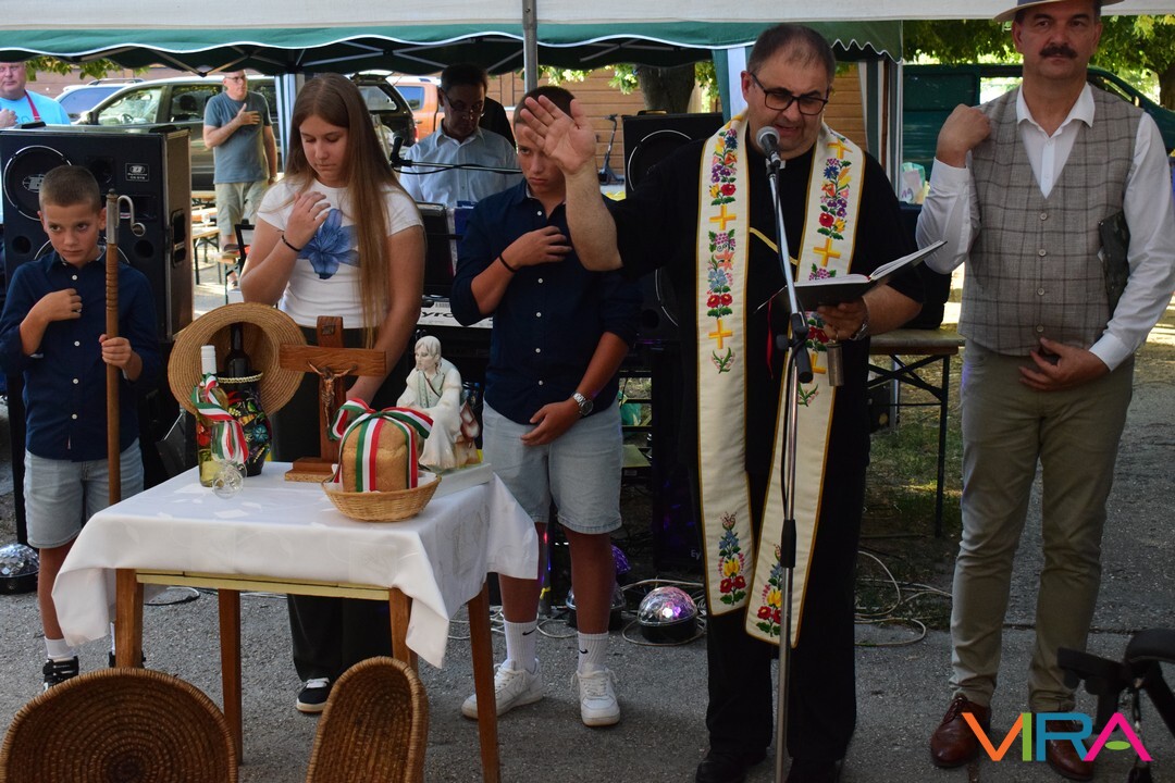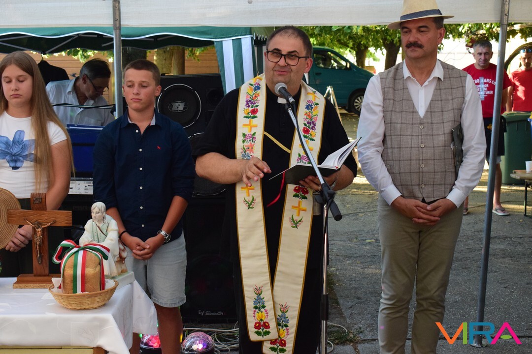 A megnyitó beszédet követően három fiatal, Turú Tímea, Németh György és Németh Hunor hozták be Gubán Gyula kíséretében a pásztorbotot, a fából készült feszületet és az új kenyeret Kiss Kata Zenekar: Magyar Vagyok című számára. Az új kenyeret Kiss István plébános áldotta meg.