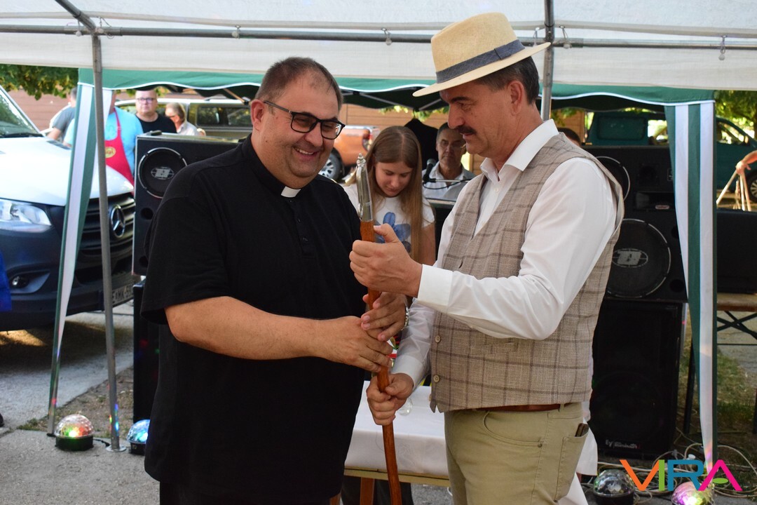 Gubán Gyula egy pásztorbotot adott át Kiss István plébánosnak két jubileum apropójából. Kiss István 10 éve szolgál Akasztón, és 20 éve szentelték pappá.