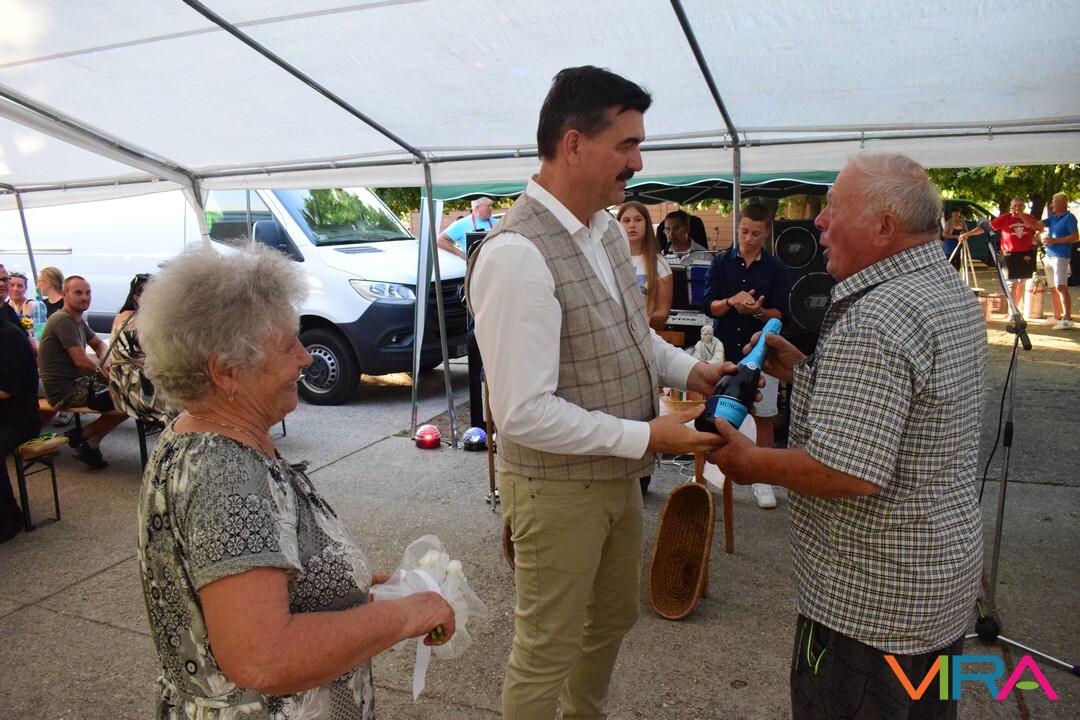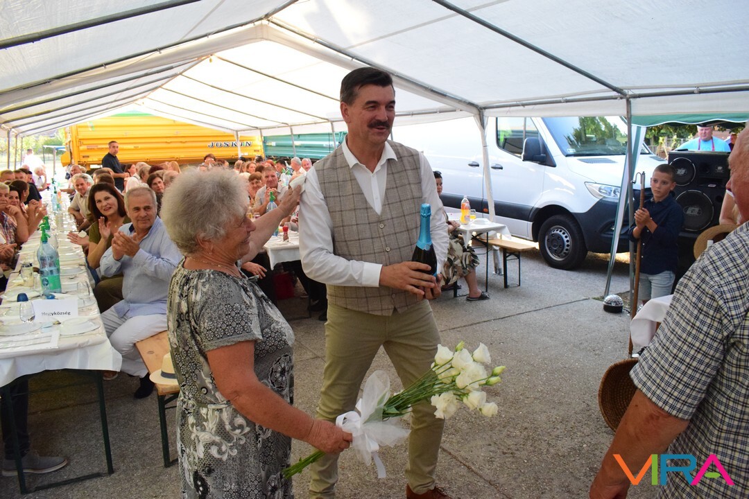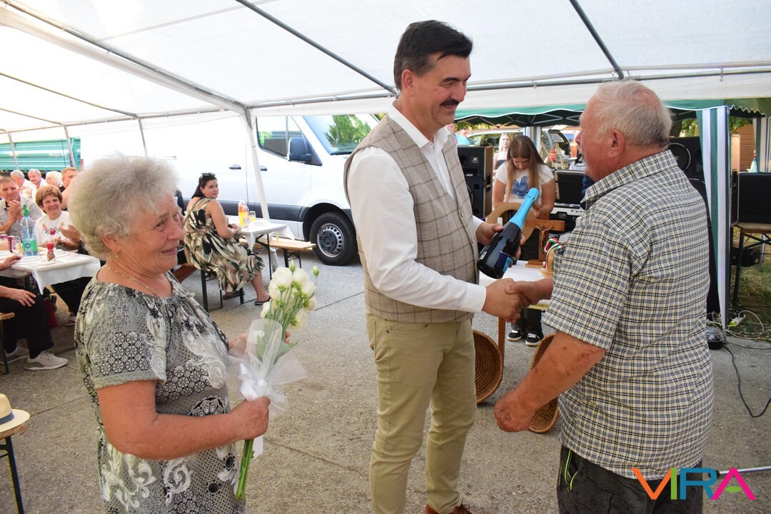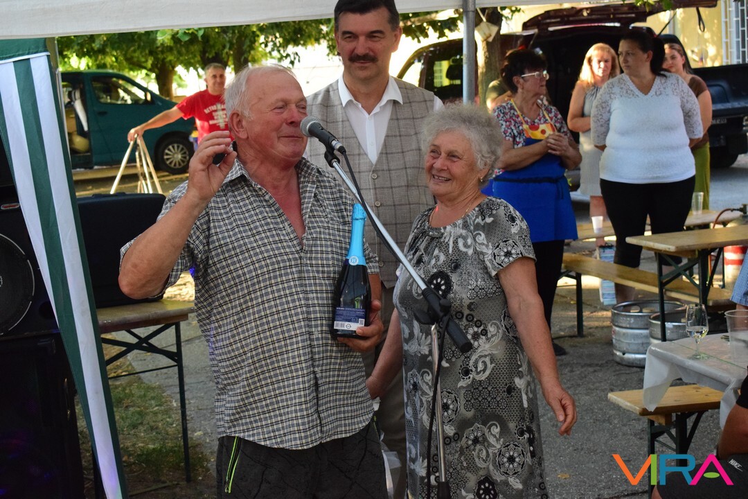 Ezzel azonban még mindig nem ért véget a köszöntések sora, ugyanis Tóth Sanyi bácsi és felesége Annuska néni, akik már 56 éve házasok, szintén egy kisebb ajándékban részesültek.