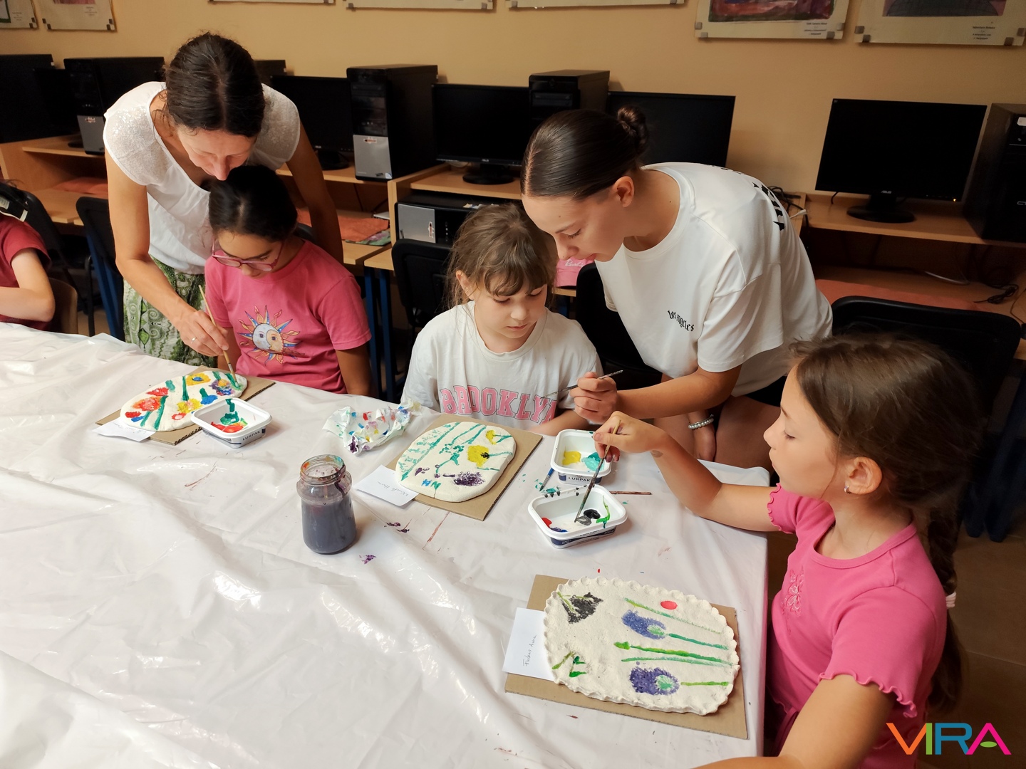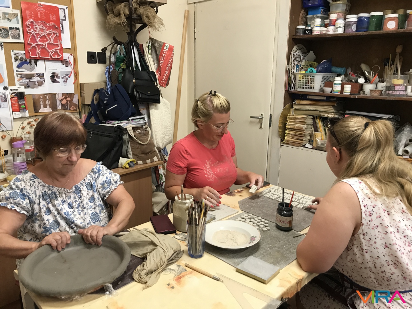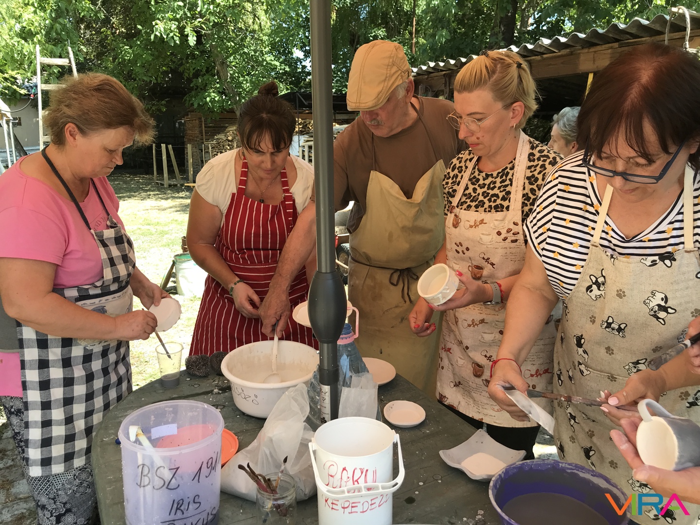 A következő héten, június 23–27. között, a kerámia került a fókuszba. A résztvevők különböző agyagmegmunkálási eljárásokat sajátíthattak el, a lap- és hurkarátéttől kezdve a rakuzásig – utóbbit Kovács László fazekasmester segítségével. A kisplasztikák, használati tárgyak és dísztárgyak készítéséhez olyan technikák is előkerültek, mint az engobos díszítés, karcolás, áttörés és rátétes formaalkotás. A kész művek szárítás, égetés, mázazás és újraégetés után nyerték el végső formájukat.