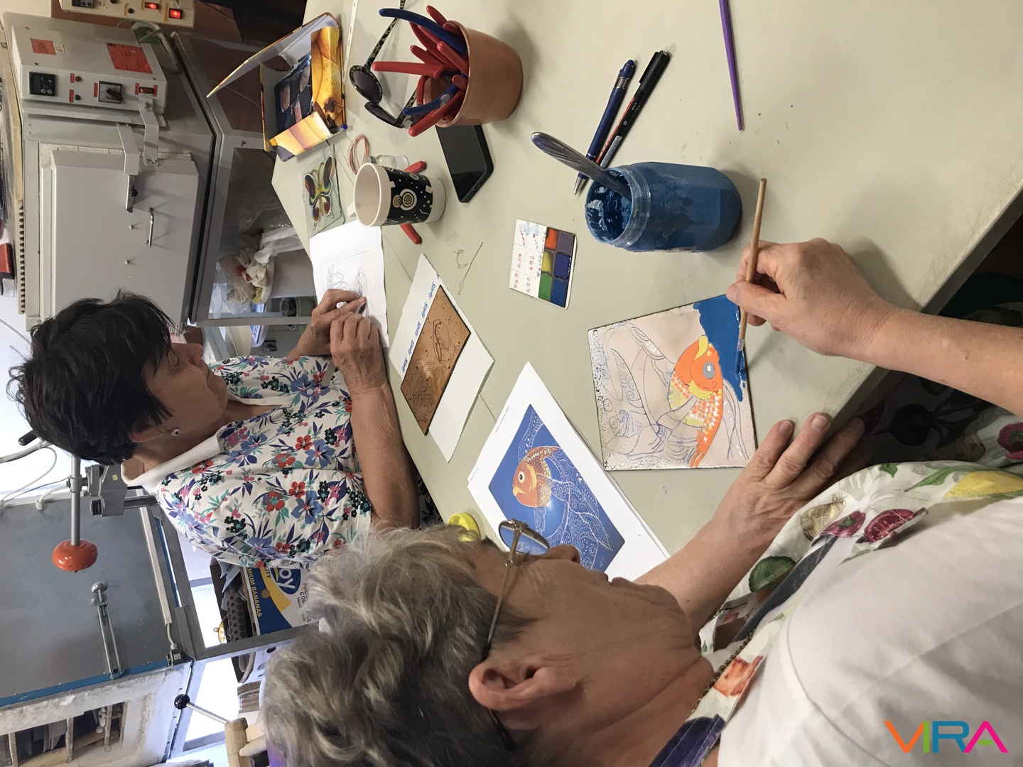 elmerülhettek a festő- és rekeszzománcozás technikáiban. A résztvevők vörösrézalapra dolgoztak, iszapzománccal, karcolással és vörösrézszalagokkal formáltak motívumokat. Az égetés során a 820-840 °C-on megmunkált anyagokból képek, ékszerek és dísztárgyak születtek – egyedi, időtálló alkotások formájában.