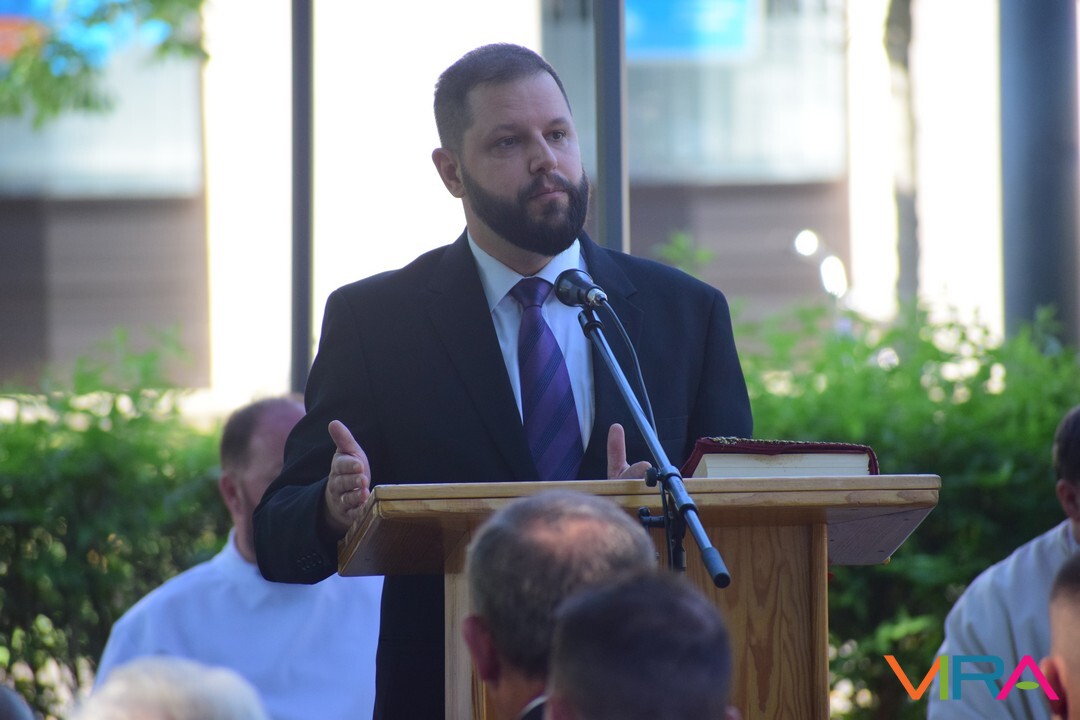 A szentmisét követően a Himnusz eléneklése után Font Sándor a térség országgyűlési képviselője mondta el ünnepi beszédét, melyben kiemelte: „Szent István volt az, aki felismerte hogyha itt meg akarunk maradni, akkor az akkori kor legfejlettebb szellemi irányzatához, a kereszténységhez kell tartoznunk. Ez mint tudjuk a magyarságon belül is óriási vitát váltott ki. A vezetők nem mindegyike értett egyet ezzel az elképzeléssel. Szent István ebben a kérdésben kitartó és konok volt, nem tágított ettől a gondolatától. Elkezdte kiépíteni kapcsolatait, így került egy bajor szerzetes, Asztrik Magyarországra. Az akkori Szilveszter pápához érkezett egy kérés, hogy a honfoglaló magyarok keresztények szeretnének lenni. Erre az akkori szokásjog és hierarchia szerint a pápának is áldását kellett adni. Ennek jele a sokak által ismert Szent Korona, a palást és a jogar, illetve a korona küldésével jóváhagyja, szentesíti a kérést, és ezzel befogadnak bennünket magyarokat a keresztények sorába.”