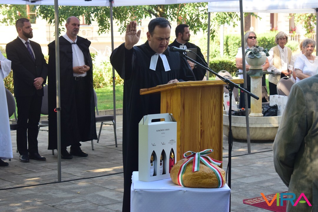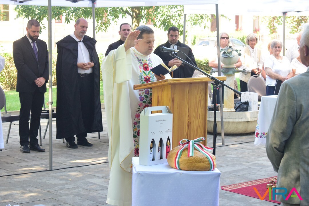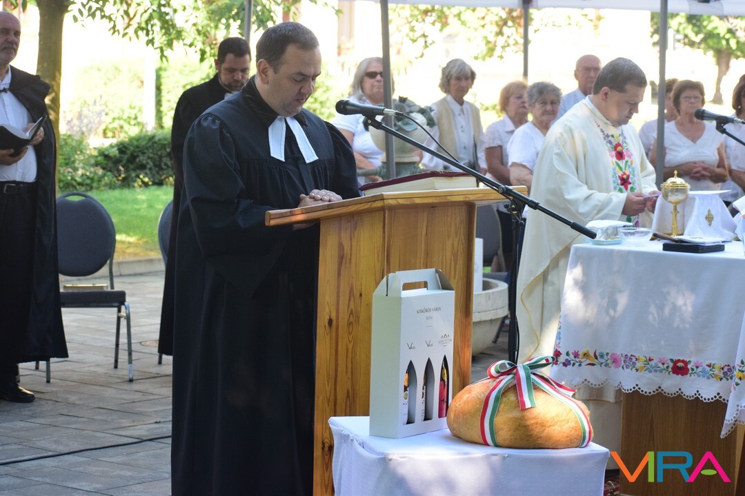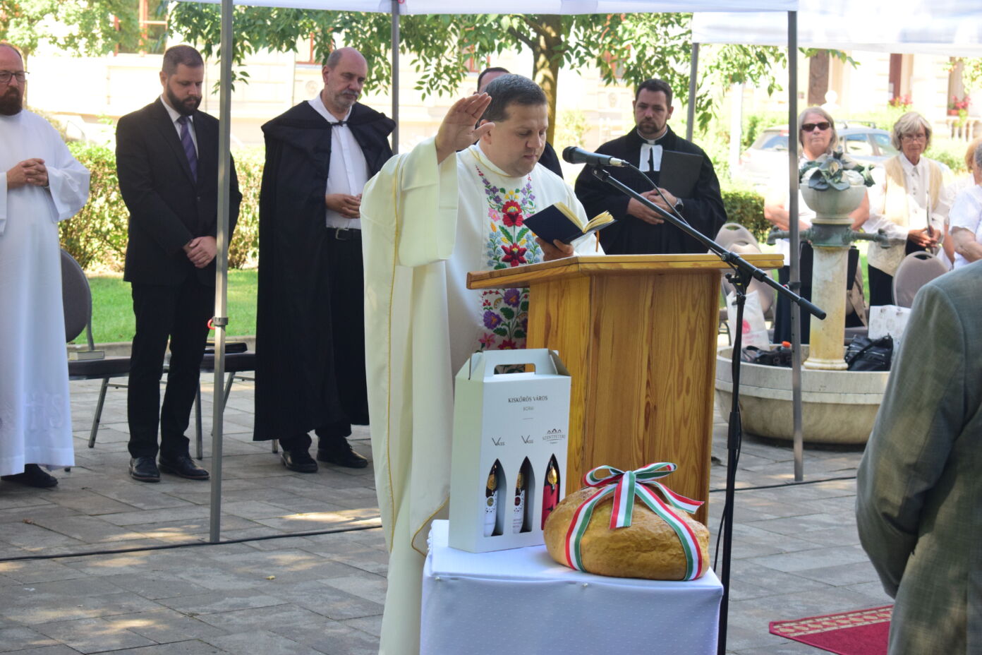 Ezt követően került sor az új kenyér és bor megáldására, melyet a gyülekezetek vezetői külön-külön áldottak meg. Ezután felszelték a megszentelt új kenyeret, melyből a jelenlévők fogyaszthattak, és kitöltötték a az újbort is, mellyel koccintottak a megjelent vendégek. Az esemény a Szózat eléneklésével zárult.