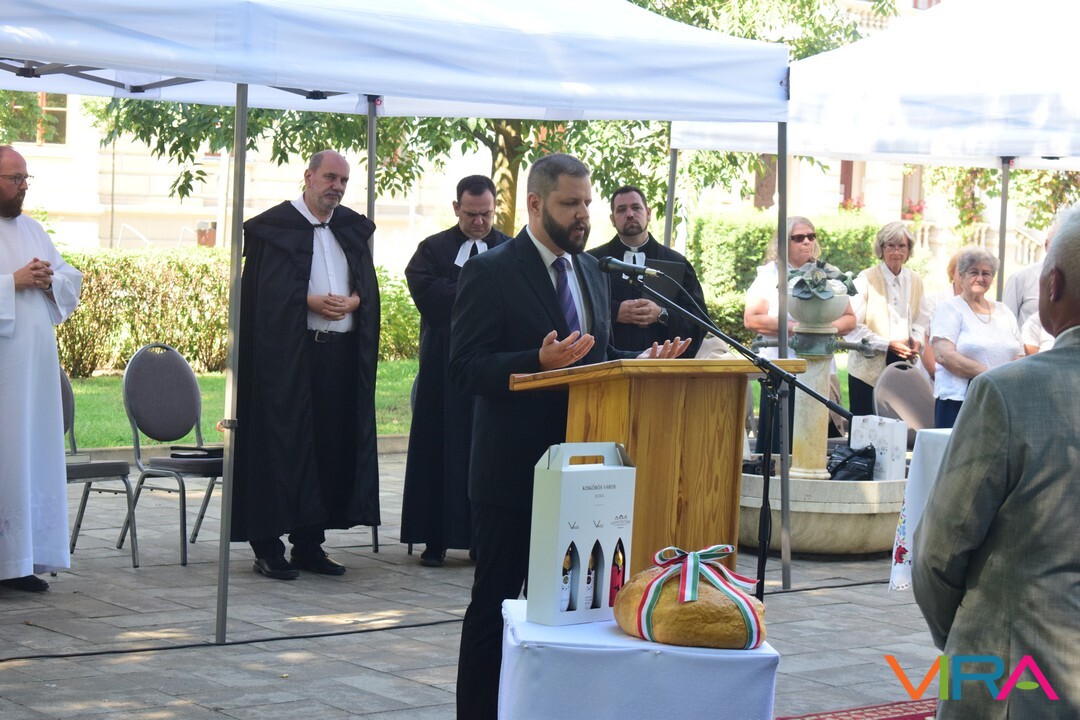 Továbbá megemlítette, hogy a kalocsai érsekség első érseke, azaz Asztrik, aki ezt a koronát elhozta Istvánnak. Kiemelte még, hogy Magyarország születésnapja mindannyiunk születésnapja, és az, hogy mi magyarok tudtunk maradni, a keresztény egyház nélkül nem történhetett volna meg.