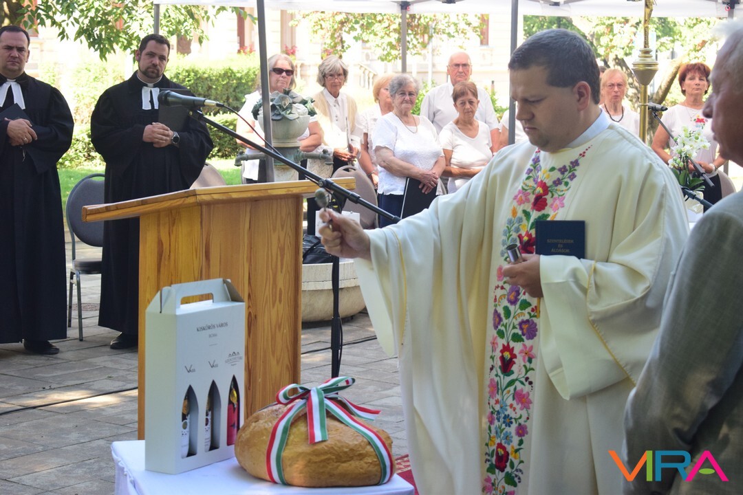 9 órakor kezdődött a már hagyományosnak mondható augusztus 20-ai kültéri szentmise, melyet Tóth Tibor katolikus plébános vezetett. A szentmisén a kiskőrösi egyházközösségek lelkészei is szolgáltak. Az ünnepi gondolatokat pedig Győri Gábor baptista lelkész osztotta meg szentmise közben a megjelentekkel.