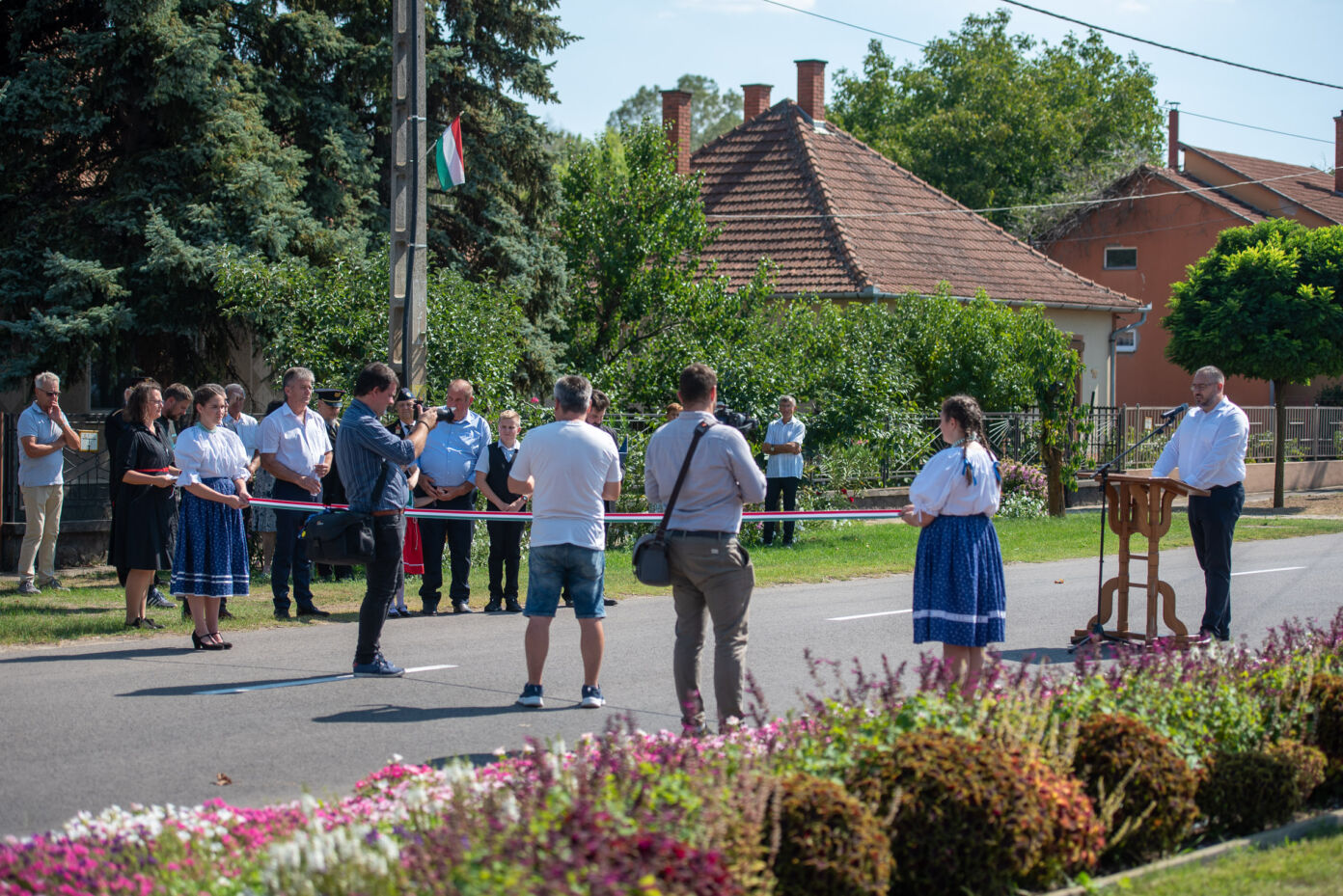 „Ezekből a pályázati forrásokból óvodákat, bölcsődéket, iskolákat fejlesztünk, közterületek, közintézmények, közparkok újulnak meg, csapadékvízcsatornákat, kerékpárutakat, ipari területeket építünk, fejlesztünk, vagy éppen utat fejlesztünk, mint ahogyan a mai napon ennek eredményét adhatjuk át” – fogalmazott Vedelek Norbert, aki Visnyei Miklós polgármesterrel és Bányai Gáborral, a térség országgyűlési képviselőjével közösen adta át a felújított útszakaszt.
