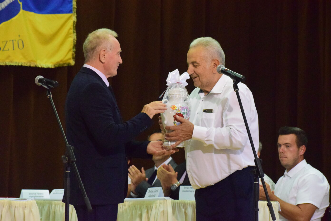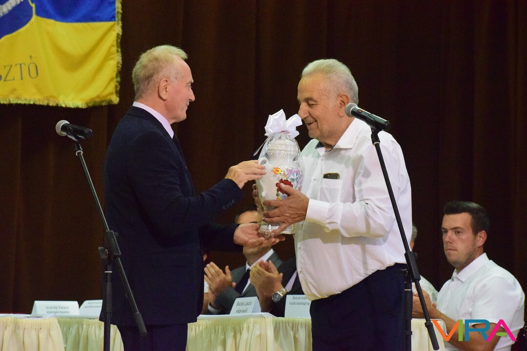 Dr. Palágyi János 50 éve szolgálja Akasztón az I. számú háziorvosi körzet betegeit. A laudációs szövegben hangzott el: Dr. Palágyi János neve egyet jelent a hivatástudattal, az emberséggel és a közösség iránti önzetlen elköteleződéssel. Öt évtized – fél évszázad – szolgálat áll mögötte, amelynek során nemcsak orvosi szakértelmével, hanem személyes példamutatásával, emberségével és közéleti aktivitásával is gazdagította Akasztó települését. 1975 óta, vagyis immár 50 éve szolgálja az I. számú háziorvosi körzet betegeit folyamatosan, megszakítás nélkül, mindig ugyanazzal az odaadással és szakmai igényességgel. Munkáját kezdetektől fogva a legmagasabb színvonalon végezte, miközben folyamatosan képezte magát, hogy lépést tartson az orvostudomány fejlődésével. Ez a töretlen fejlődési vágy és szakmai kíváncsiság tette lehetővé, hogy generációk sokaságát lássa el a gyógyításon túl megnyugtató szavakkal és emberséges törődéssel.