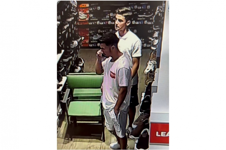 A gyanú szerint a fotón/videón látható férfiak 2025. július 14-én délután az egyik kecskeméti üzletből, az áruvédelmi eszközök eltávolításával elloptak két sportcipőt.