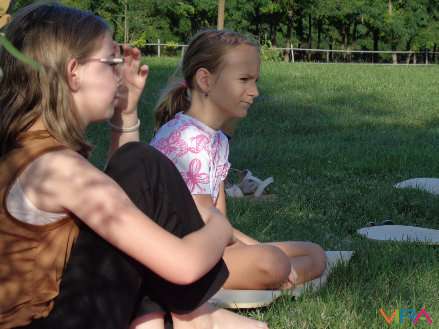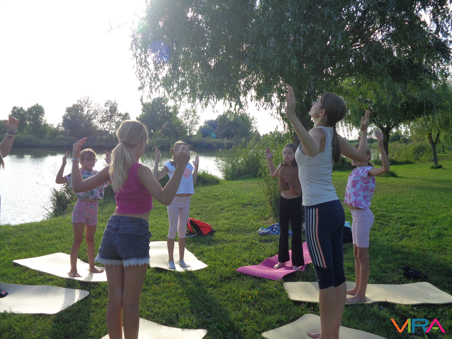 A foglalkozáson nyolc gyermek vett részt, akik először Szlovákné Hajnal Csilla vezetésével tini jógát gyakoroltak. A mozgás és a légzőgyakorlatok mellett meditációval, pozitív megerősítésekkel és mantrákkal segítették a belső nyugalom megteremtését.