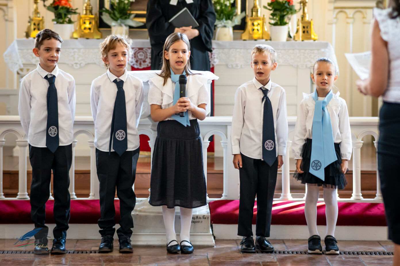 Az igehirdetés után helyükön fennállva vették Isten áldását az általános iskola elsősei, majd a középiskola új diákjai, az általános könyörgő imádságot pedig a lelkész mellett a KEVI főigazgatója és tagintézmény-igazgatói olvasták.