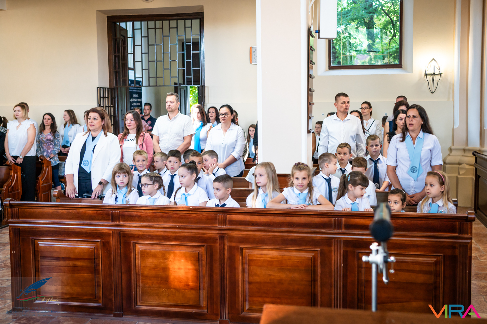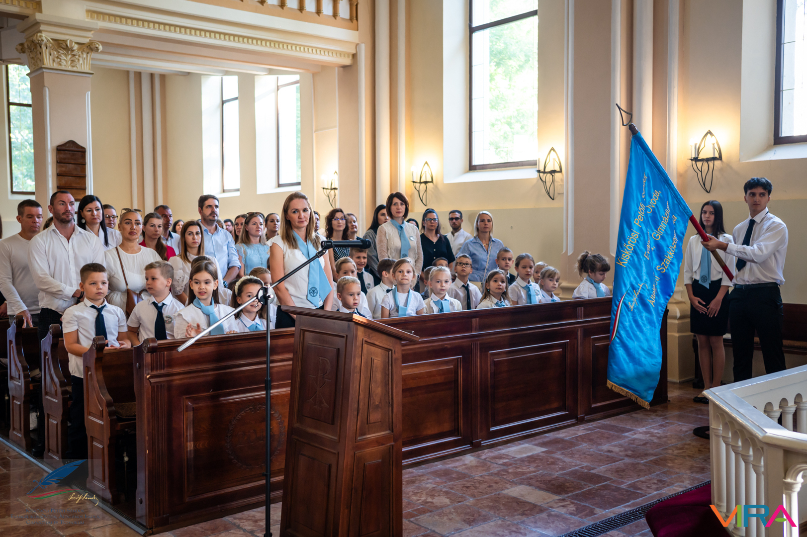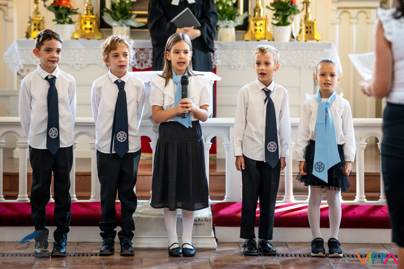 Az igehirdetés után helyükön fennállva vették Isten áldását az általános iskola elsősei, majd a középiskola új diákjai, az általános könyörgő imádságot pedig a lelkész mellett a KEVI főigazgatója és tagintézmény-igazgatói olvasták.