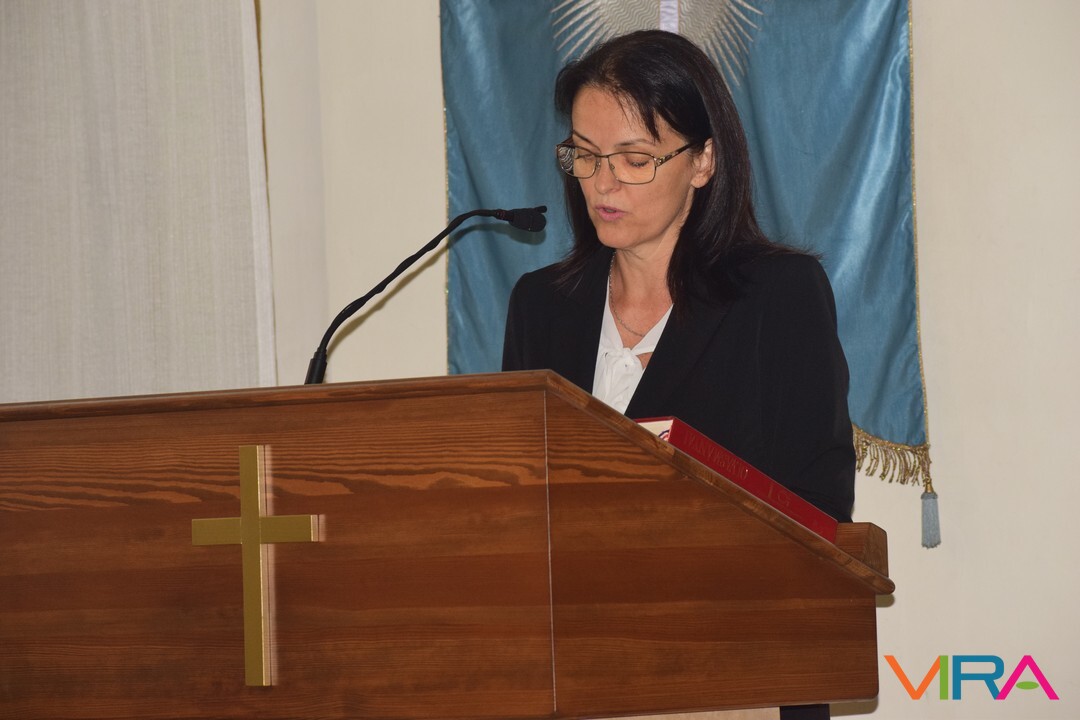 Az évnyitó ünnepség befejezéseként Ujváriné Lengyel Éva a Kunszt József Katolikus Általános Iskola igazgatója mondta el ünnepi gondolatait, melynek végén hivatalosan is megnyitotta a 2025-2026-os tanévet. Beszédében kitért arra, hogy sok minden változott az iskolában, kívül-belül megújult, köszönhetően a Fenntartónak. Szólt még a leendő elsősökhöz és a most utolsó évüket kezdő nyolcadikosokhoz is. Köszönetet mondott mindazoknak, akik eddig is segítették és segítik az iskola munkáját.