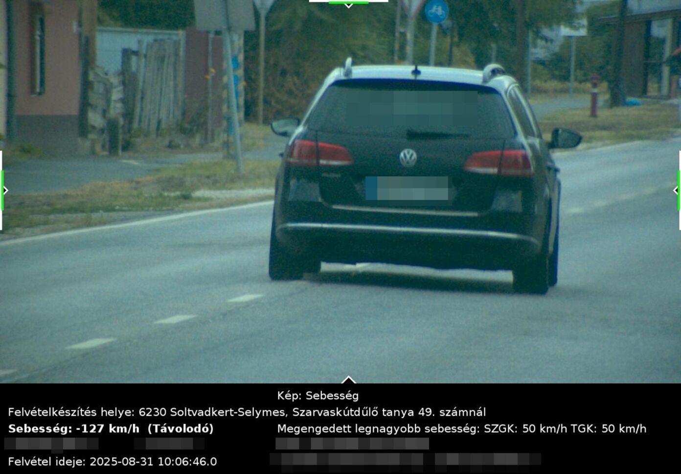 Az elmúlt héten a megengedett sebességhatárokat regisztráltan 2392-en lépték át. A szabálytalankodóknak legalább 50 ezer forint közigazgatási bírságot kell fizetniük, a kiszabható büntetés összegének maximuma pedig 468 ezer forint. Ennyit, a legmagasabb összeget kell fizetnie annak a sofőrnek, aki Soltvadkertnél 50 helyett 127 km/h-val közlekedett.
