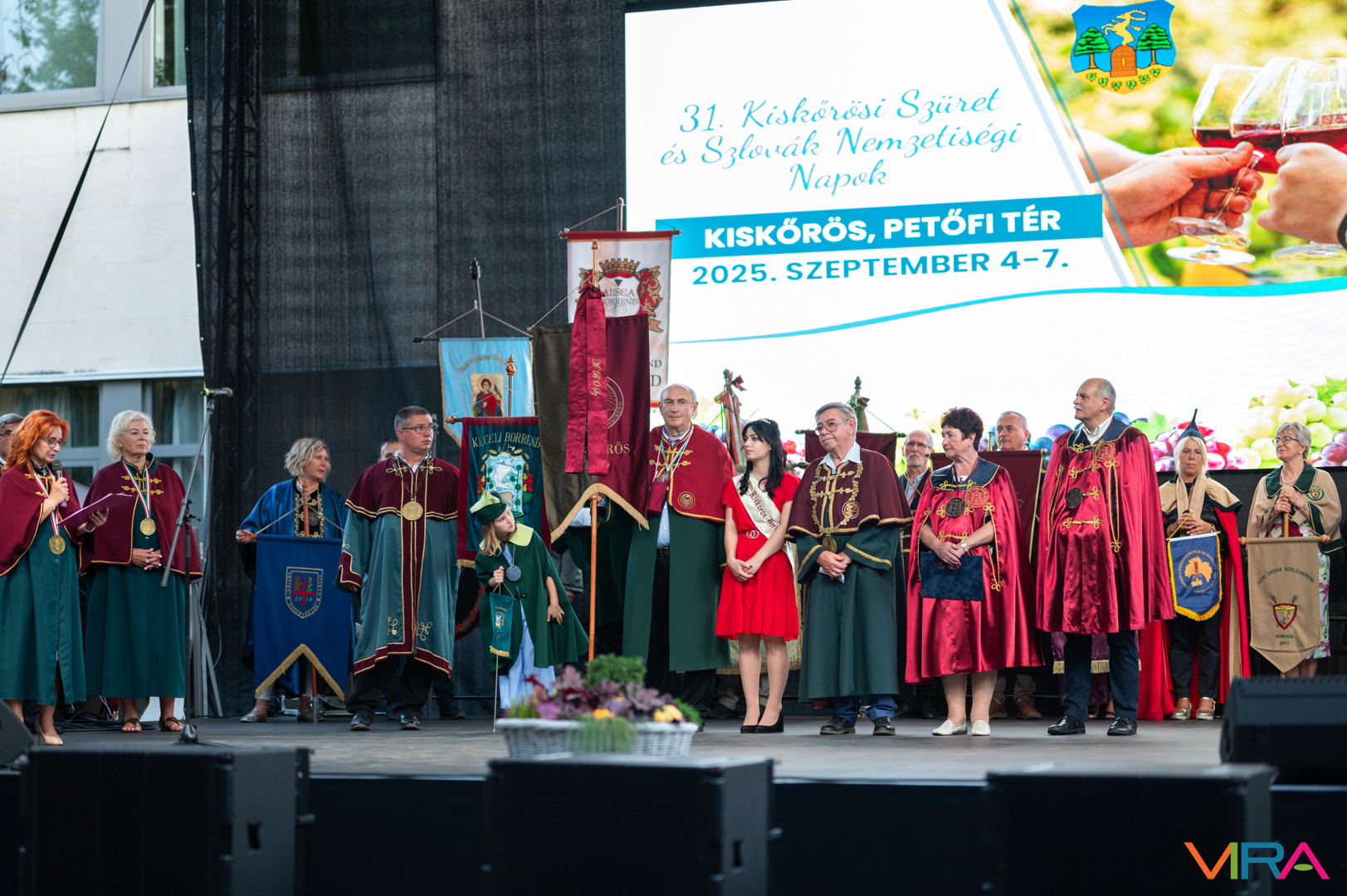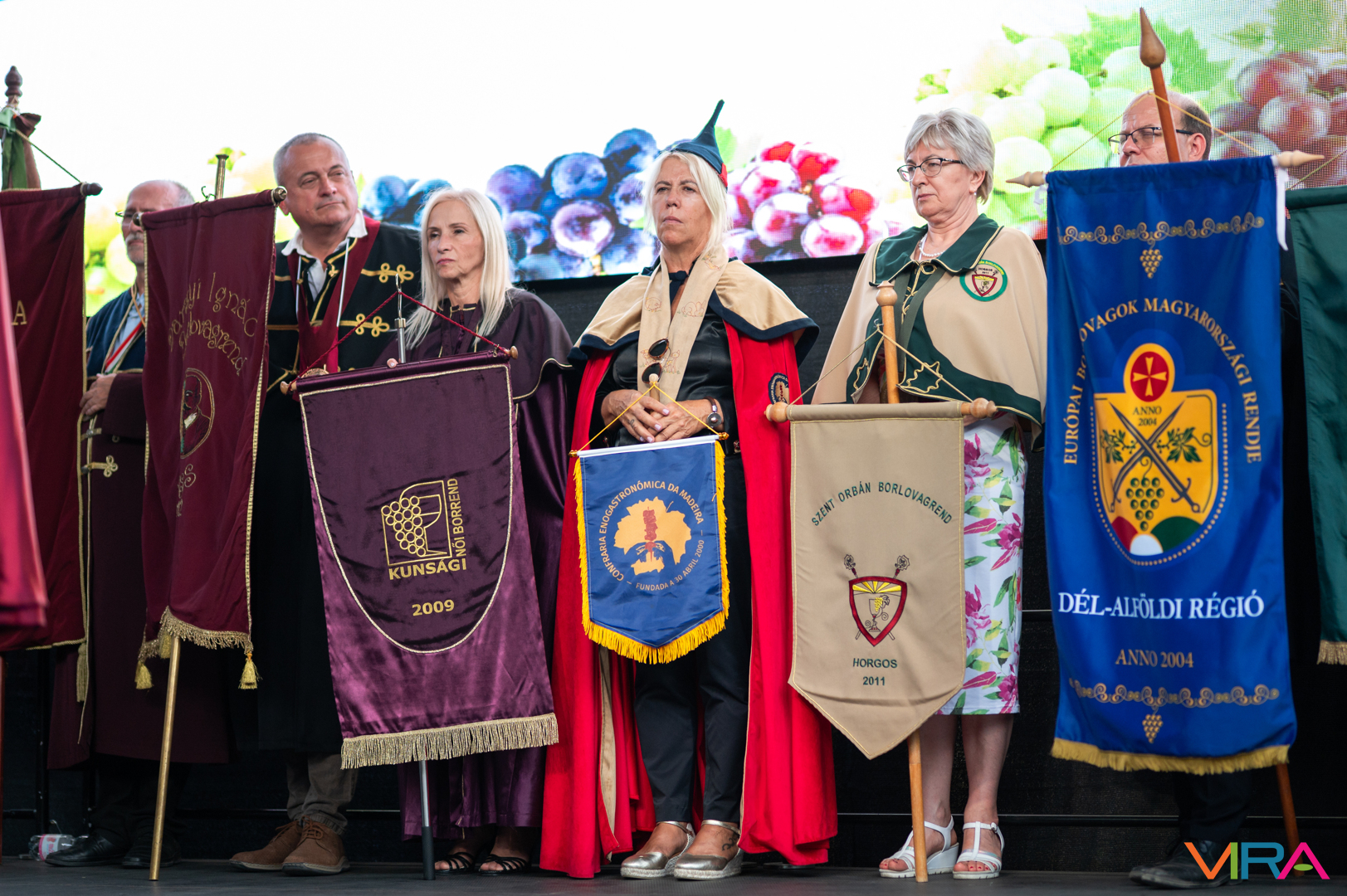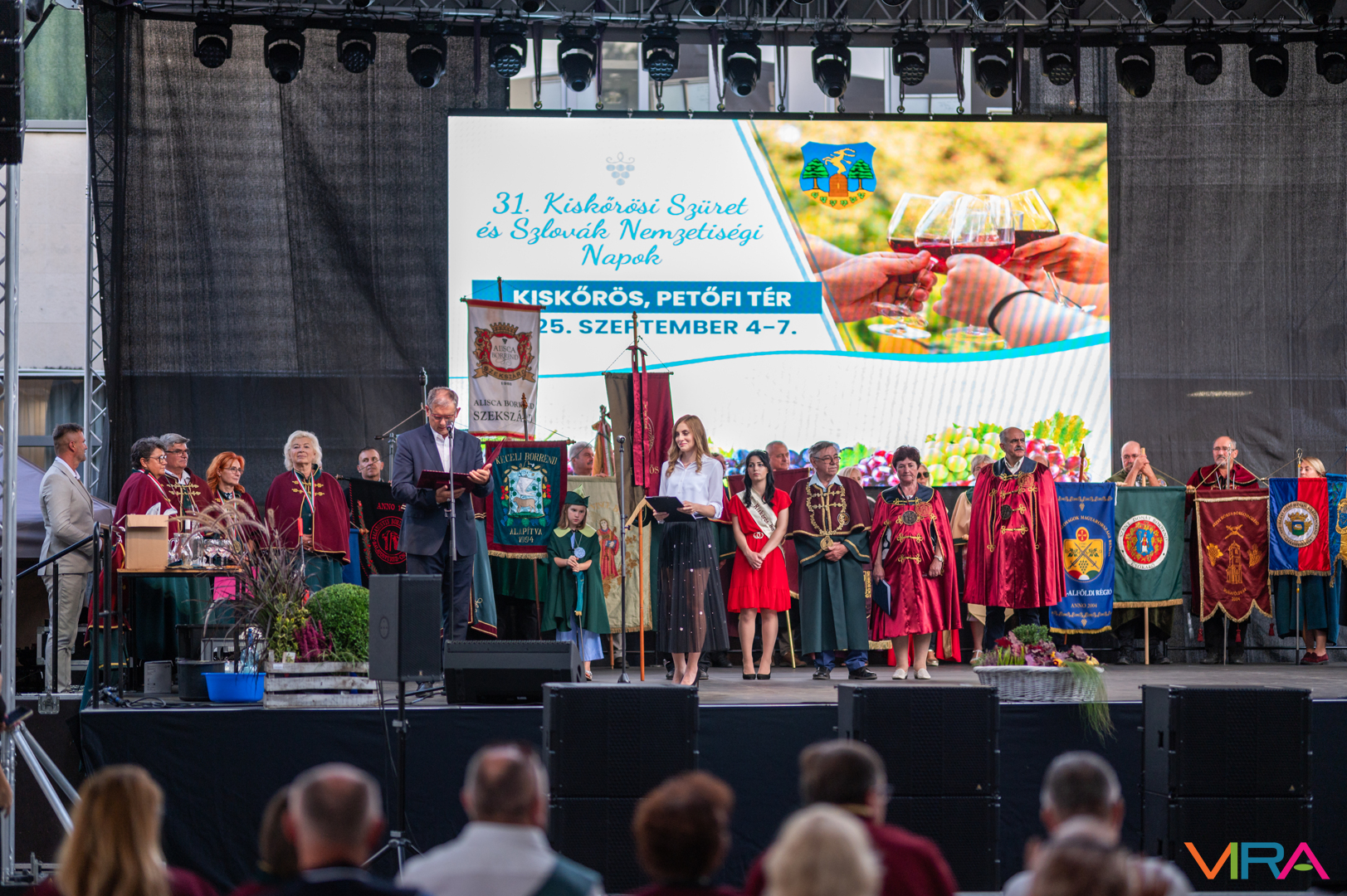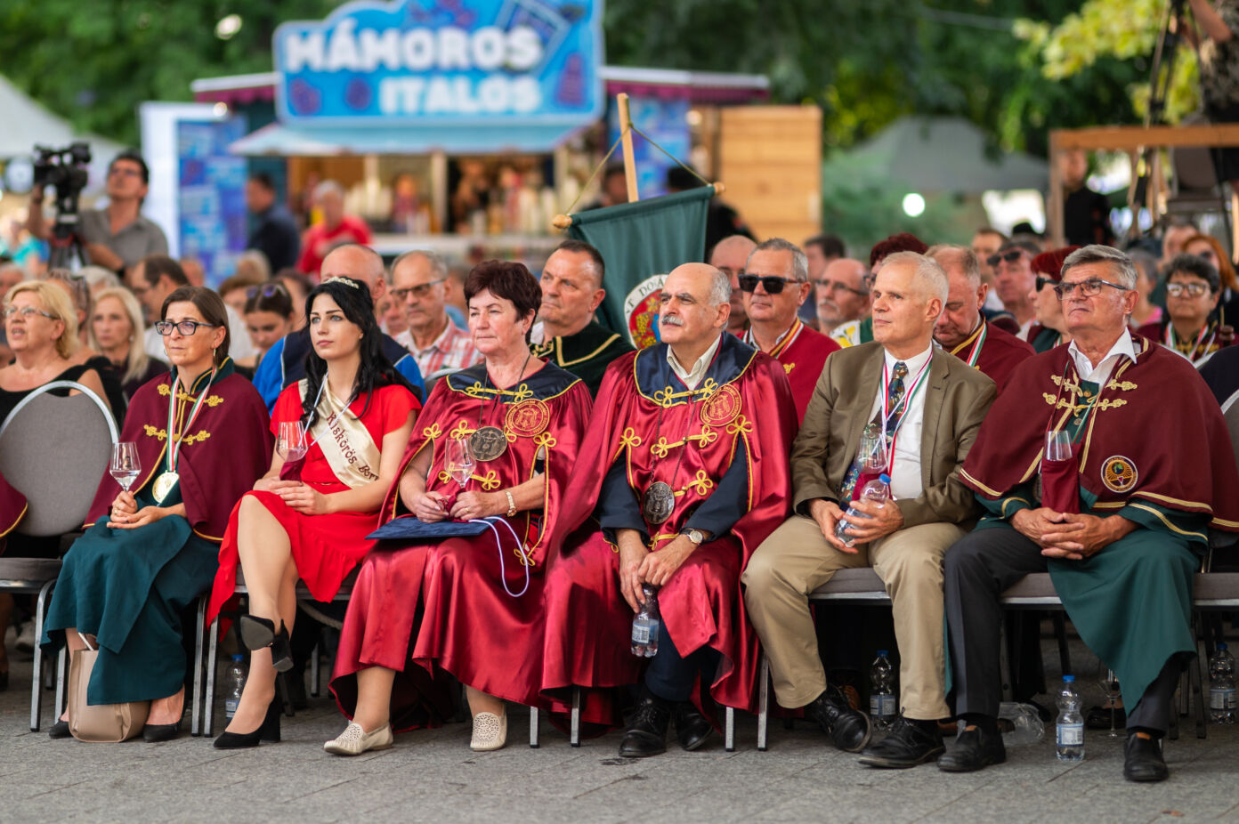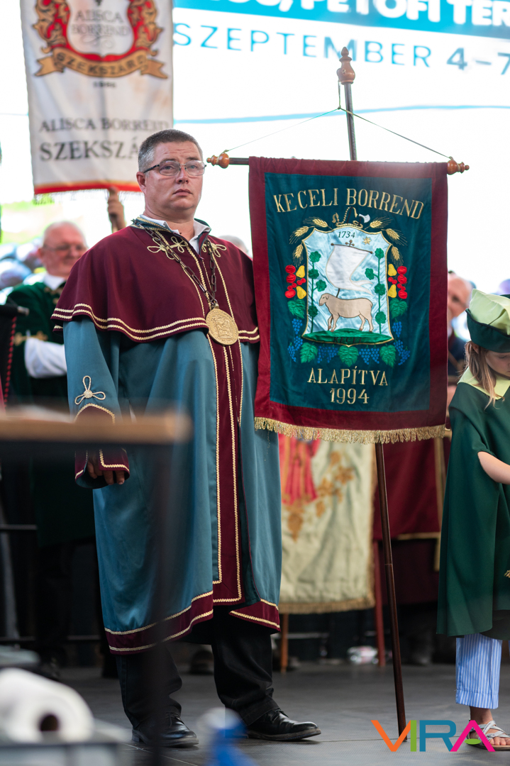 A közönség sorai között jelen voltak a Kiskőrösi Gondűző Borlovagrend szakmai konferenciájának résztvevői, akik a megnyitó után az avatási ceremónián vettek részt.