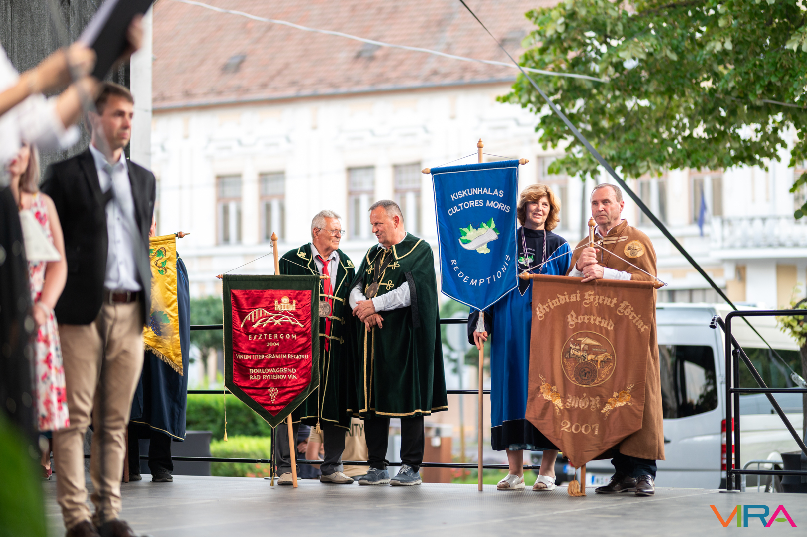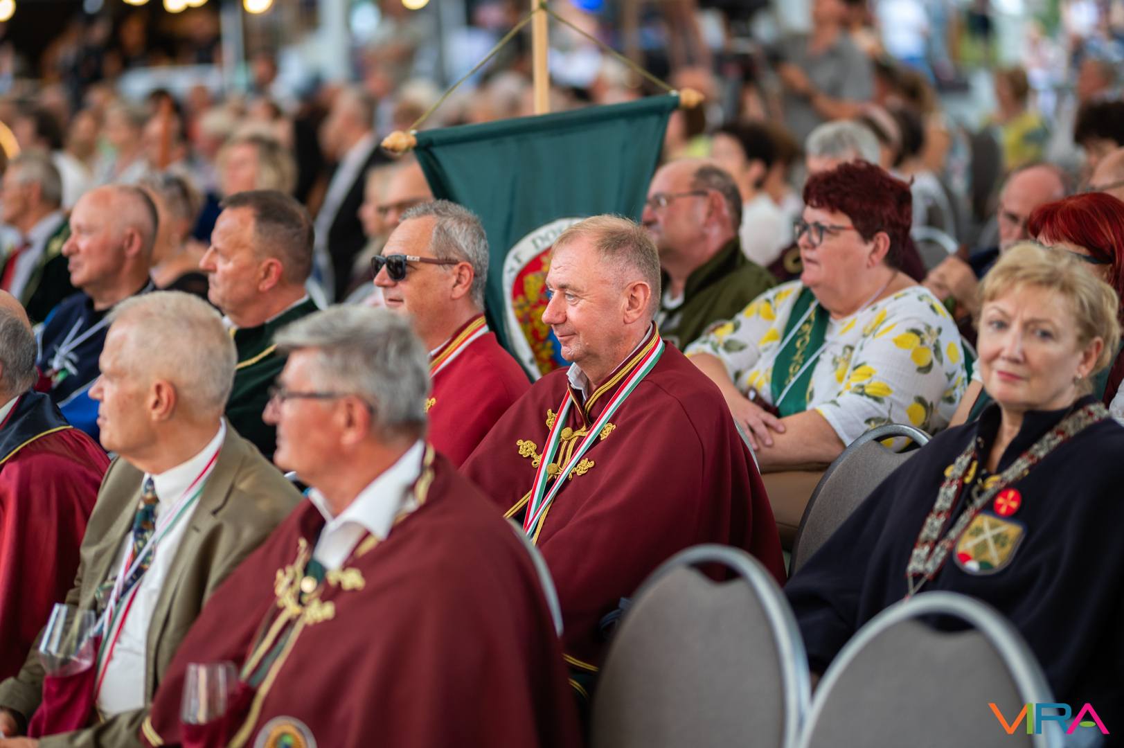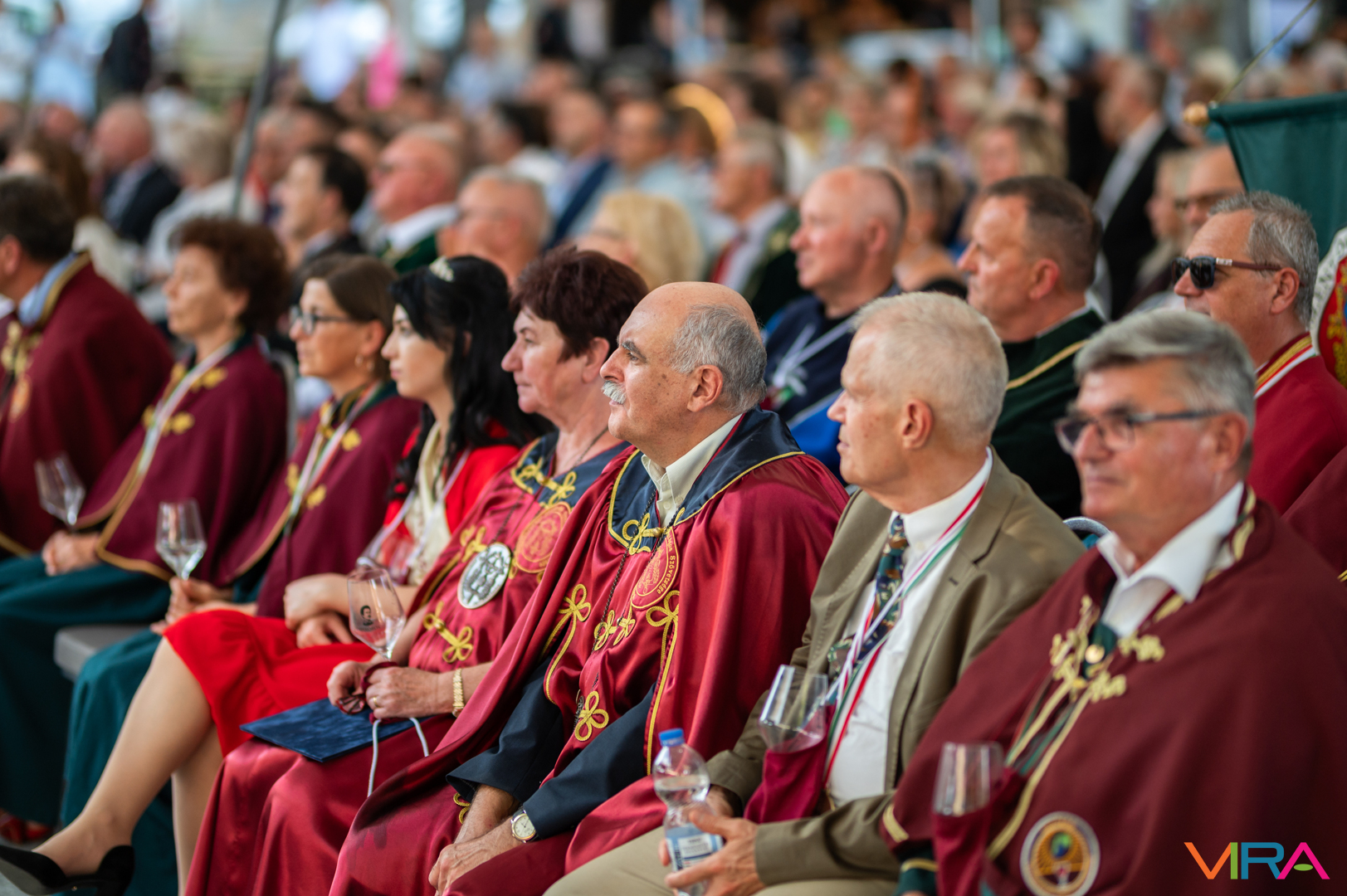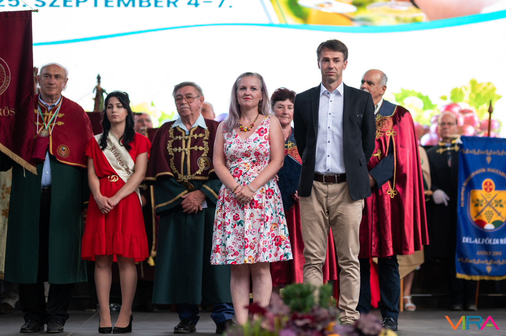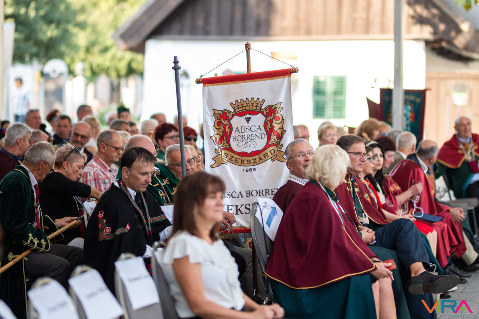 A közönség sorai között jelen voltak a Kiskőrösi Gondűző Borlovagrend szakmai konferenciájának résztvevői, akik a megnyitó után az avatási ceremónián vettek részt.