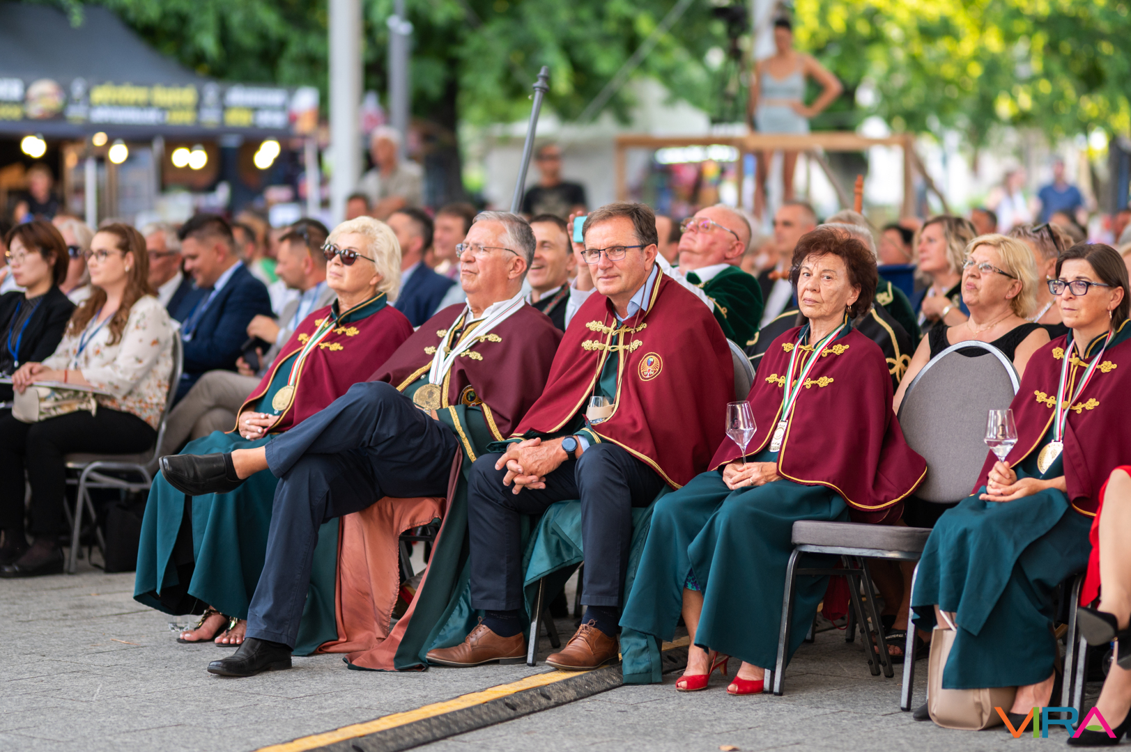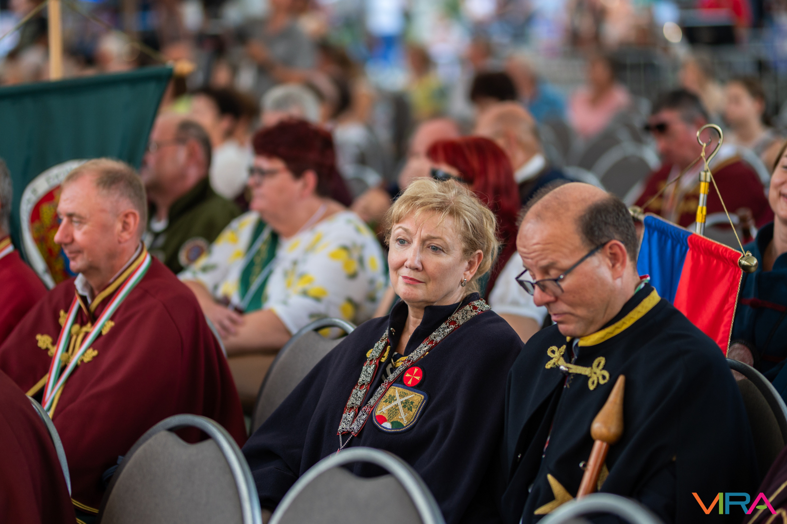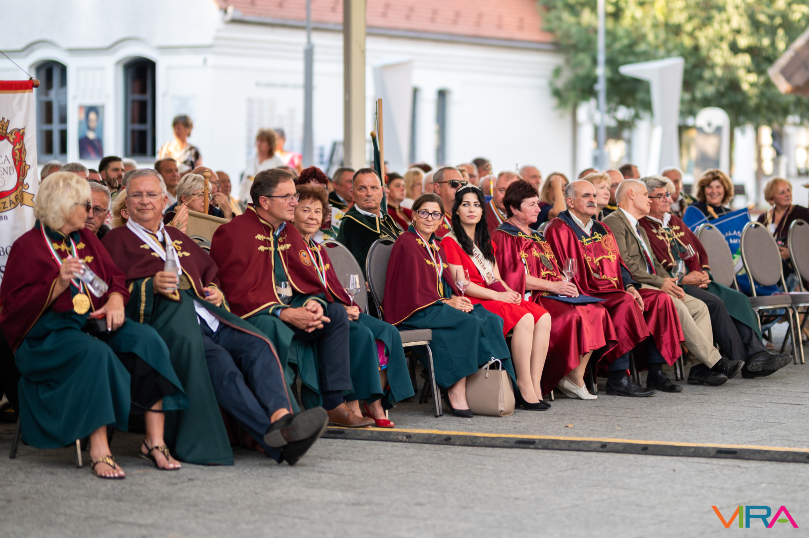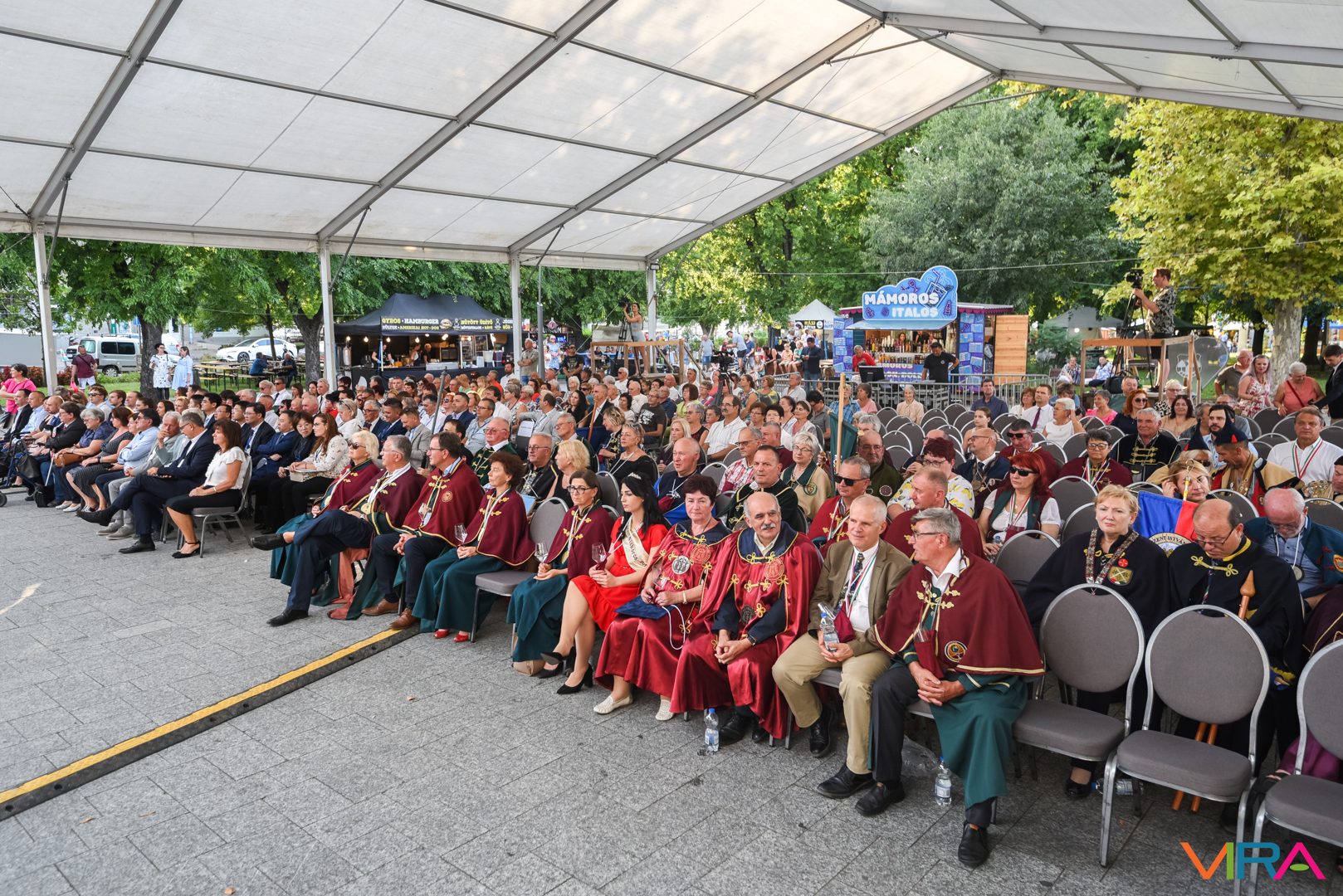 A közönség sorai között jelen voltak a Kiskőrösi Gondűző Borlovagrend szakmai konferenciájának résztvevői, akik a megnyitó után az avatási ceremónián vettek részt.