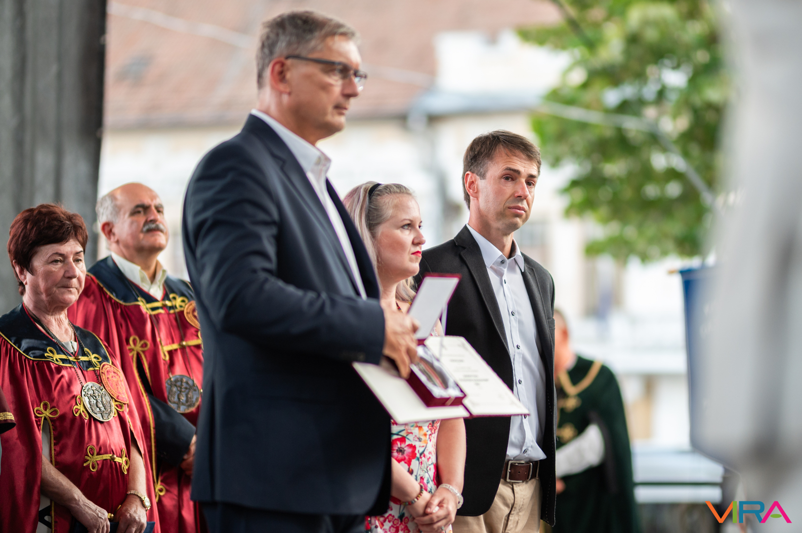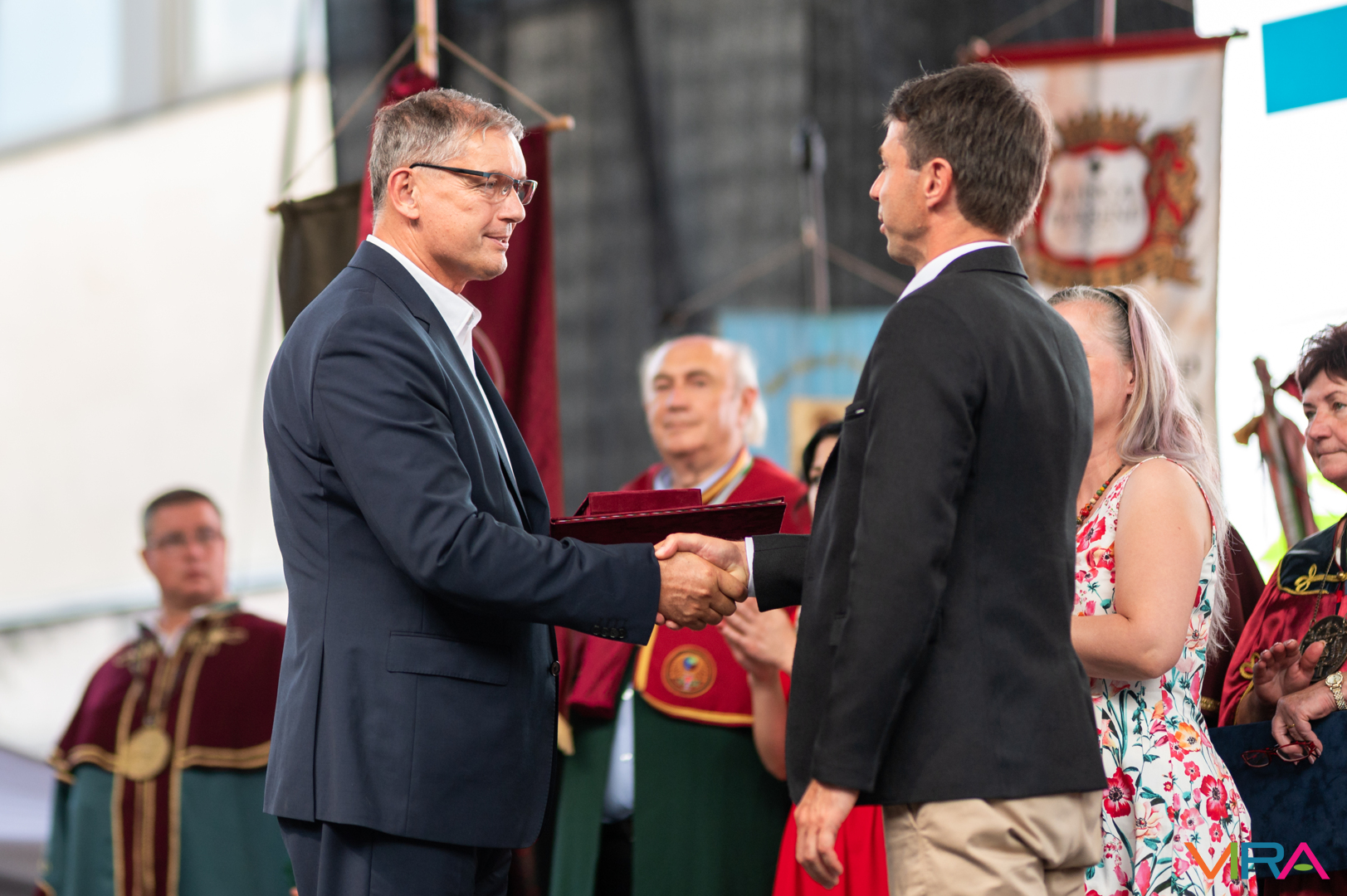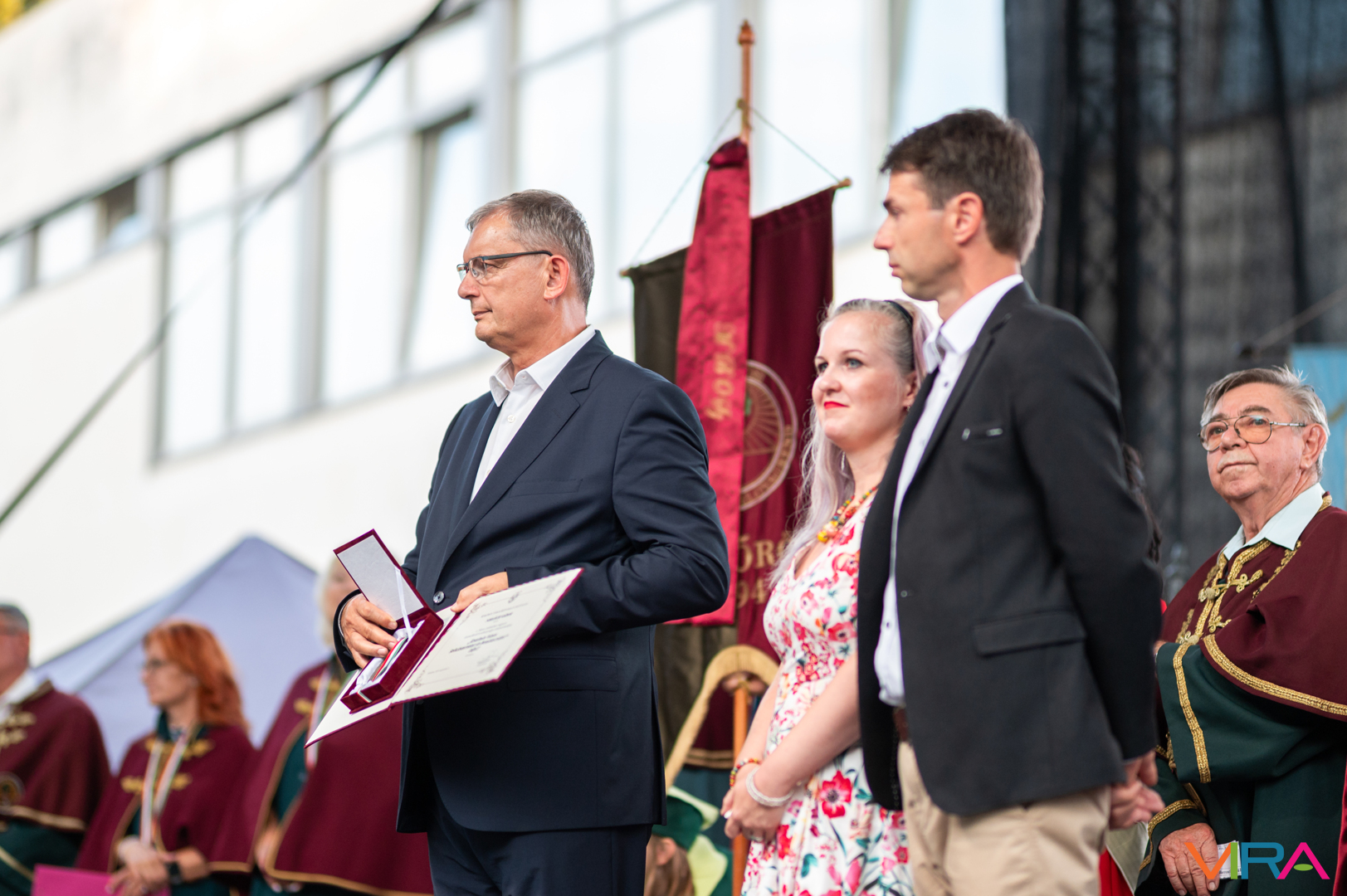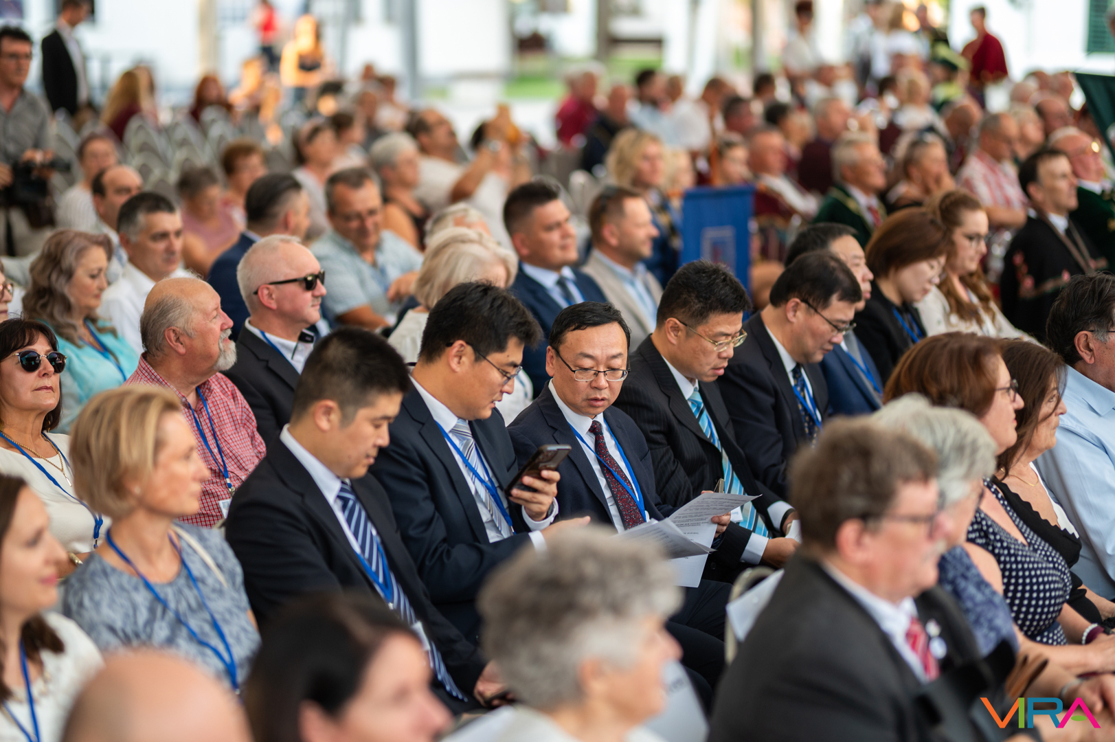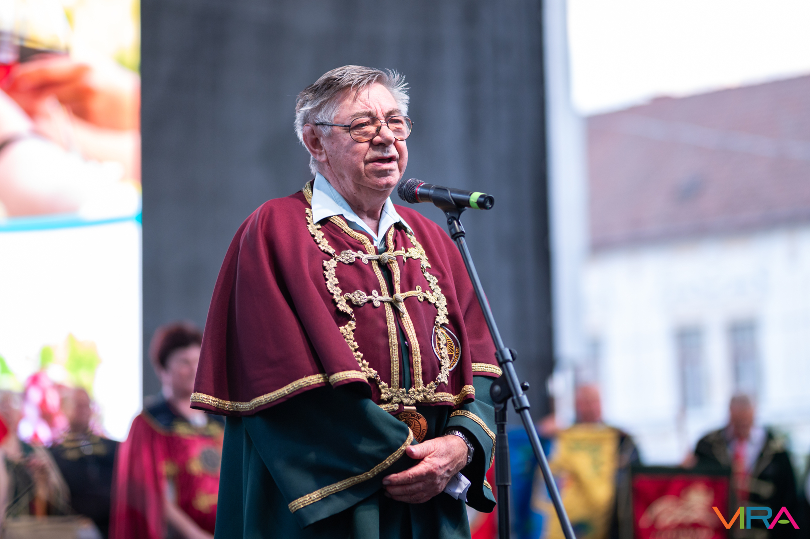 A közönség sorai között jelen voltak a Kiskőrösi Gondűző Borlovagrend szakmai konferenciájának résztvevői, akik a megnyitó után az avatási ceremónián vettek részt.