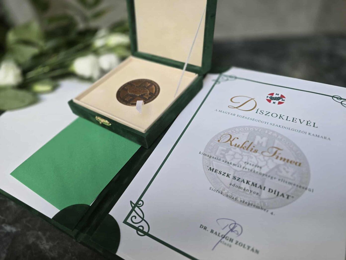 2025. szeptember 4-én Siófokon, a MESZK (Magyar Egészségügyi Szakdolgozói Kamara) XII. Szakdolgozói Tudományos Kongresszusán adták át a rangos MESZK Szakmai Díjakat, melyet vármegyénként 1 szakember vehetett át. A díjat olyan kamarai tagoknak ítélik oda, akik kiemelkedő szakmai munkát végeznek az egészség megőrzése, betegségek megelőzése és a betegellátás terén.