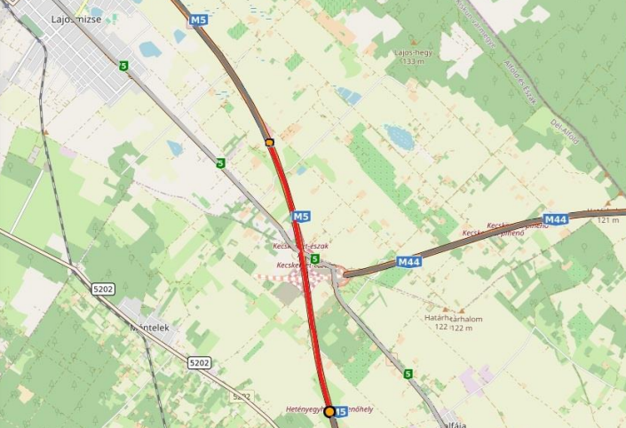 Az Építési és Közlekedési Minisztérium ezúton tájékoztatja a közlekedőket, hogy az M5 autópályán, Kecskemét térségében 2025. szeptember 16. (kedd) és 2025. szeptember 19. (péntek) napokon, a 71+500 – 76+500 km. között forgalomkorlátozásra kell számítani.