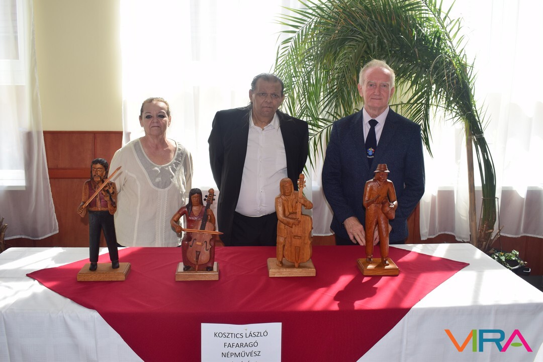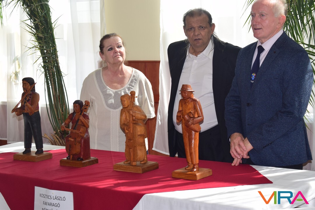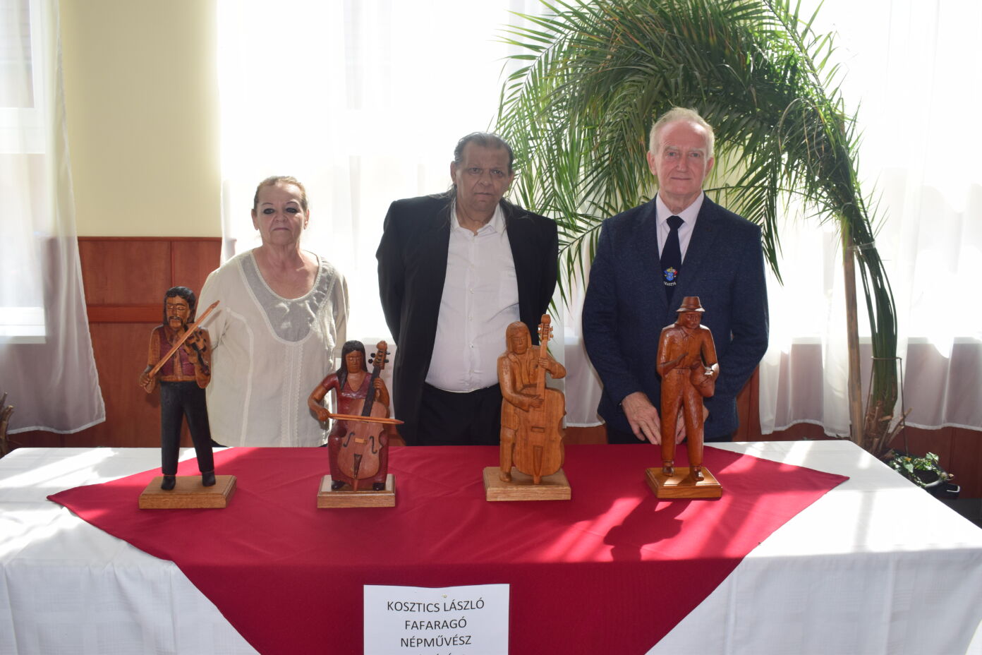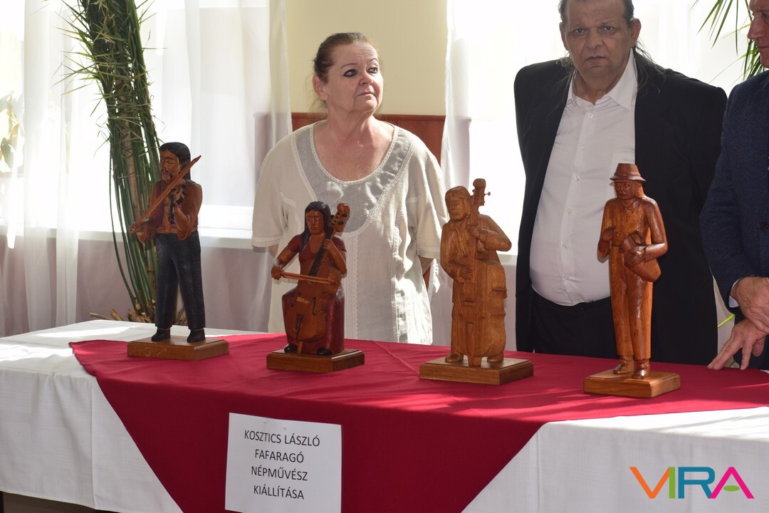 A szombati programok 13:00-kor a Faluházban kezdődtek, ahol kiállításmegnyitó vette kezdetét. Kosztics László Akasztón élő fafaragó és szobrászművész alkotásaiból nyílt tárlat, aki 1958-ban született a dél-baranyai Ilocskán, majd Lapáncsára költöztek. Első kiállítását a pécsi Cigány Kulturális és Közművelődési Egyesület rendezte meg a pécsi Apáczai Csere János Nevelési Központban. A közönség köreiben nagy sikert arattak az alkotásai: két évvel később, bibliai témájú szobrait választották bemutatásra a II. János Pál pápa látogatásának tiszteletére rendezett kiállításon Pécsett. 1992-ben elnyerte a Népművészet Ifjú Mestere címet, majd létrehozta a Békésebb Világért Alapítványt. Számos egyéni és csoportos kiállítása volt Magyarországon és néhány alkalommal külföldön is szerepelt munkáival. Szobrai többek között megtalálhatók a Néprajzi Múzeum egyházi és cigány gyűjteményeiben, az Erdős Kamill Múzeumban, Pécsett, valamint a nagykanizsai cigány néprajzi gyűjteményben. Büszkeségként tartja számon a látássérültek és mozgássérültek intézményeiben lakó gyermekek számára szervezett tapintható és körüljárható kiállításokat.