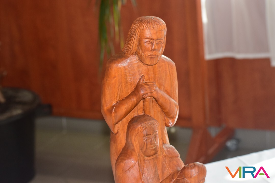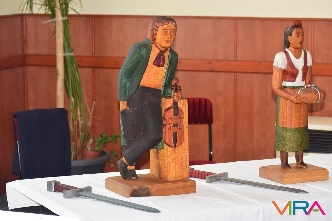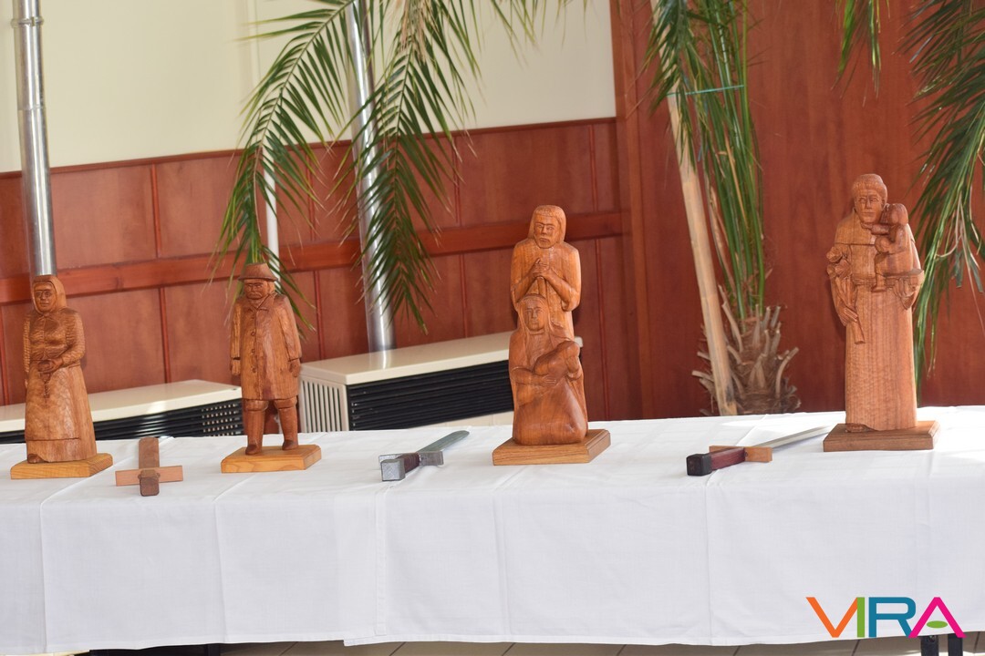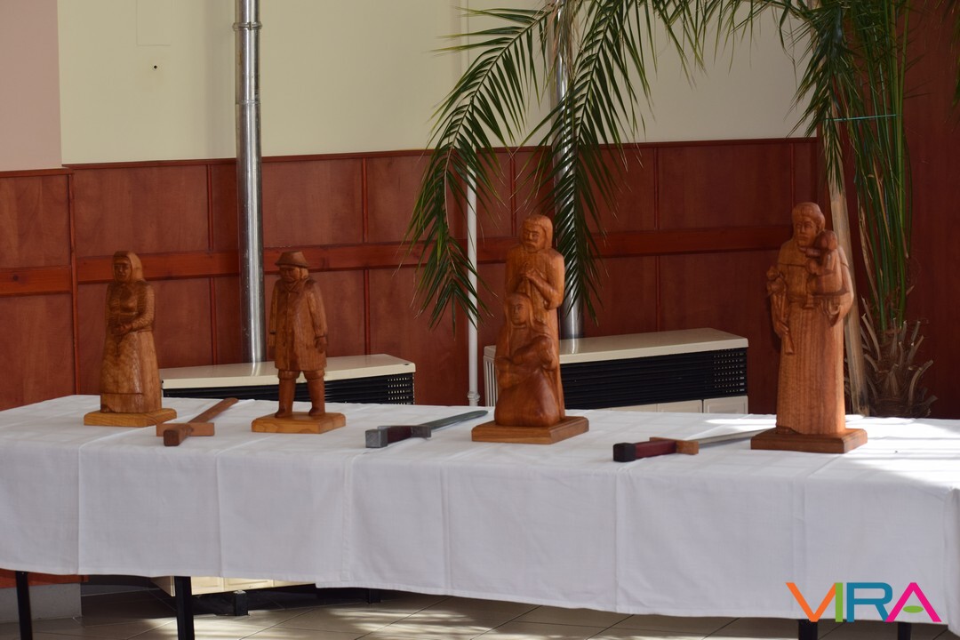 A szombati programok 13:00-kor a Faluházban kezdődtek, ahol kiállításmegnyitó vette kezdetét. Kosztics László Akasztón élő fafaragó és szobrászművész alkotásaiból nyílt tárlat, aki 1958-ban született a dél-baranyai Ilocskán, majd Lapáncsára költöztek. Első kiállítását a pécsi Cigány Kulturális és Közművelődési Egyesület rendezte meg a pécsi Apáczai Csere János Nevelési Központban. A közönség köreiben nagy sikert arattak az alkotásai: két évvel később, bibliai témájú szobrait választották bemutatásra a II. János Pál pápa látogatásának tiszteletére rendezett kiállításon Pécsett. 1992-ben elnyerte a Népművészet Ifjú Mestere címet, majd létrehozta a Békésebb Világért Alapítványt. Számos egyéni és csoportos kiállítása volt Magyarországon és néhány alkalommal külföldön is szerepelt munkáival. Szobrai többek között megtalálhatók a Néprajzi Múzeum egyházi és cigány gyűjteményeiben, az Erdős Kamill Múzeumban, Pécsett, valamint a nagykanizsai cigány néprajzi gyűjteményben. Büszkeségként tartja számon a látássérültek és mozgássérültek intézményeiben lakó gyermekek számára szervezett tapintható és körüljárható kiállításokat.