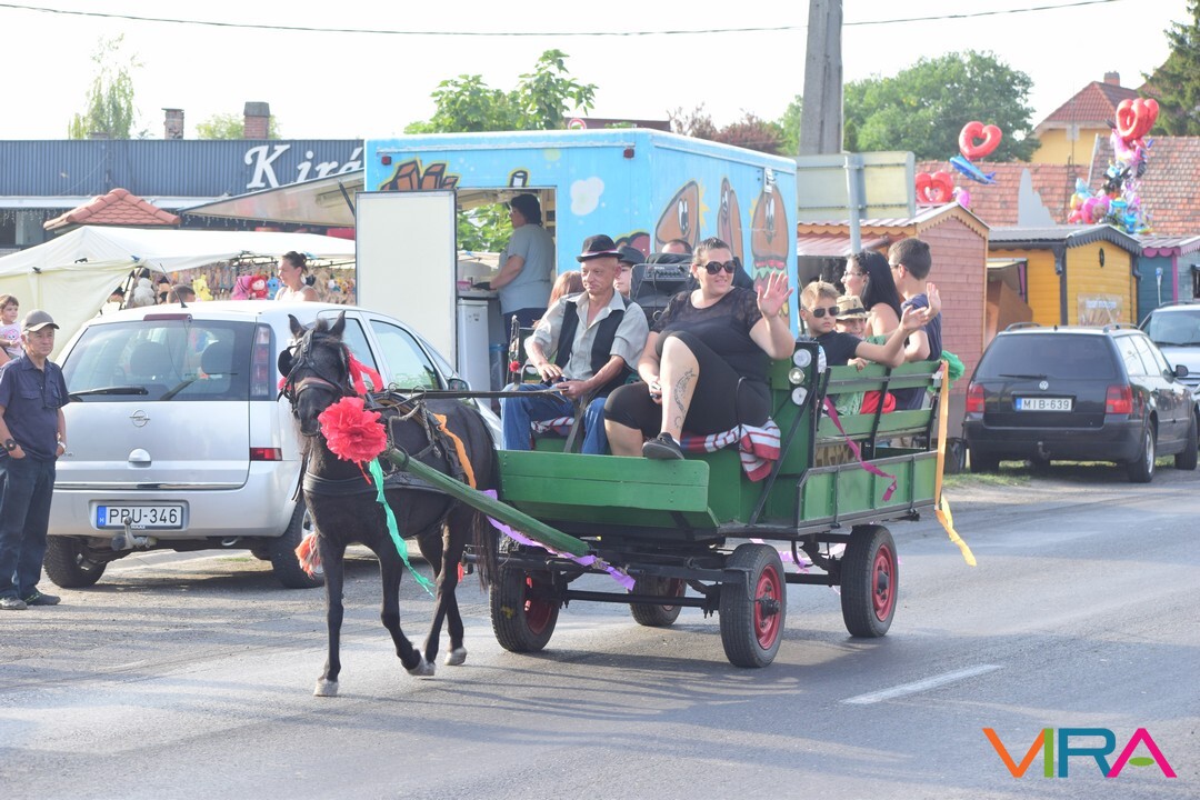 14 órakor kezdődött a nap egyik leglátványosabb része, a szüreti felvonulás, valamint a megnyitó műsor a Faluház előtt, melyen beszédet mondott Suhajda Antal polgármester. Közreműködött az Akasztói Vízkereszt Citerazenekar és a Szikes Néptáncegyüttes, valamint a szokásoknak megfelelően megtörtént a kisbíró (Balla Endre) kidobolása és beszéde is.