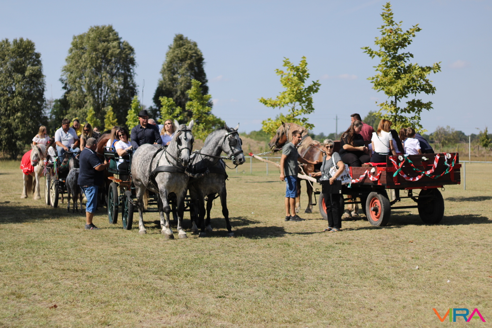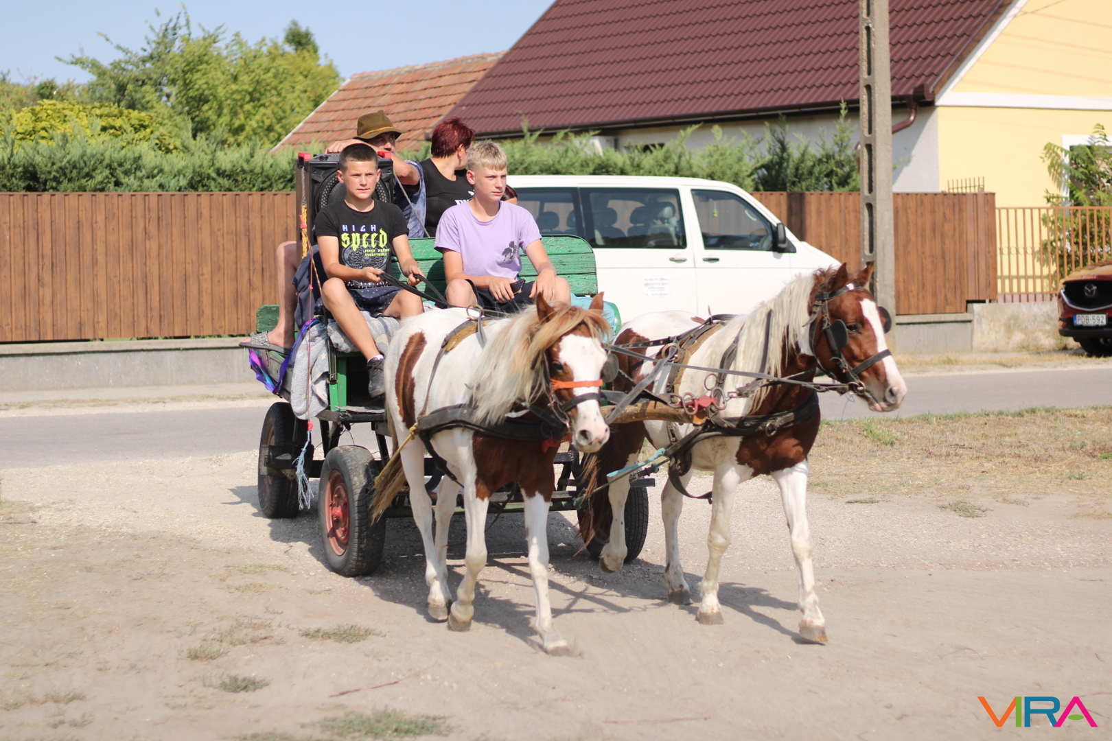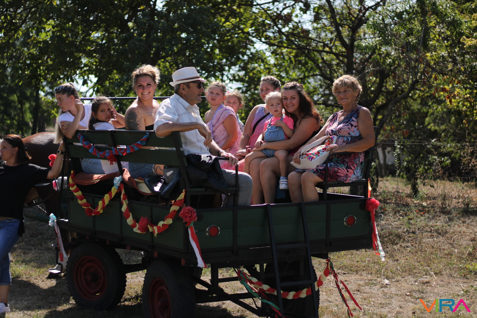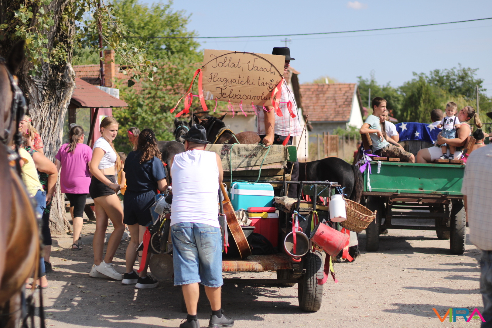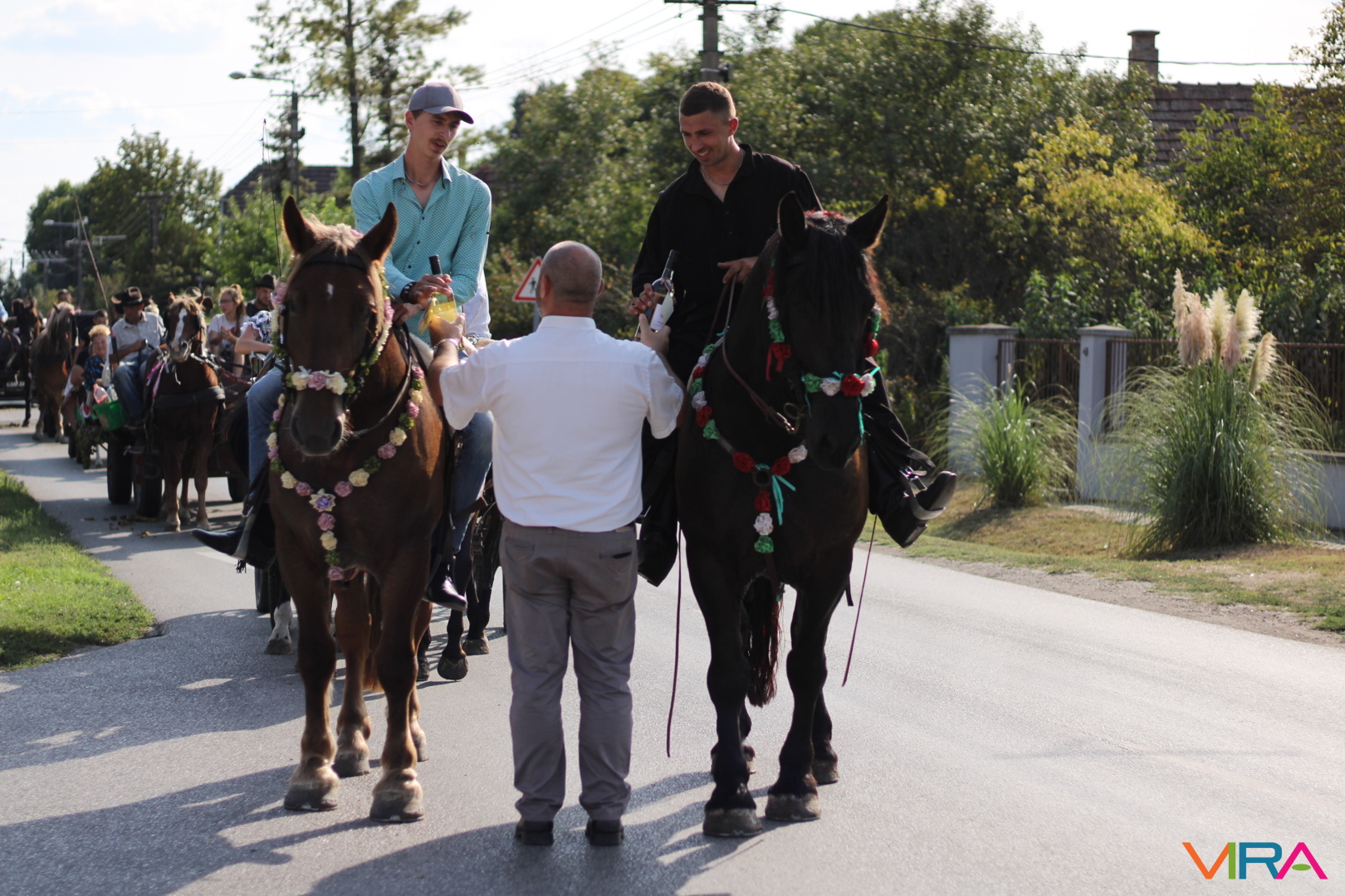 A település focipályáján gyülekeztek a lelkes lovasok, akik szebbnél szebb fogatokkal érkezve várták sorukat a minden évben megrendezésre kerülő szüreti felvonulásra. Szerencsére a menetet kellemes idő kísérte végig, így az útközben megszomjazó lovasokat és barátaikat frissítő pontok várták, ahol finomabbnál finomabb süteményekkel és üdítőkkel vendégelték meg a helyi asszonyok. A menetet a polgárőrség és a rendőrség biztosította, hogy mindenki biztonságban vonulhasson végig a község utcáin. A hangos zeneszó mellett a kisbíró hangja is felcsendült, furfangosan elmesélte az elmúlt év eseményeit, szórakoztatva a falu népét. A körmenet végén minden résztvevő egy-egy üveg bort és emléklapot kapott a szervezők hálájának jeléül.