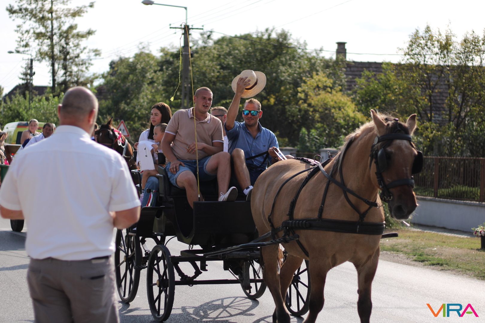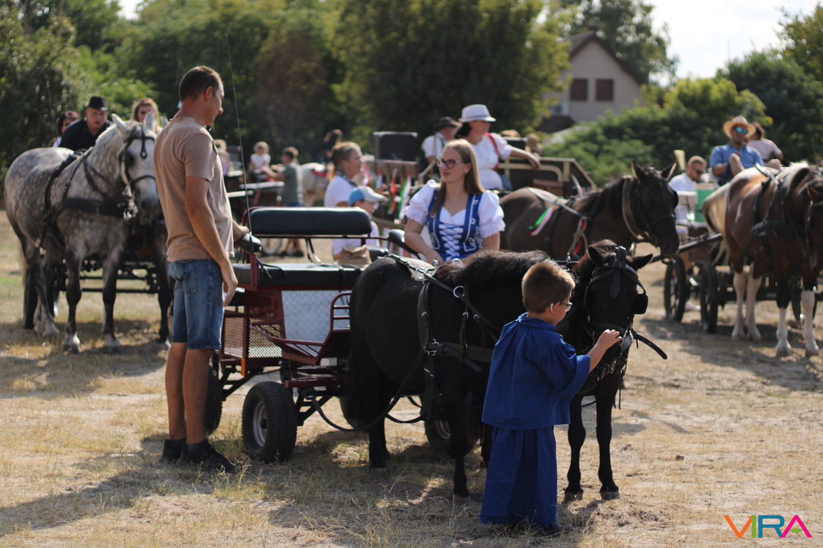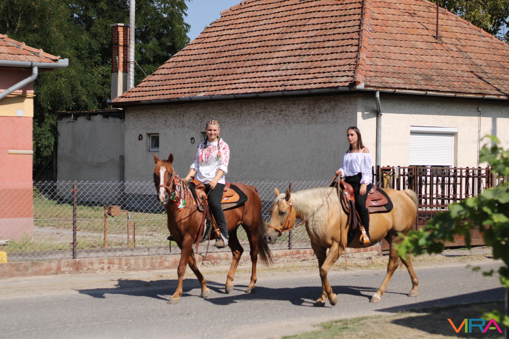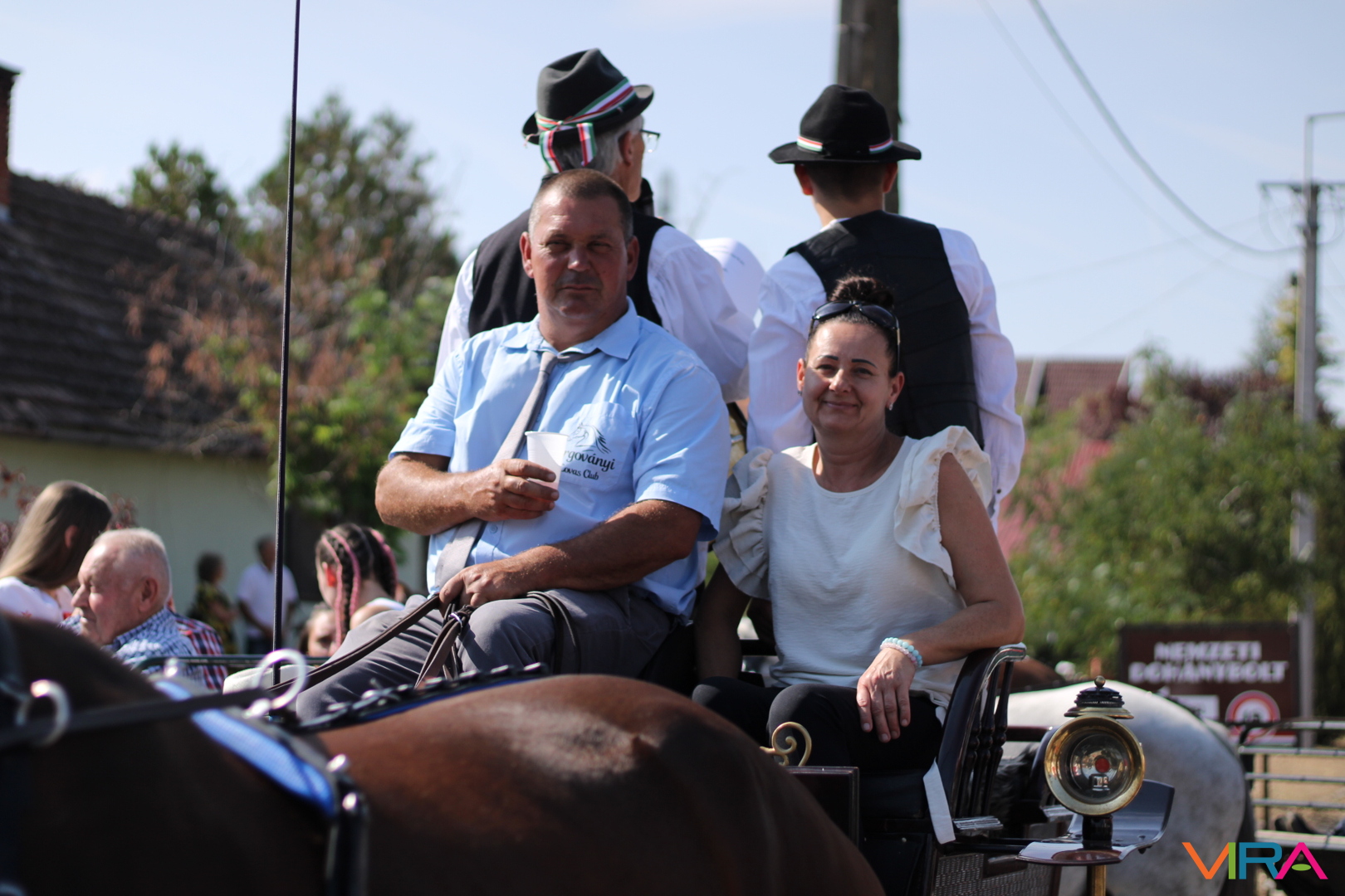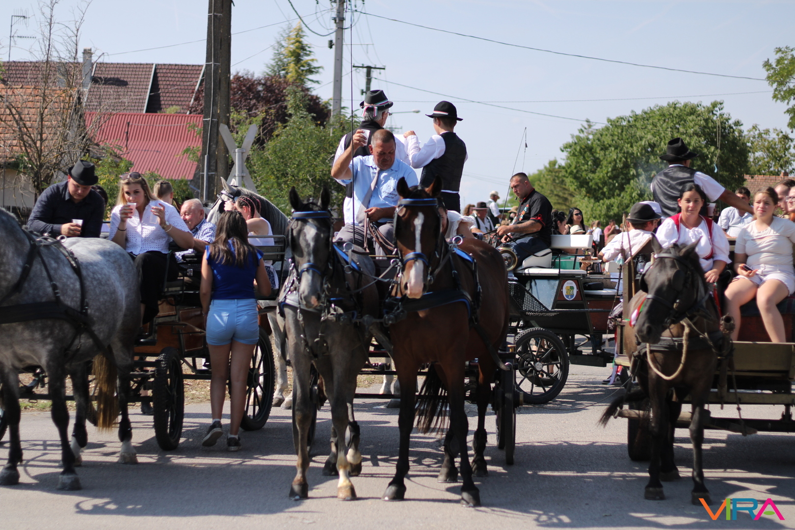 A település focipályáján gyülekeztek a lelkes lovasok, akik szebbnél szebb fogatokkal érkezve várták sorukat a minden évben megrendezésre kerülő szüreti felvonulásra. Szerencsére a menetet kellemes idő kísérte végig, így az útközben megszomjazó lovasokat és barátaikat frissítő pontok várták, ahol finomabbnál finomabb süteményekkel és üdítőkkel vendégelték meg a helyi asszonyok. A menetet a polgárőrség és a rendőrség biztosította, hogy mindenki biztonságban vonulhasson végig a község utcáin. A hangos zeneszó mellett a kisbíró hangja is felcsendült, furfangosan elmesélte az elmúlt év eseményeit, szórakoztatva a falu népét. A körmenet végén minden résztvevő egy-egy üveg bort és emléklapot kapott a szervezők hálájának jeléül.