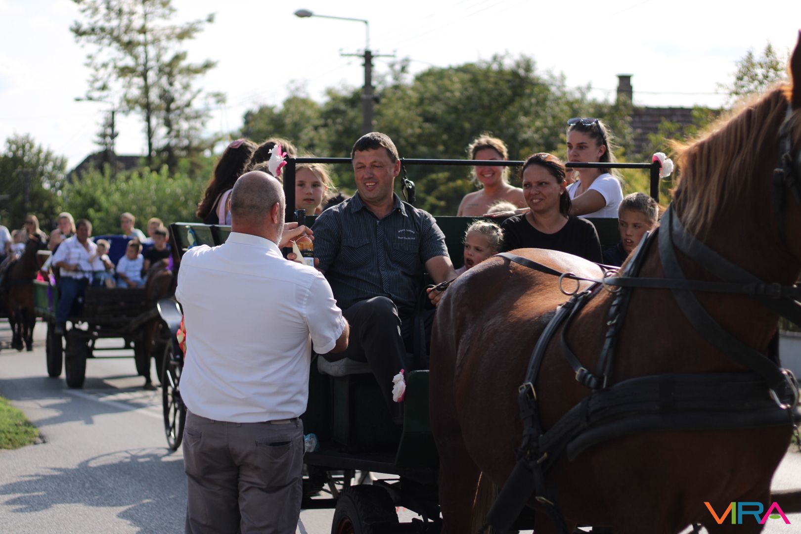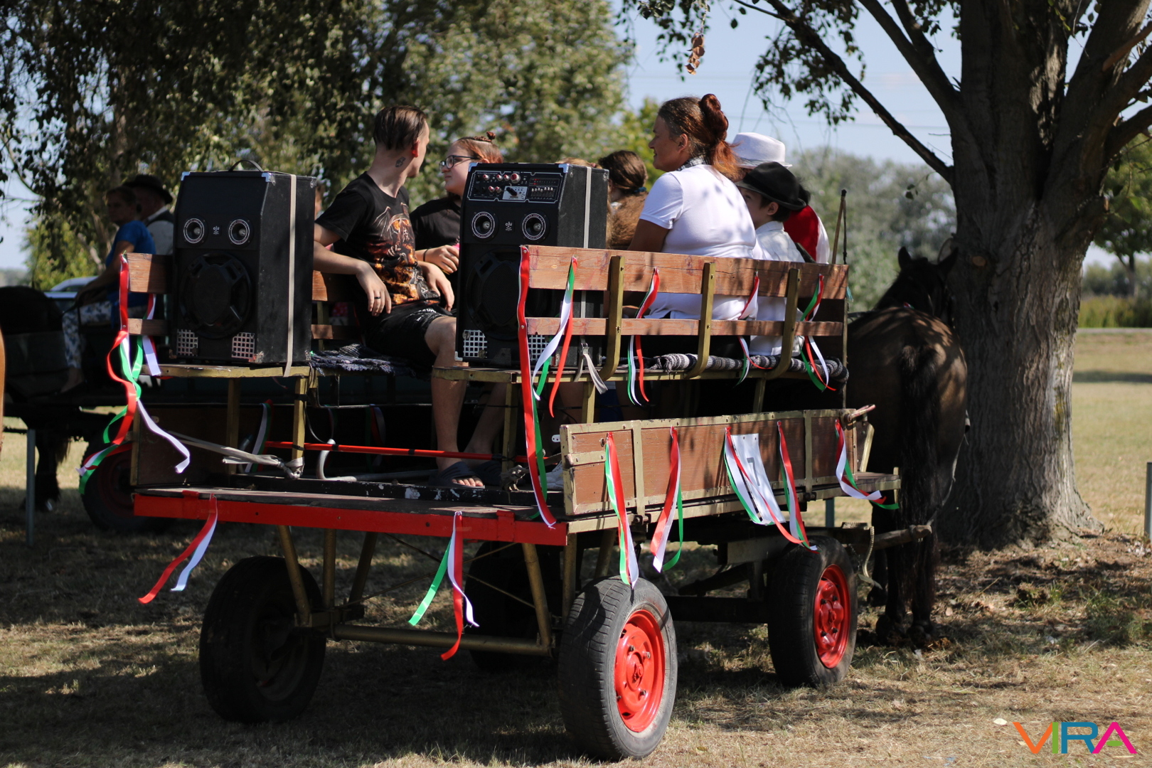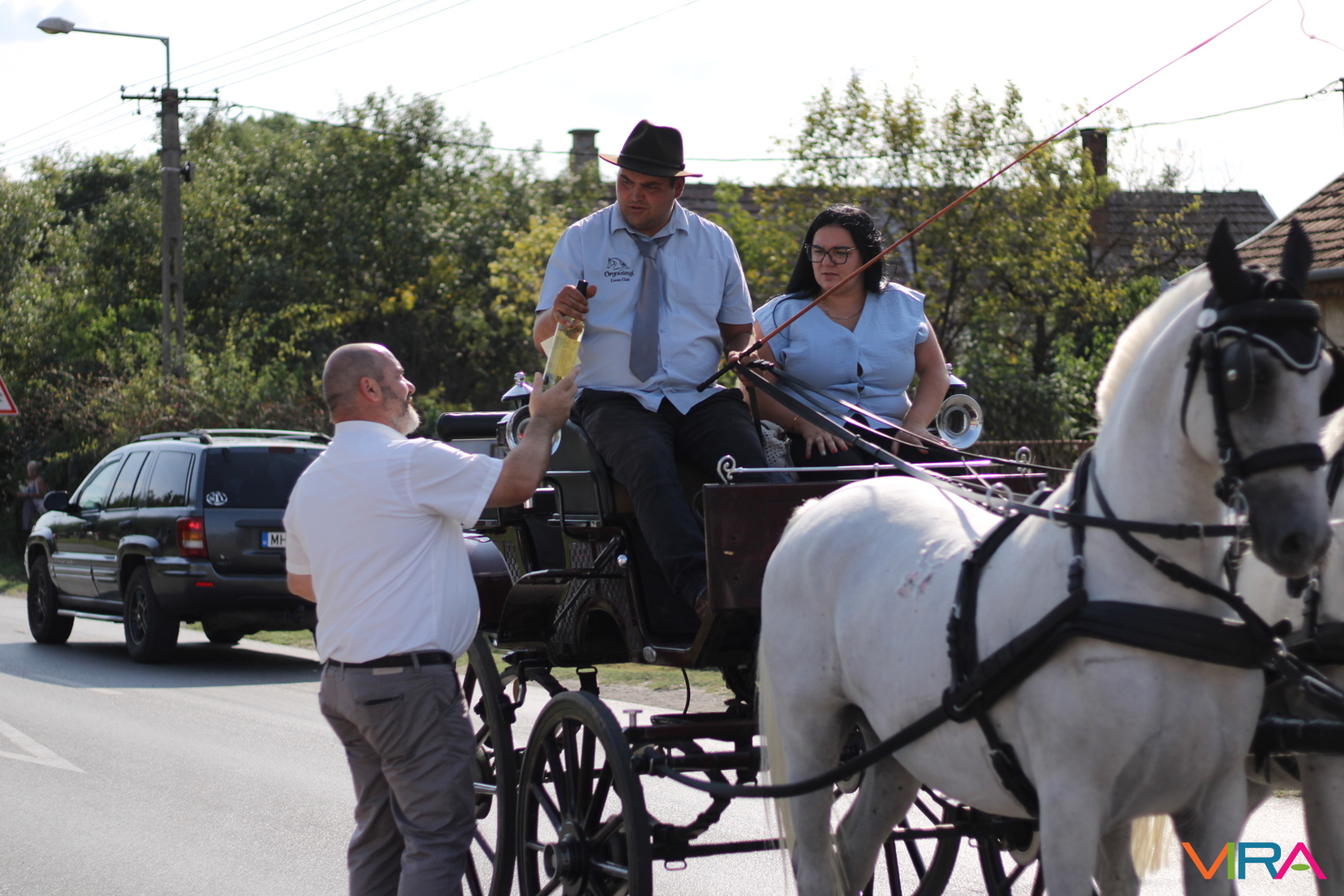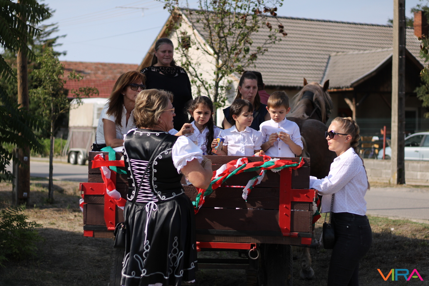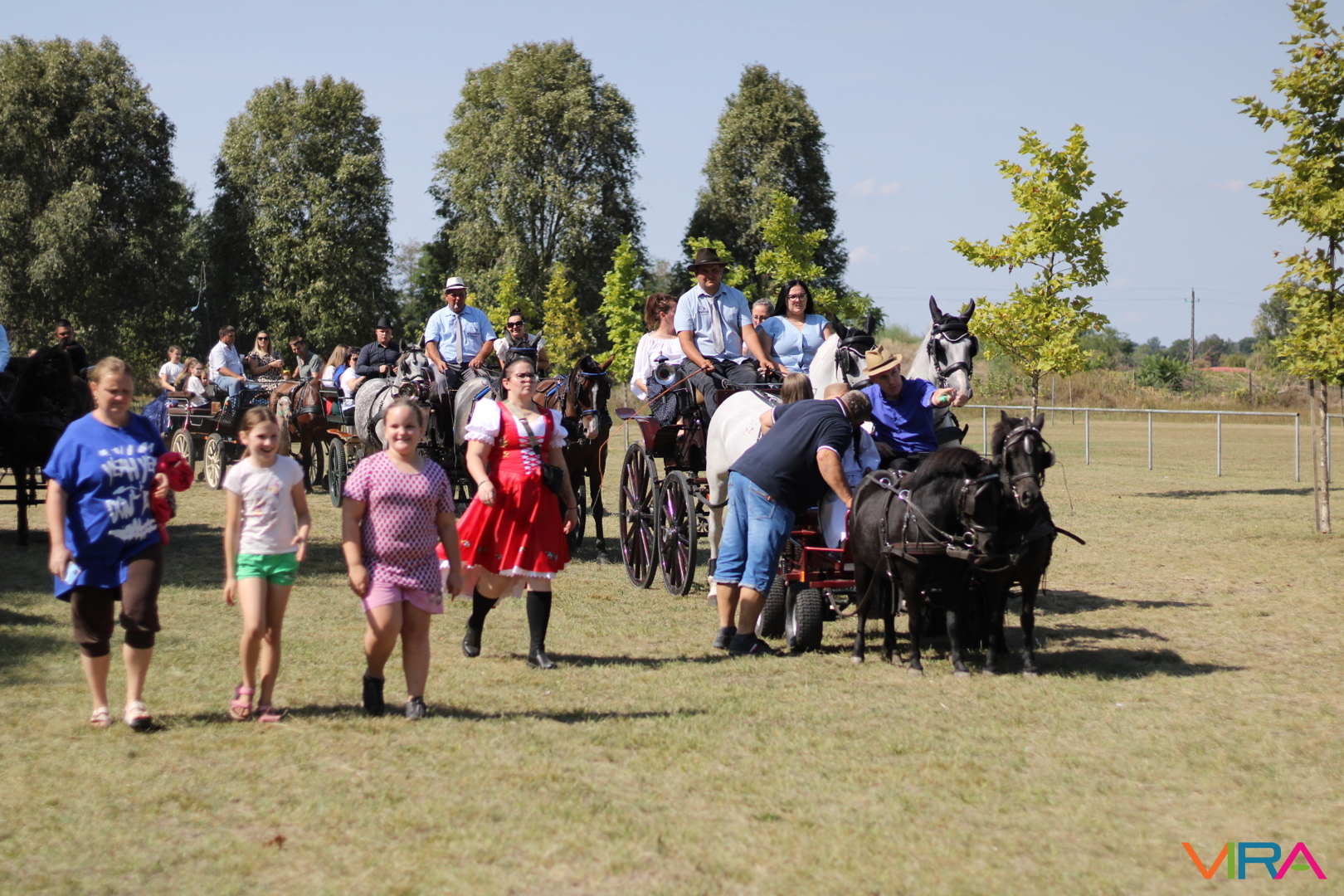 A település focipályáján gyülekeztek a lelkes lovasok, akik szebbnél szebb fogatokkal érkezve várták sorukat a minden évben megrendezésre kerülő szüreti felvonulásra. Szerencsére a menetet kellemes idő kísérte végig, így az útközben megszomjazó lovasokat és barátaikat frissítő pontok várták, ahol finomabbnál finomabb süteményekkel és üdítőkkel vendégelték meg a helyi asszonyok. A menetet a polgárőrség és a rendőrség biztosította, hogy mindenki biztonságban vonulhasson végig a község utcáin. A hangos zeneszó mellett a kisbíró hangja is felcsendült, furfangosan elmesélte az elmúlt év eseményeit, szórakoztatva a falu népét. A körmenet végén minden résztvevő egy-egy üveg bort és emléklapot kapott a szervezők hálájának jeléül.