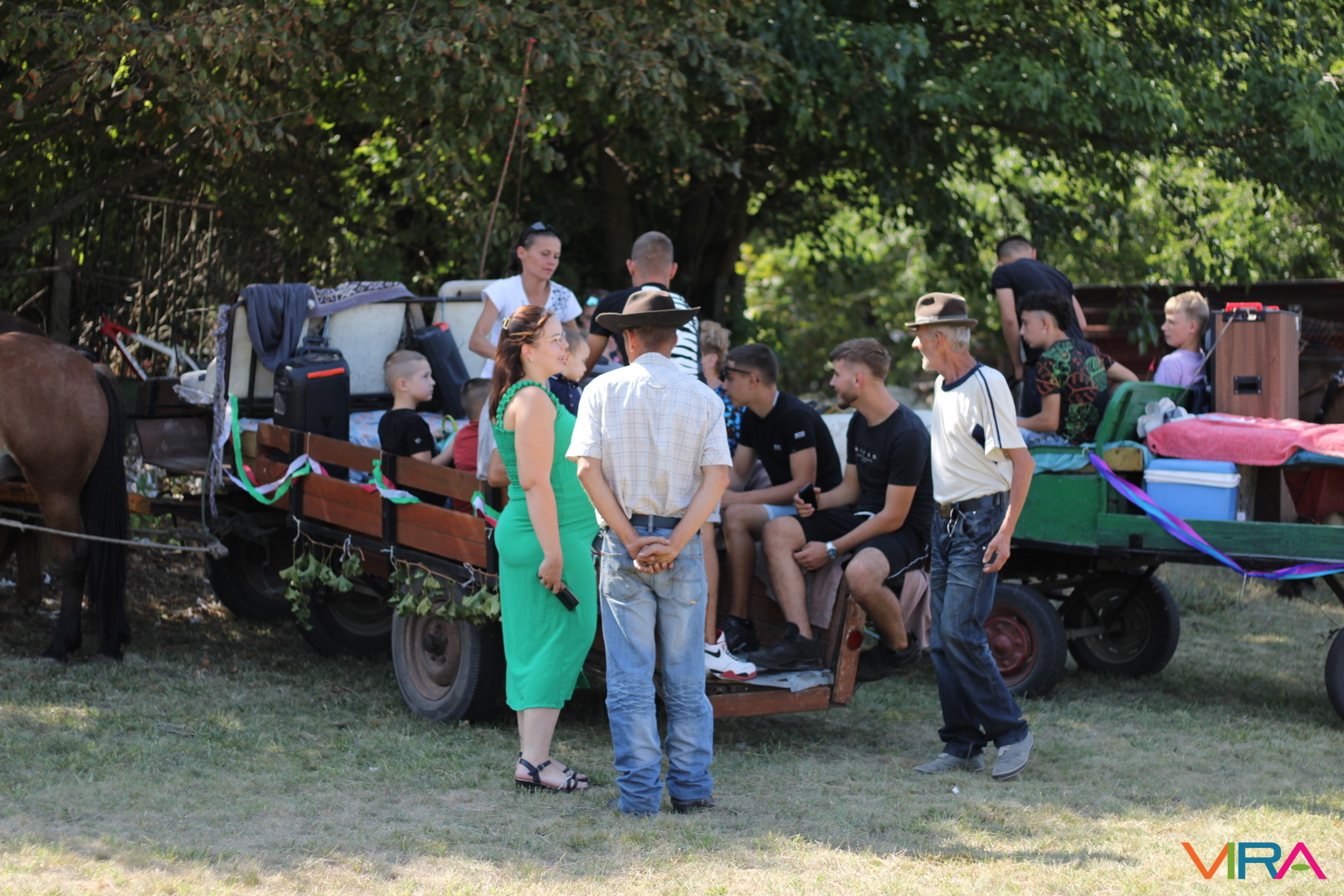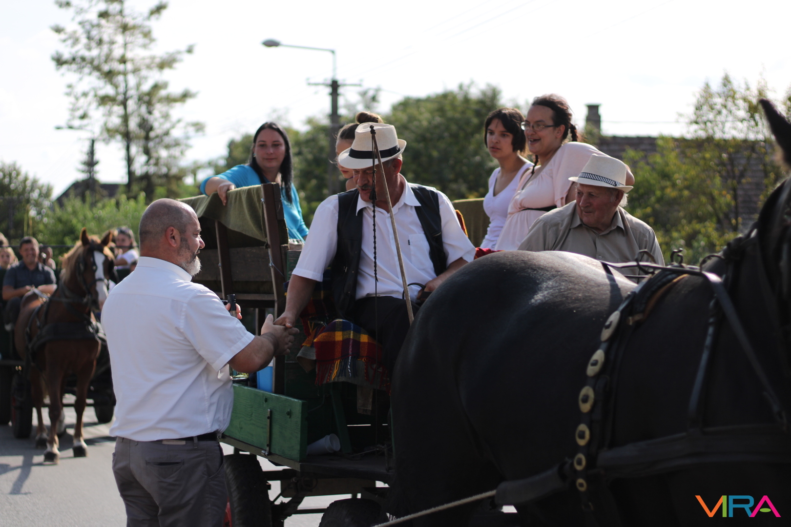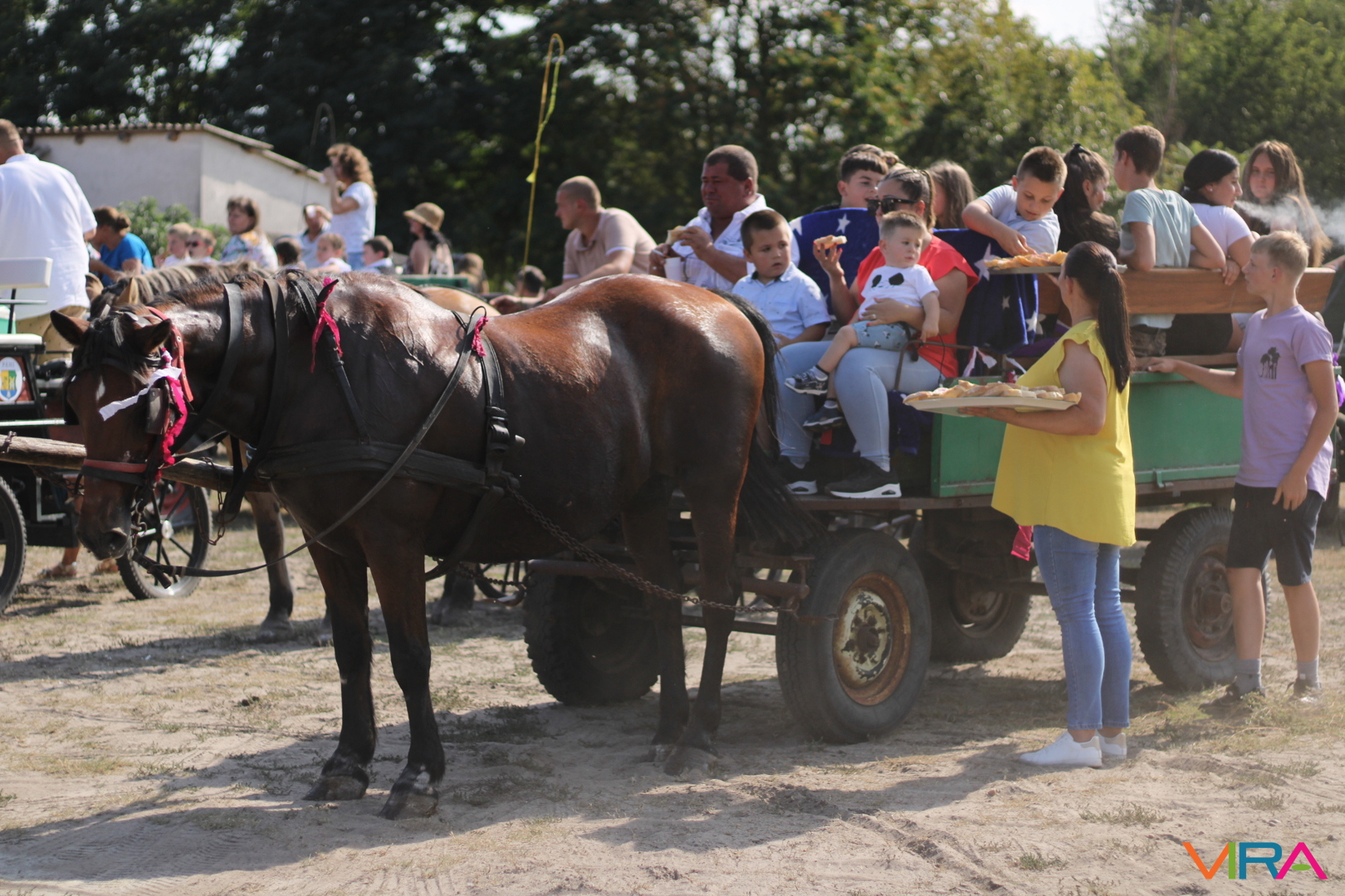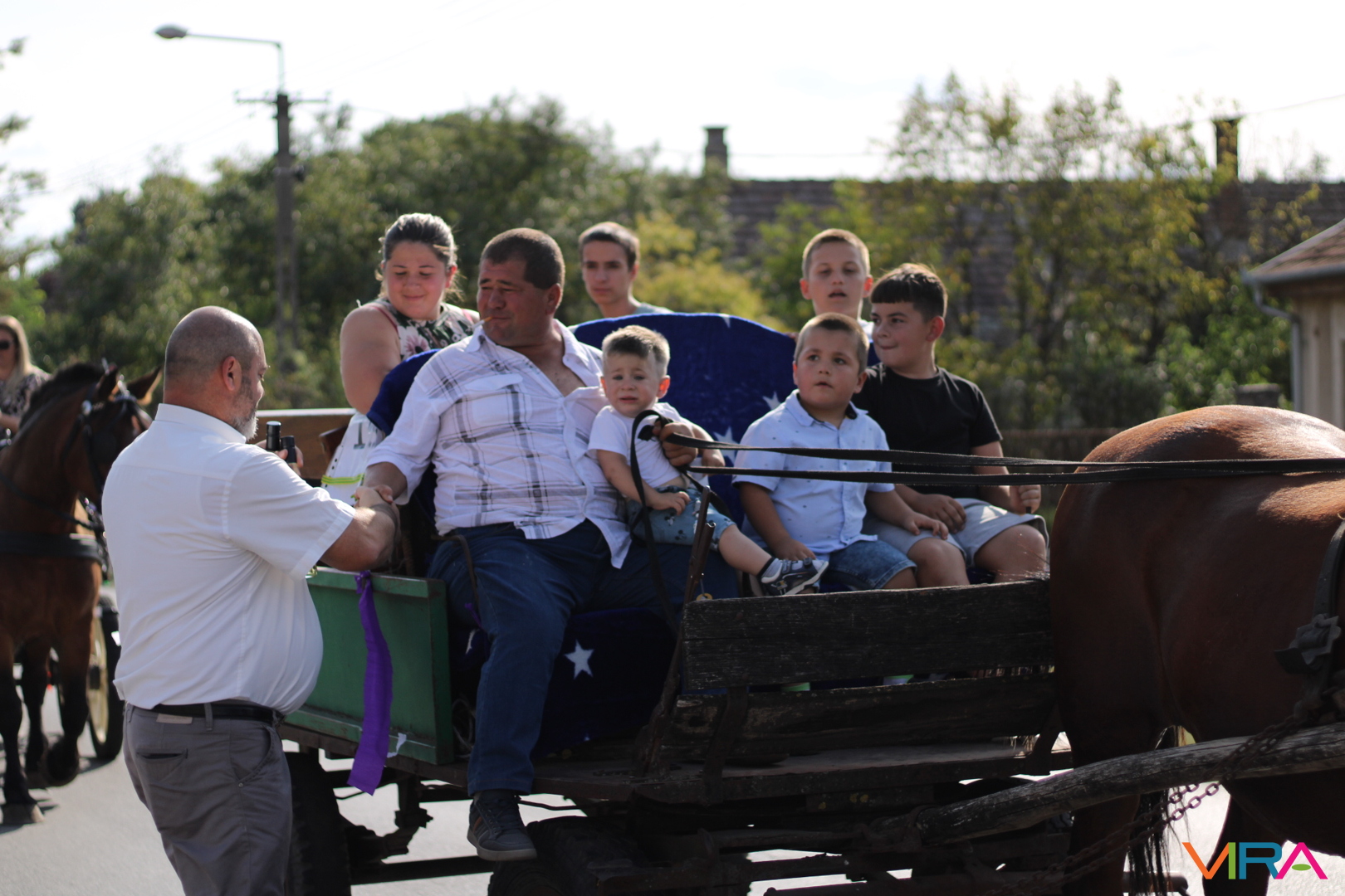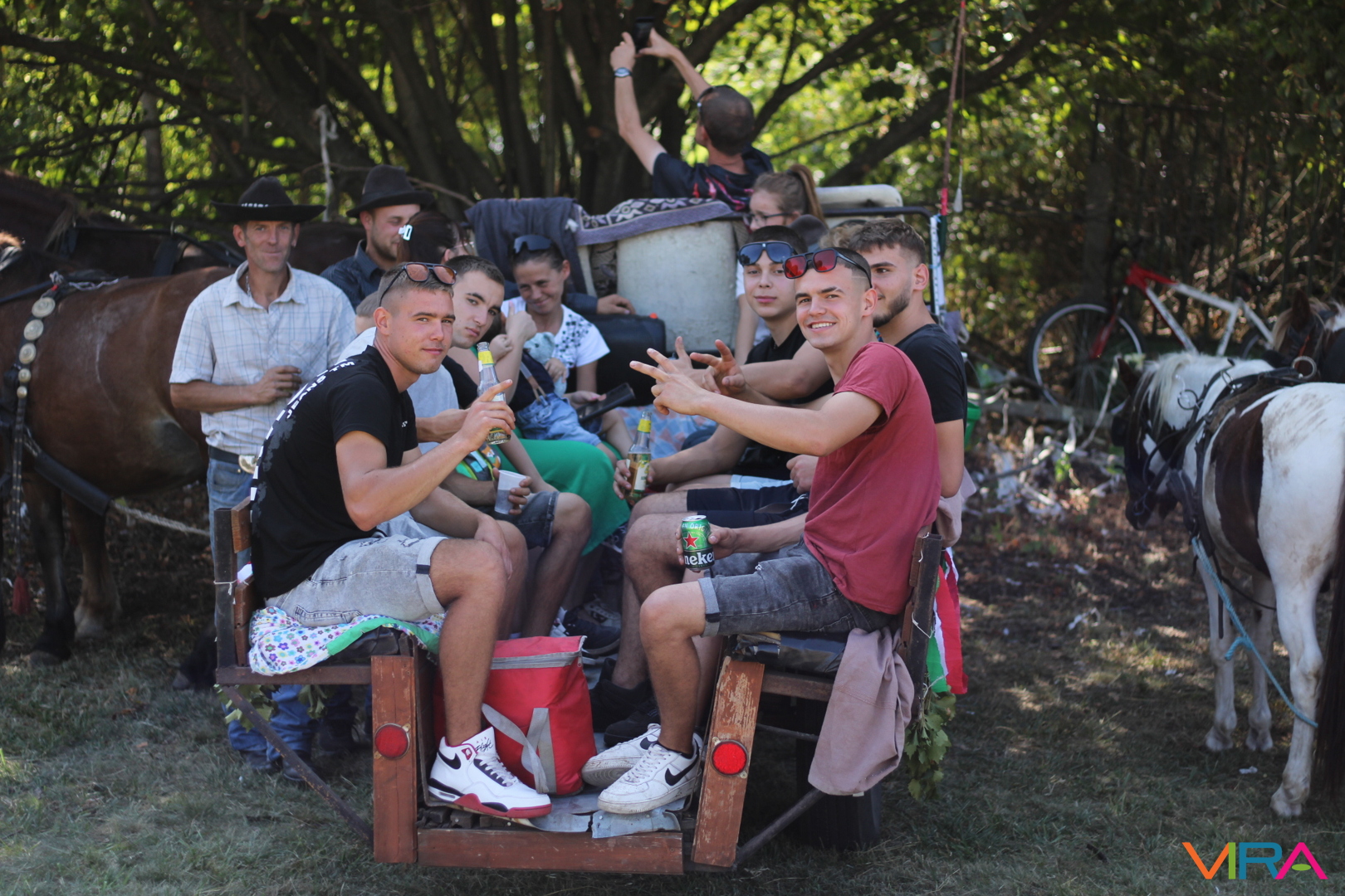 A település focipályáján gyülekeztek a lelkes lovasok, akik szebbnél szebb fogatokkal érkezve várták sorukat a minden évben megrendezésre kerülő szüreti felvonulásra. Szerencsére a menetet kellemes idő kísérte végig, így az útközben megszomjazó lovasokat és barátaikat frissítő pontok várták, ahol finomabbnál finomabb süteményekkel és üdítőkkel vendégelték meg a helyi asszonyok. A menetet a polgárőrség és a rendőrség biztosította, hogy mindenki biztonságban vonulhasson végig a község utcáin. A hangos zeneszó mellett a kisbíró hangja is felcsendült, furfangosan elmesélte az elmúlt év eseményeit, szórakoztatva a falu népét. A körmenet végén minden résztvevő egy-egy üveg bort és emléklapot kapott a szervezők hálájának jeléül.