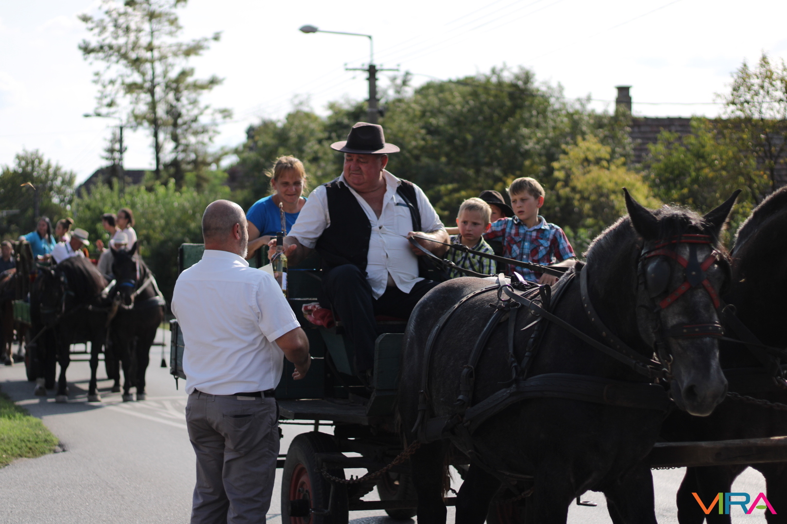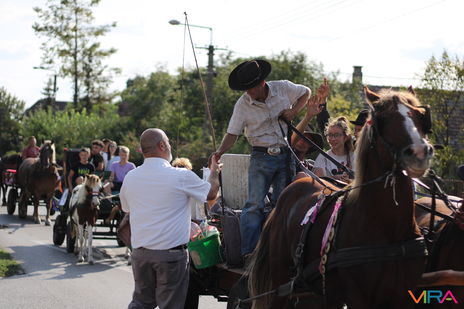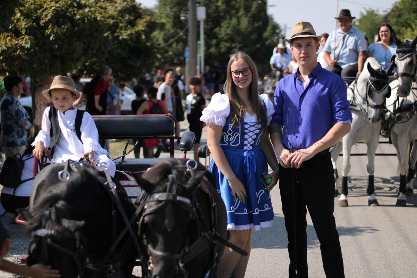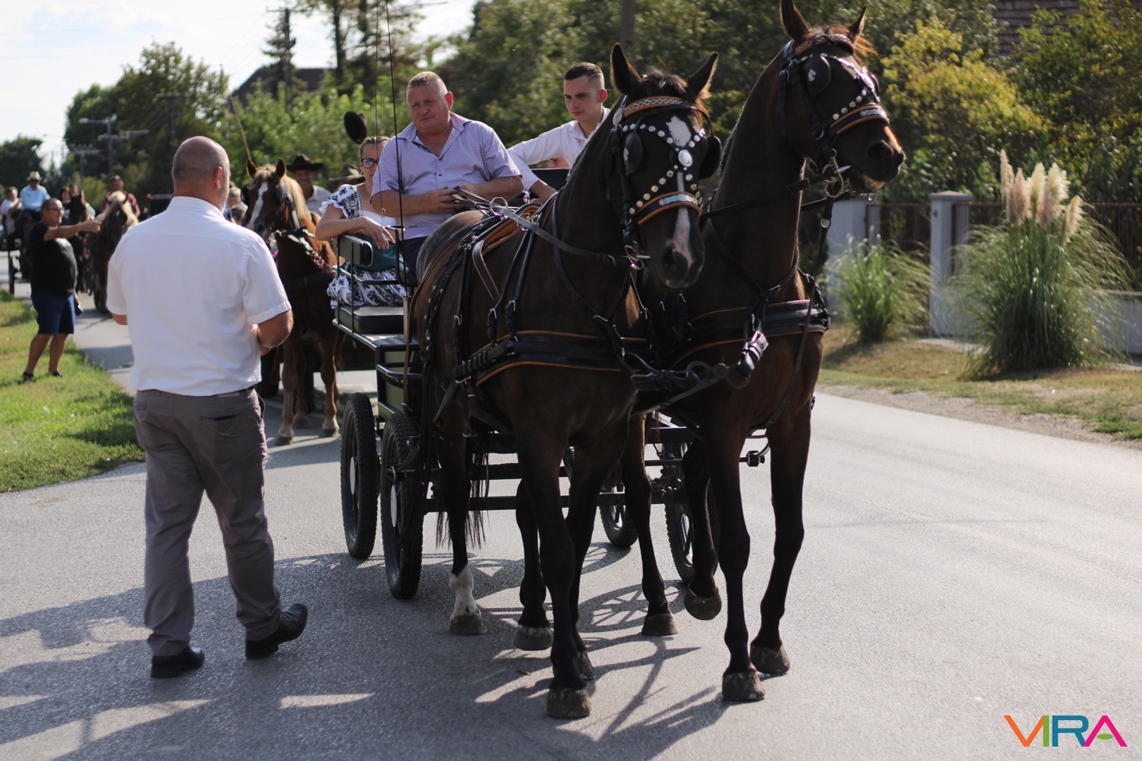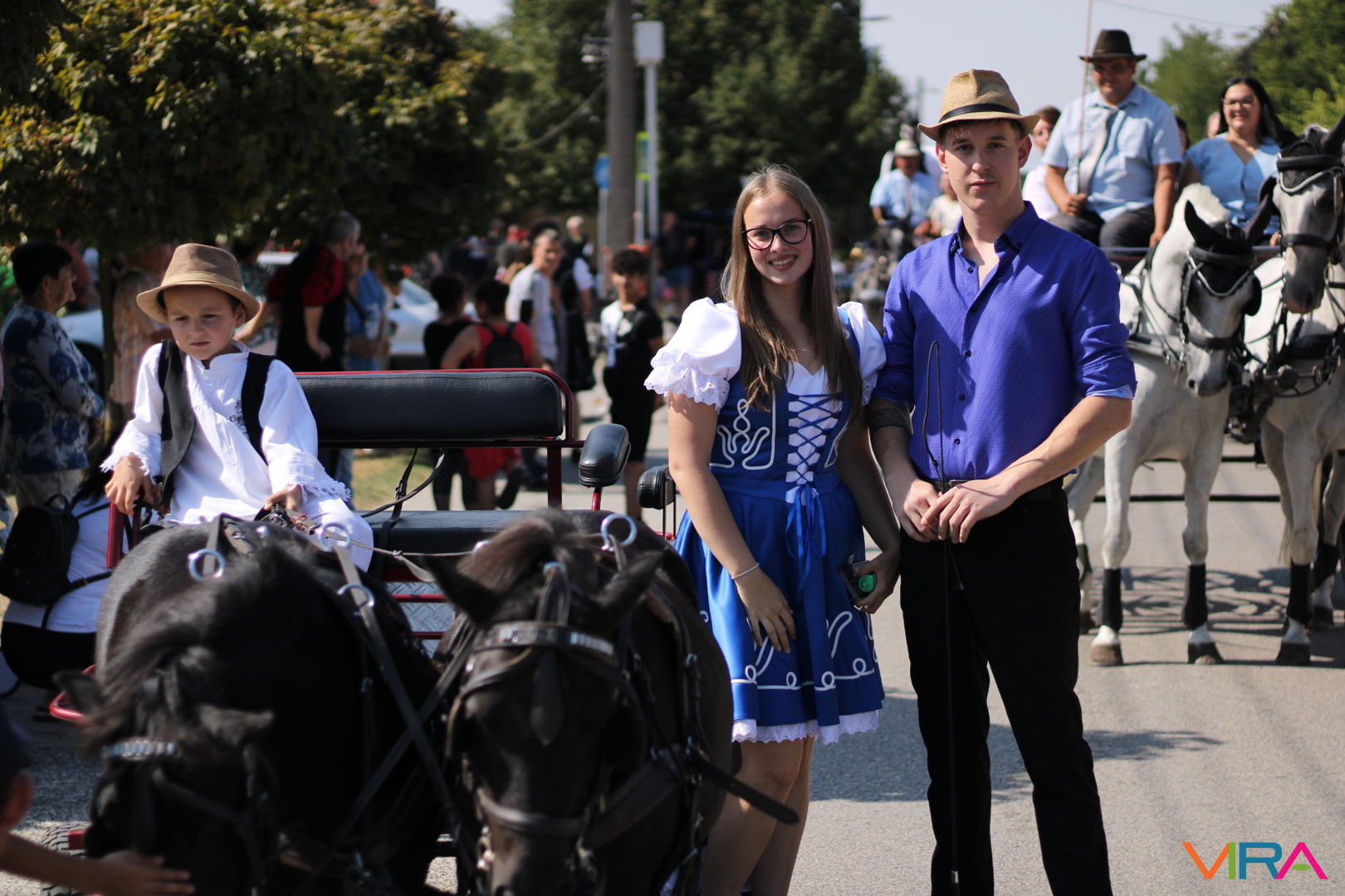 A település focipályáján gyülekeztek a lelkes lovasok, akik szebbnél szebb fogatokkal érkezve várták sorukat a minden évben megrendezésre kerülő szüreti felvonulásra. Szerencsére a menetet kellemes idő kísérte végig, így az útközben megszomjazó lovasokat és barátaikat frissítő pontok várták, ahol finomabbnál finomabb süteményekkel és üdítőkkel vendégelték meg a helyi asszonyok. A menetet a polgárőrség és a rendőrség biztosította, hogy mindenki biztonságban vonulhasson végig a község utcáin. A hangos zeneszó mellett a kisbíró hangja is felcsendült, furfangosan elmesélte az elmúlt év eseményeit, szórakoztatva a falu népét. A körmenet végén minden résztvevő egy-egy üveg bort és emléklapot kapott a szervezők hálájának jeléül.